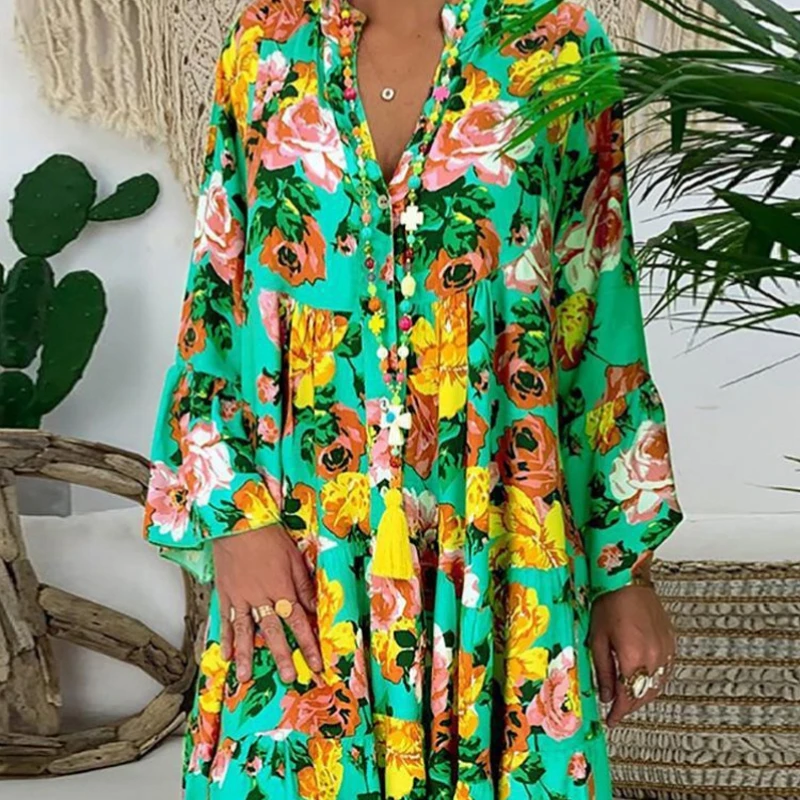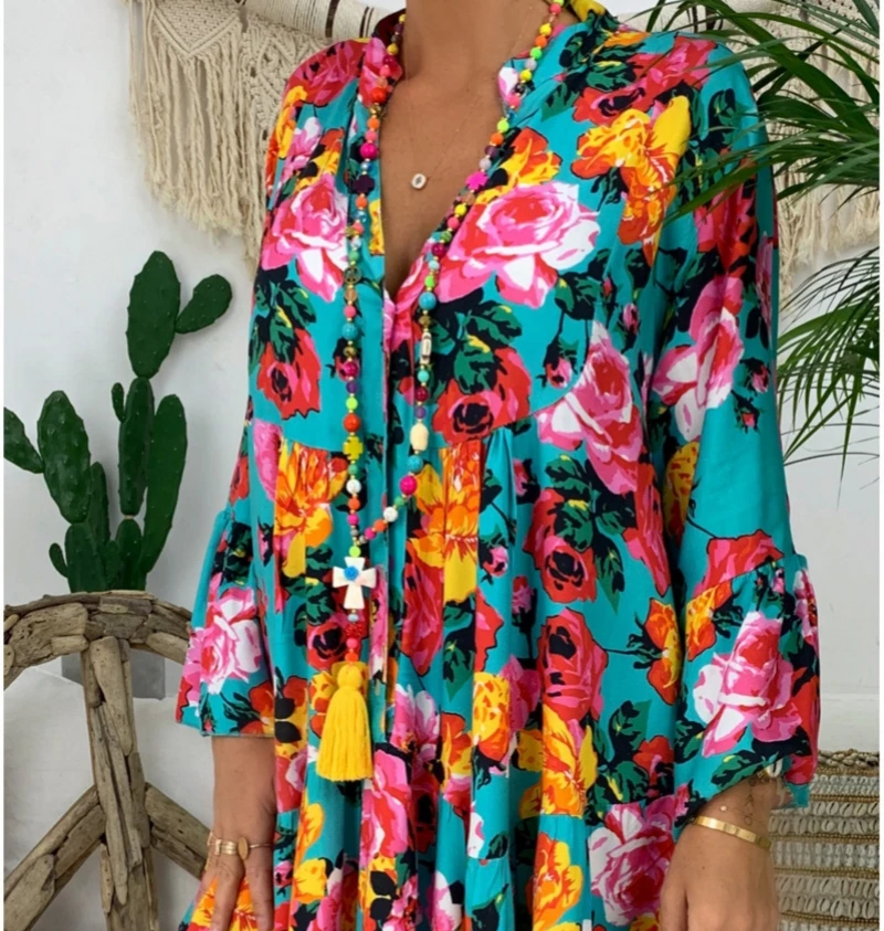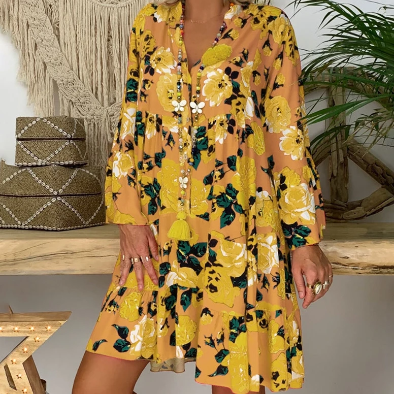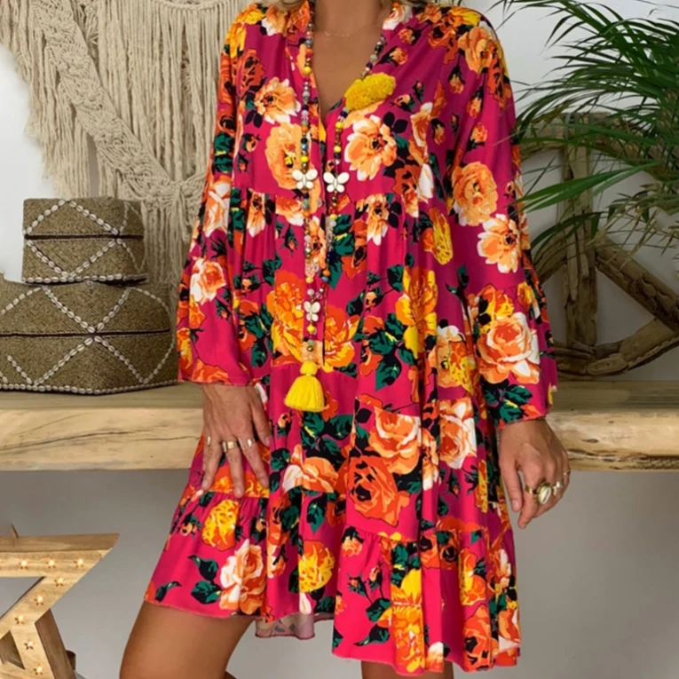 2023 Europe And America Southeast Asia New Casual Fashion Print Long Sleeve Large Size Women's Dress
