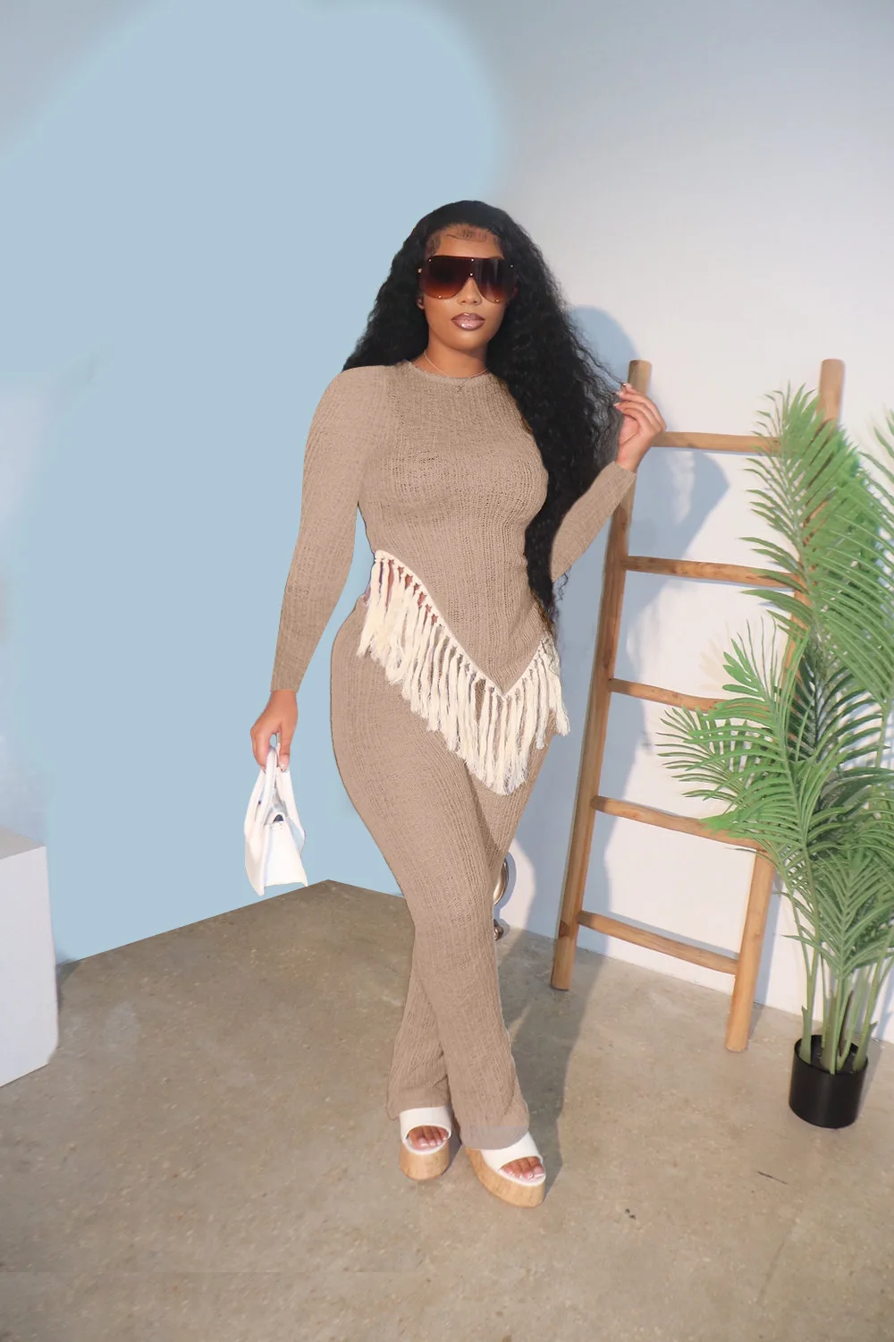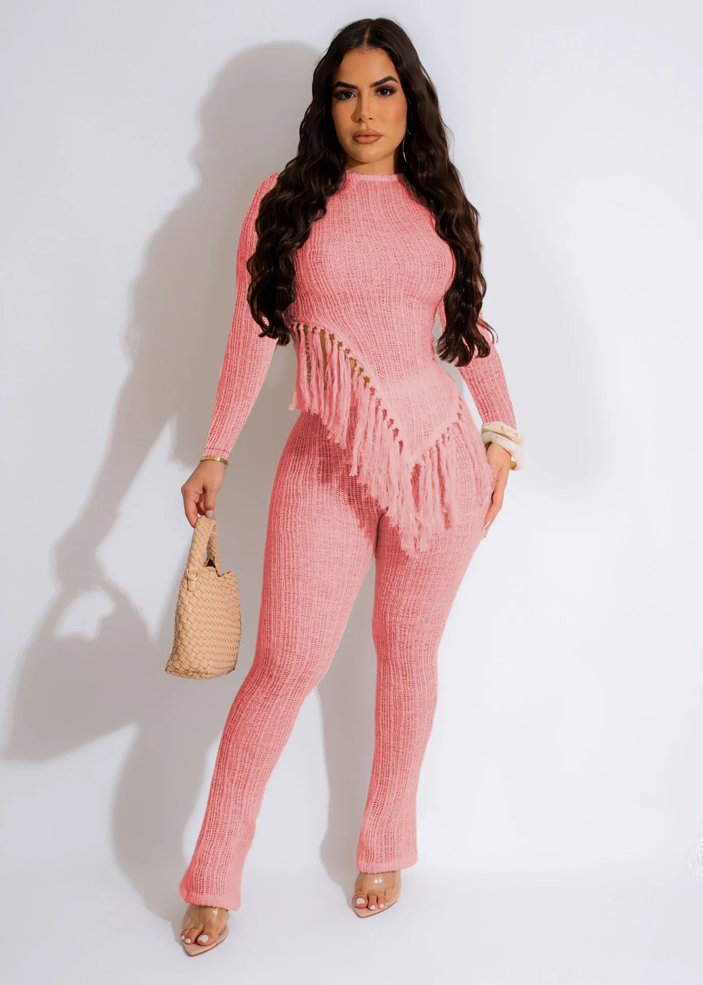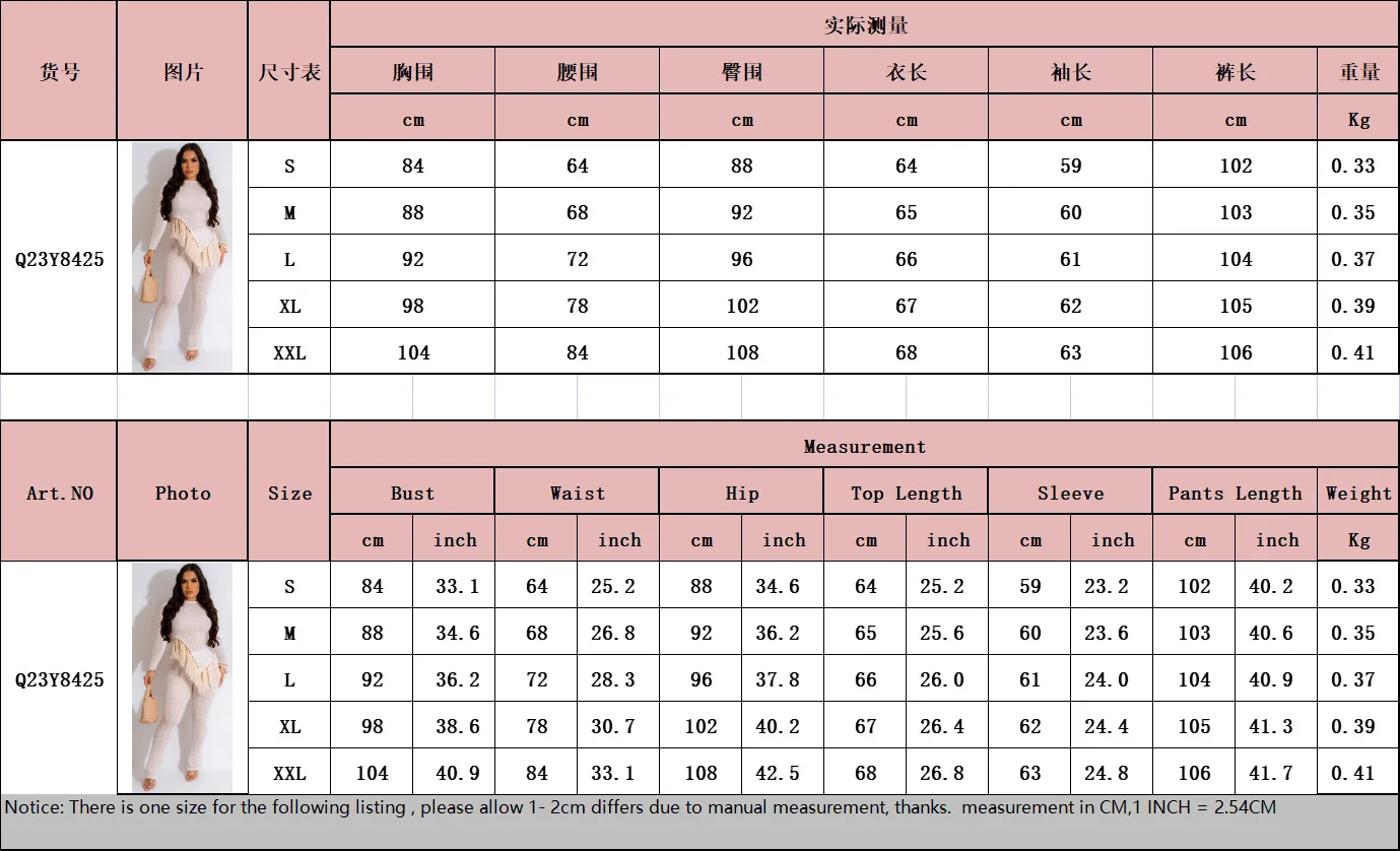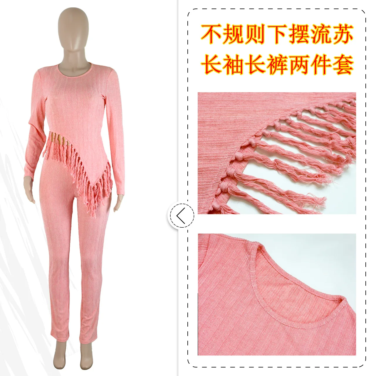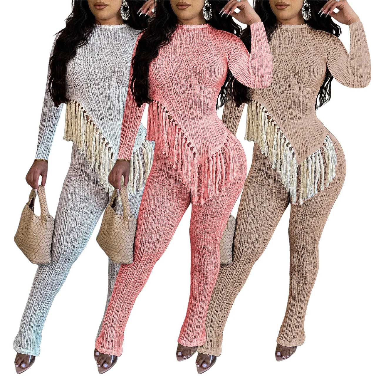 2023 Fall Clothes 2 Piece Outfit Irregular fringed long sleevesTwo Piece Pant Set For Women