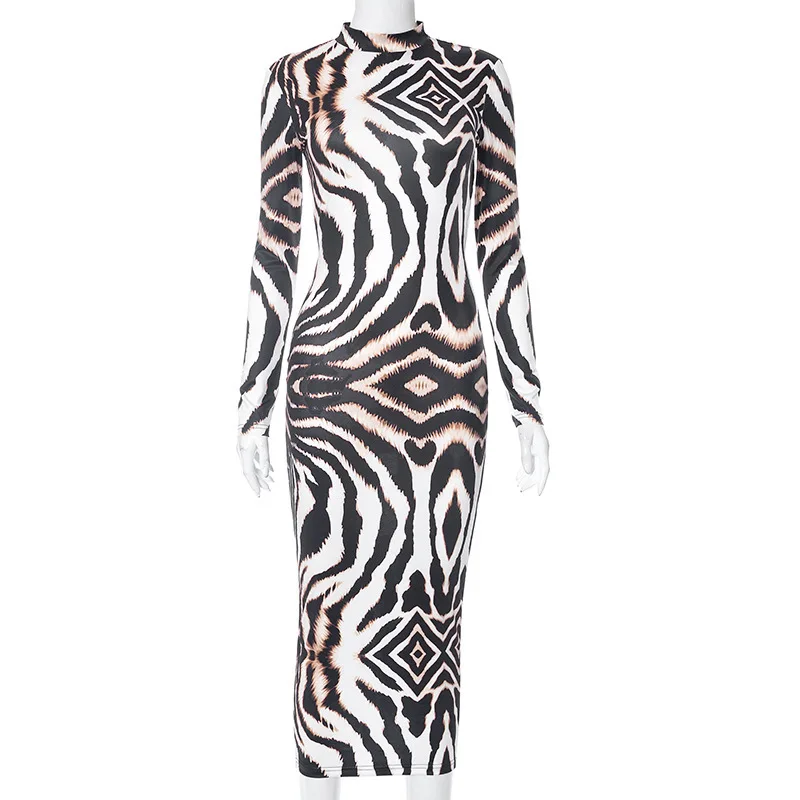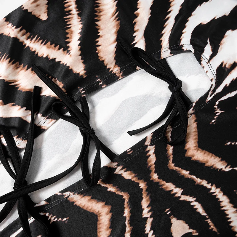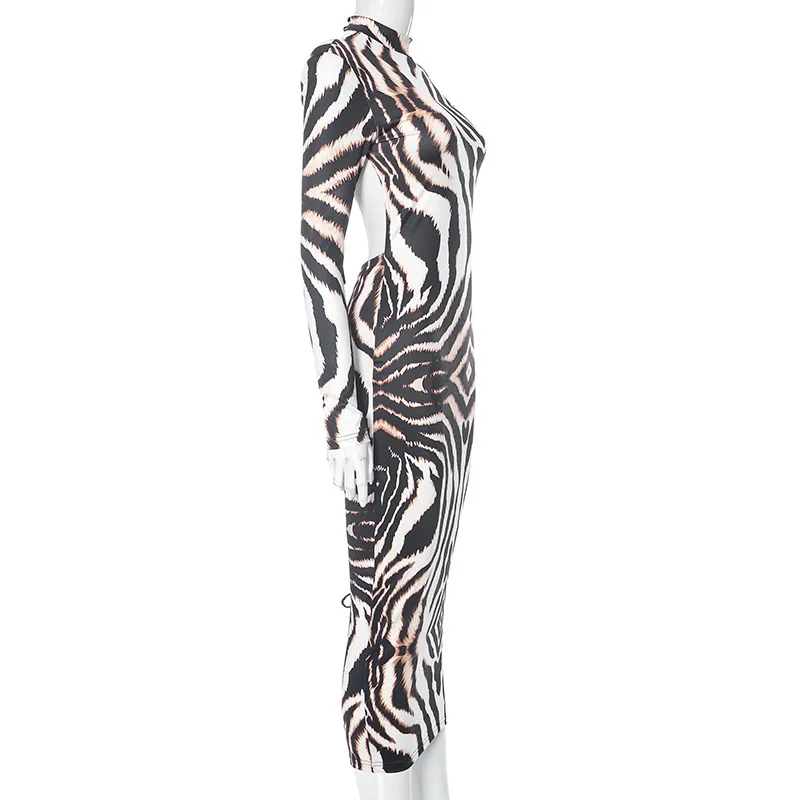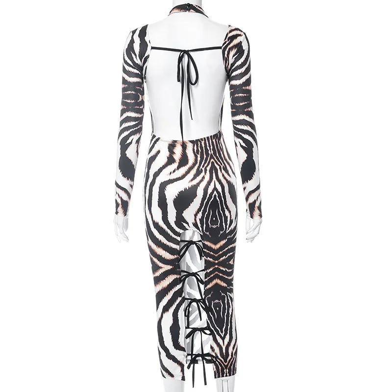 2023 Fall Long Sleeve Trendy Backless Bodycon Tie Strap Slim Pattern Casual Dress