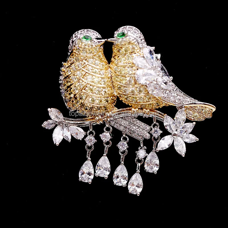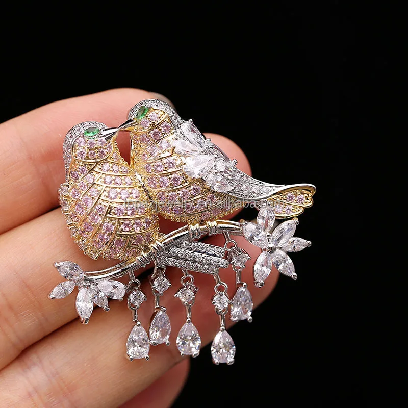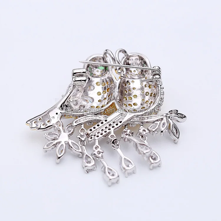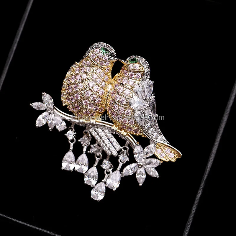 Luxury womens fashion bird flower designed CZ zircon decorative safe jewelry brooch