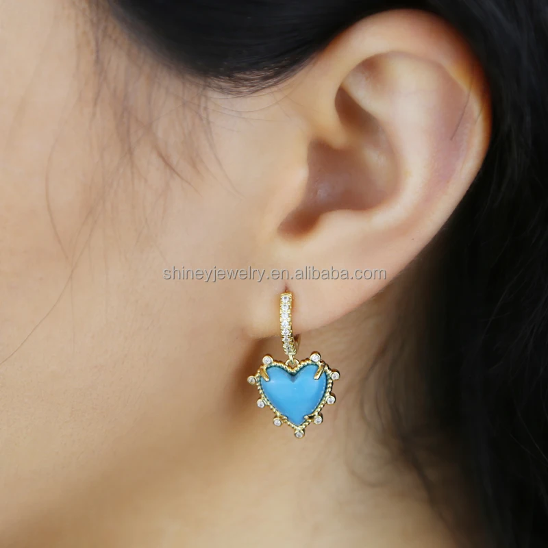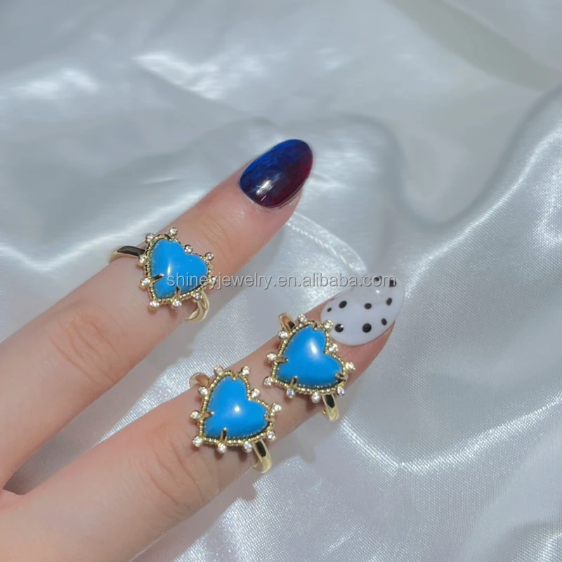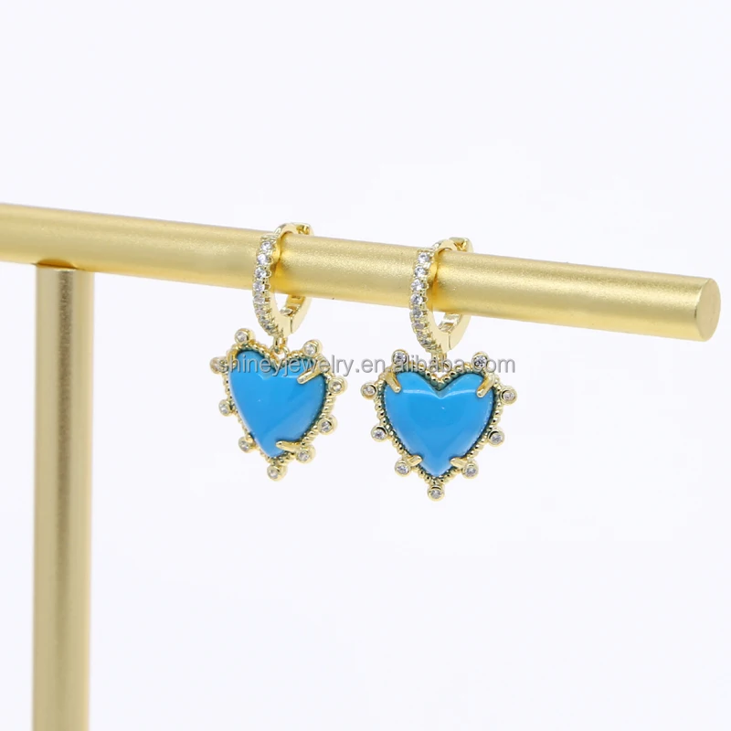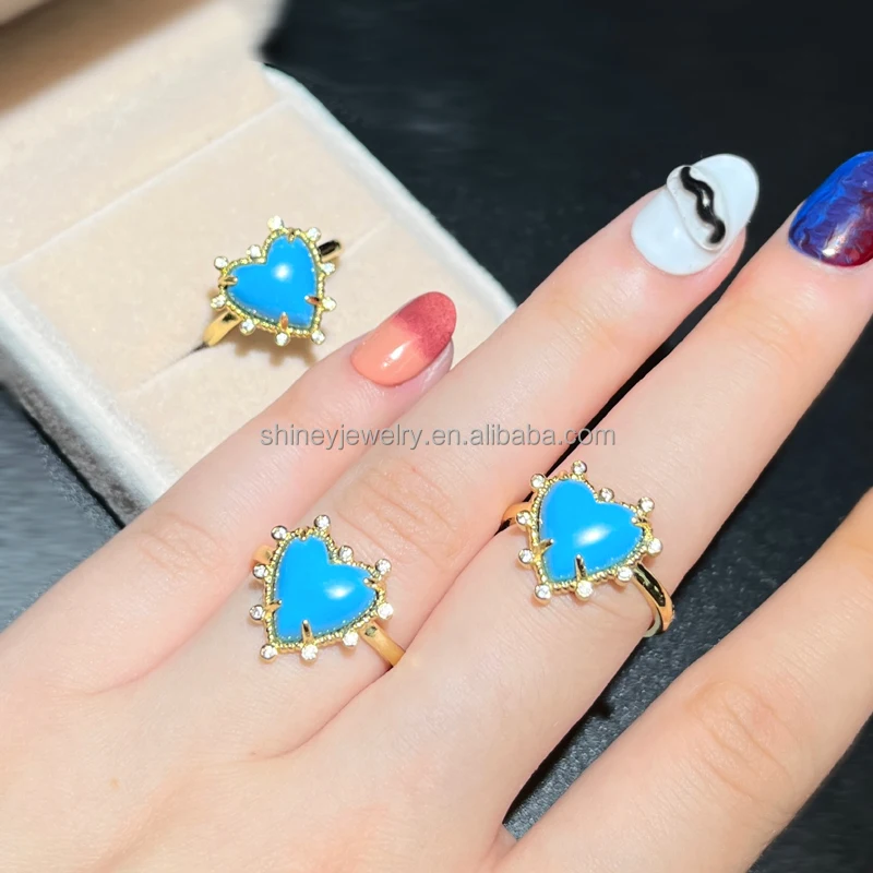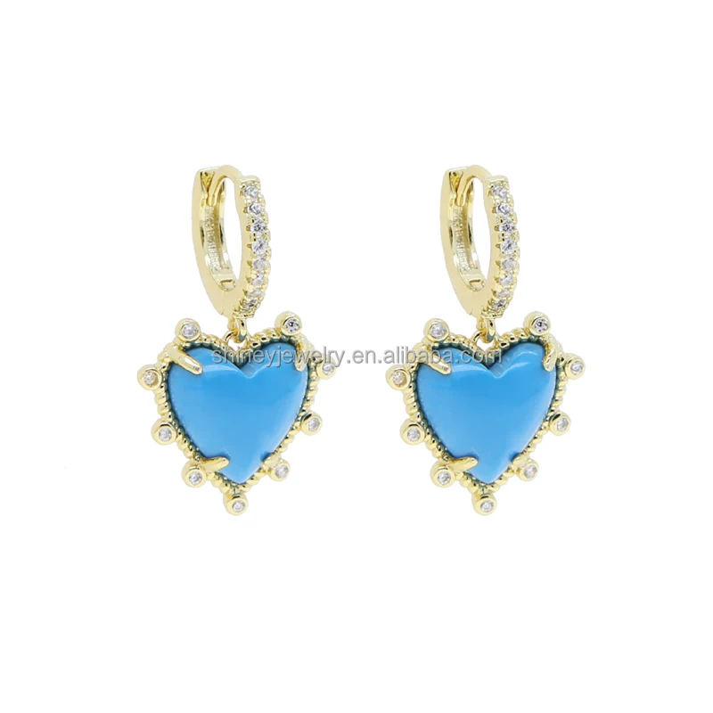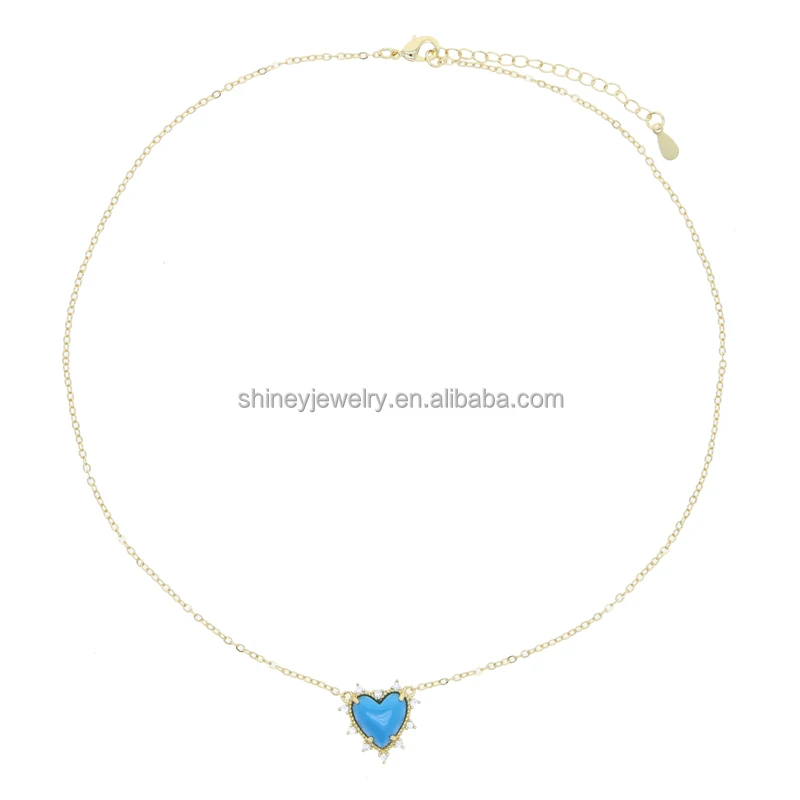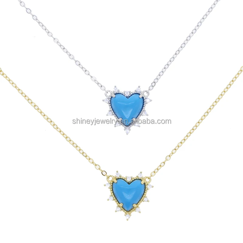 2023 Fashion Fine Women Girl Gift Jewelry Set Micro Pave 5A CZ Prong Setting Heart Shape Turquoise Necklace