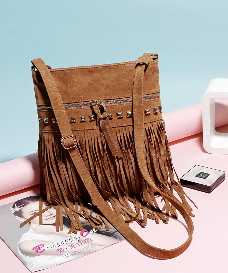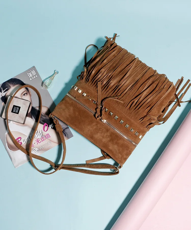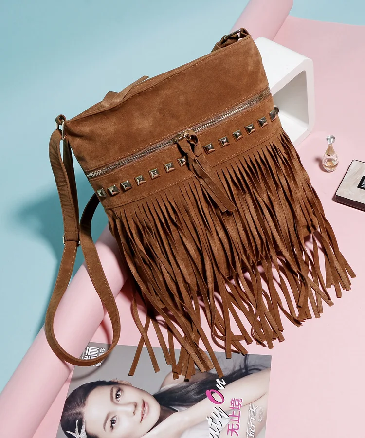2023 Fashion Fringe Purse Casual Personality Tassel Crossbody Bag Girly Handbags Suede Fringe Shoulder Bag