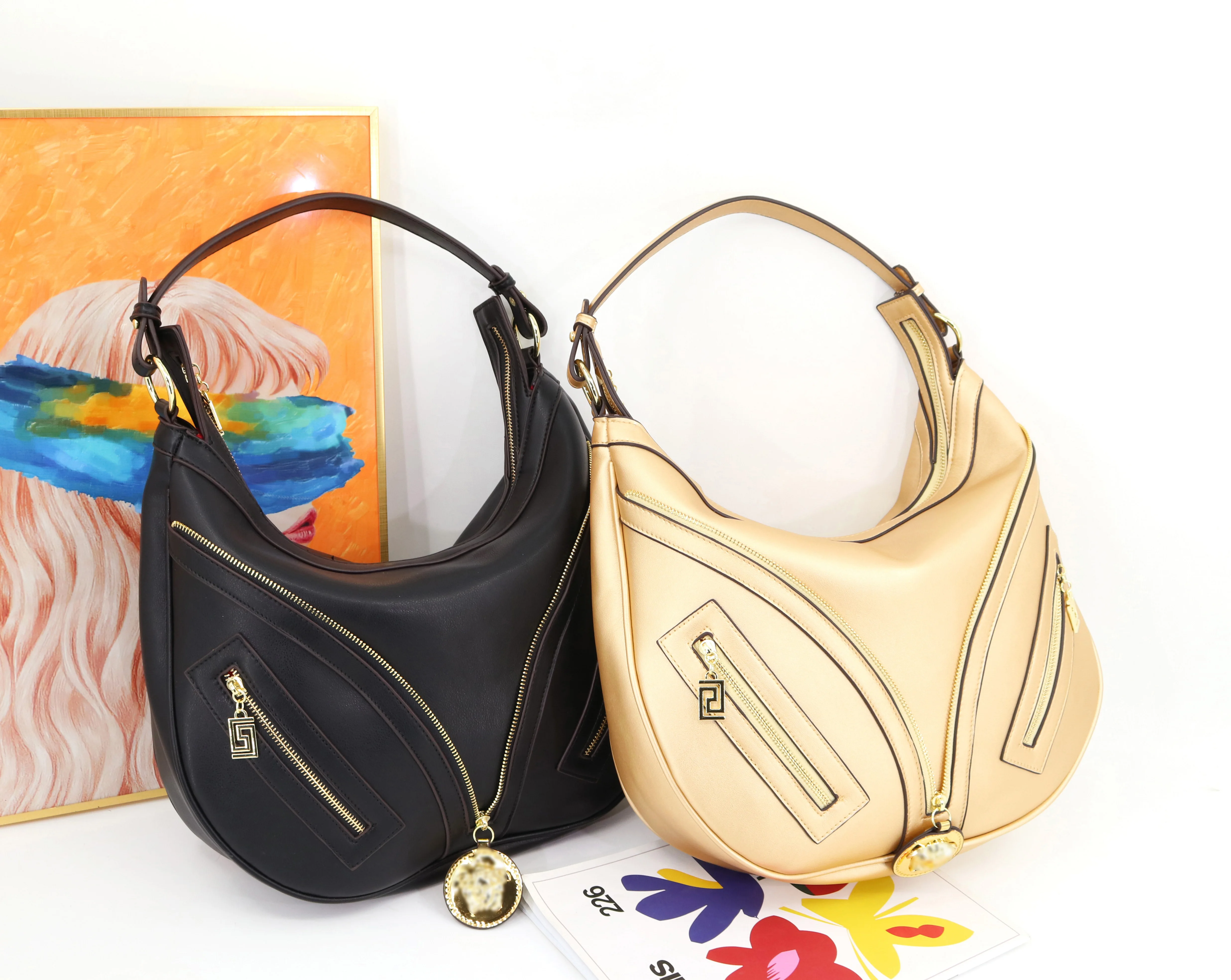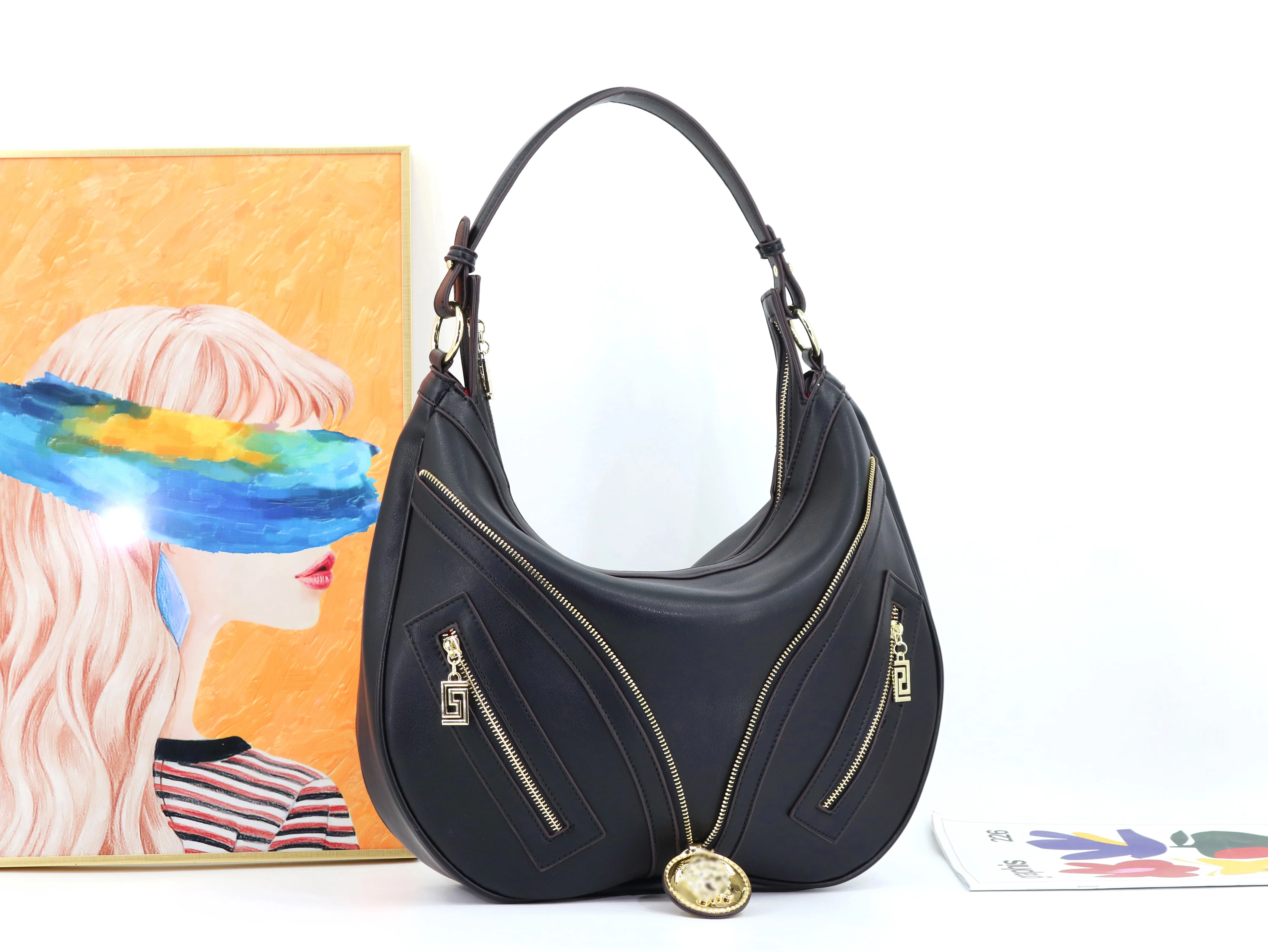 2023 fashion hobos shoulder bags for women soft Pu leather ladies bags big size designer underarm half moon bags supplier 37 cm