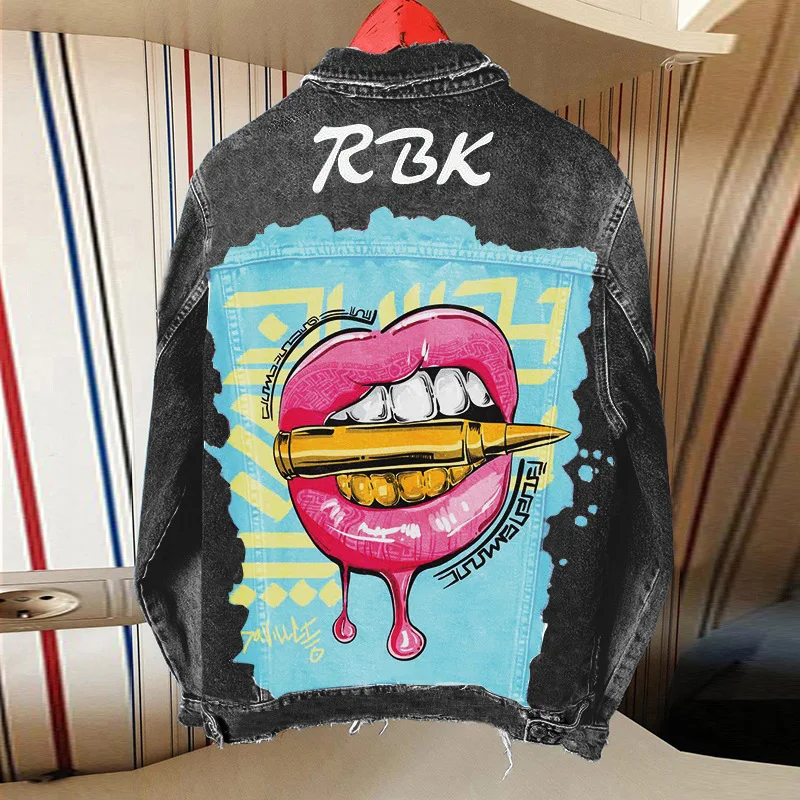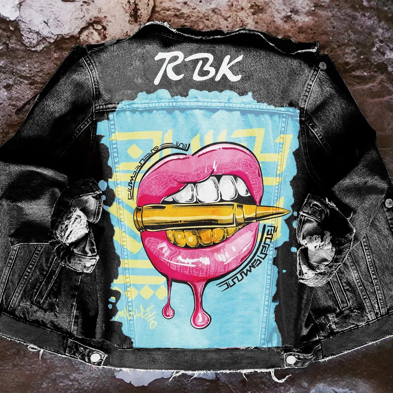 2023 Fashion Lip Printed Women's Baseball Jacket Autumn and Winter