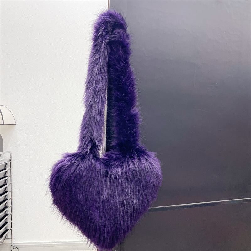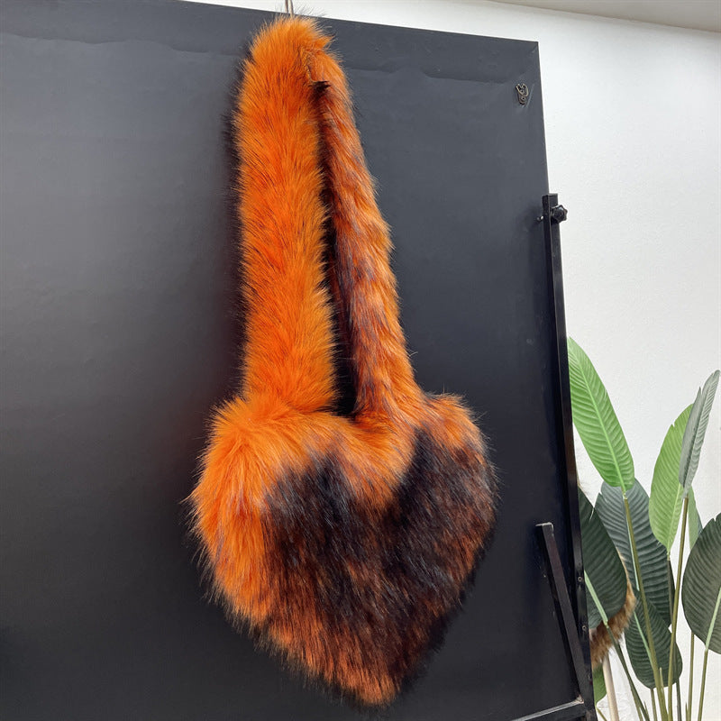 2023 Fashion Plush Heart Shaped Purse Luxury Furry Tote Bags Winter Faux Fur Bags Women Handbags Ladies