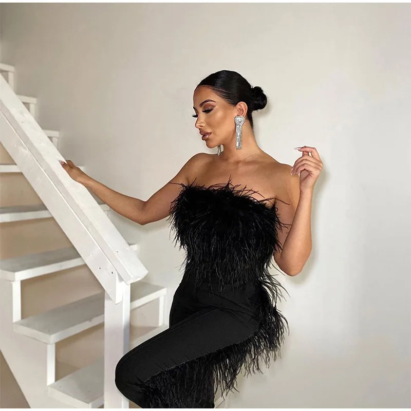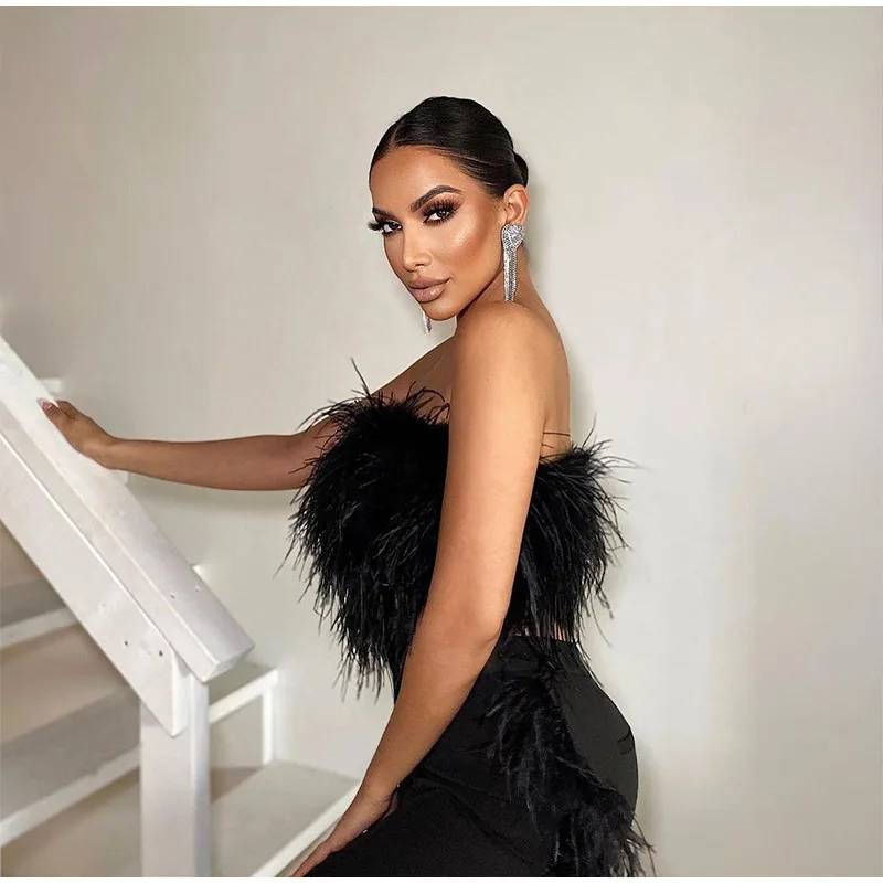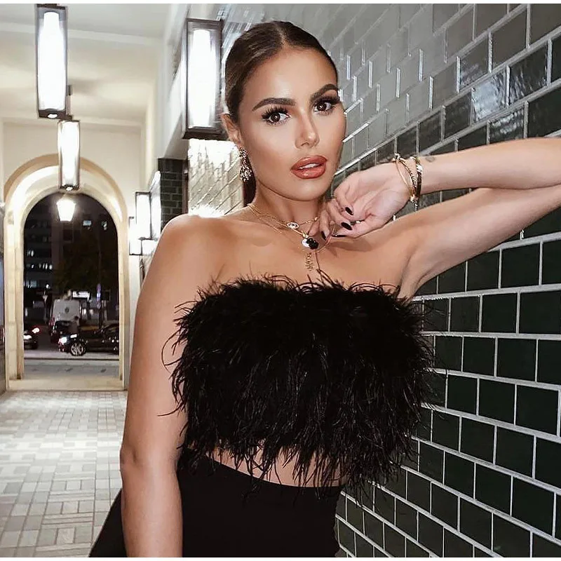 2023 Fashion Summer Sexy Women Crop Top Backless Strapless Vest Slim Fit Zipper Fur Tube Top