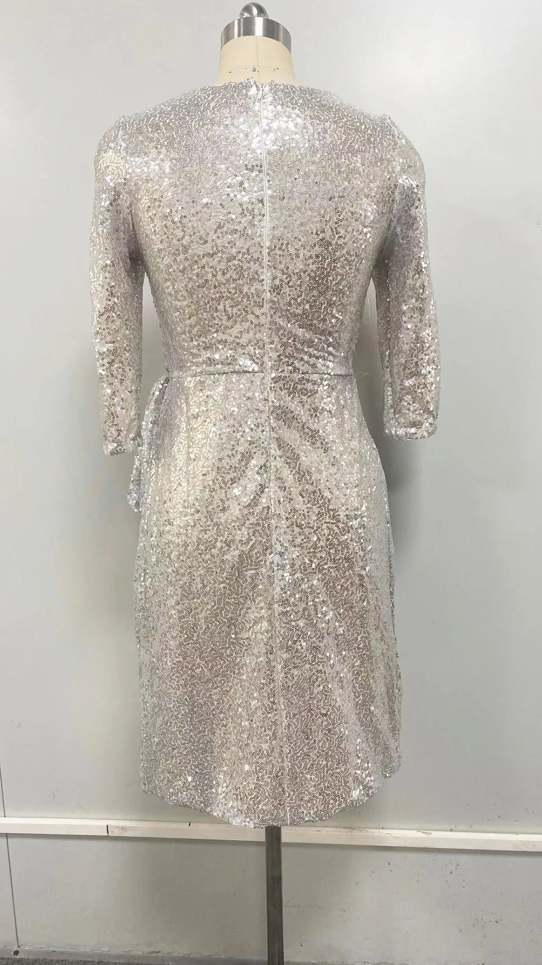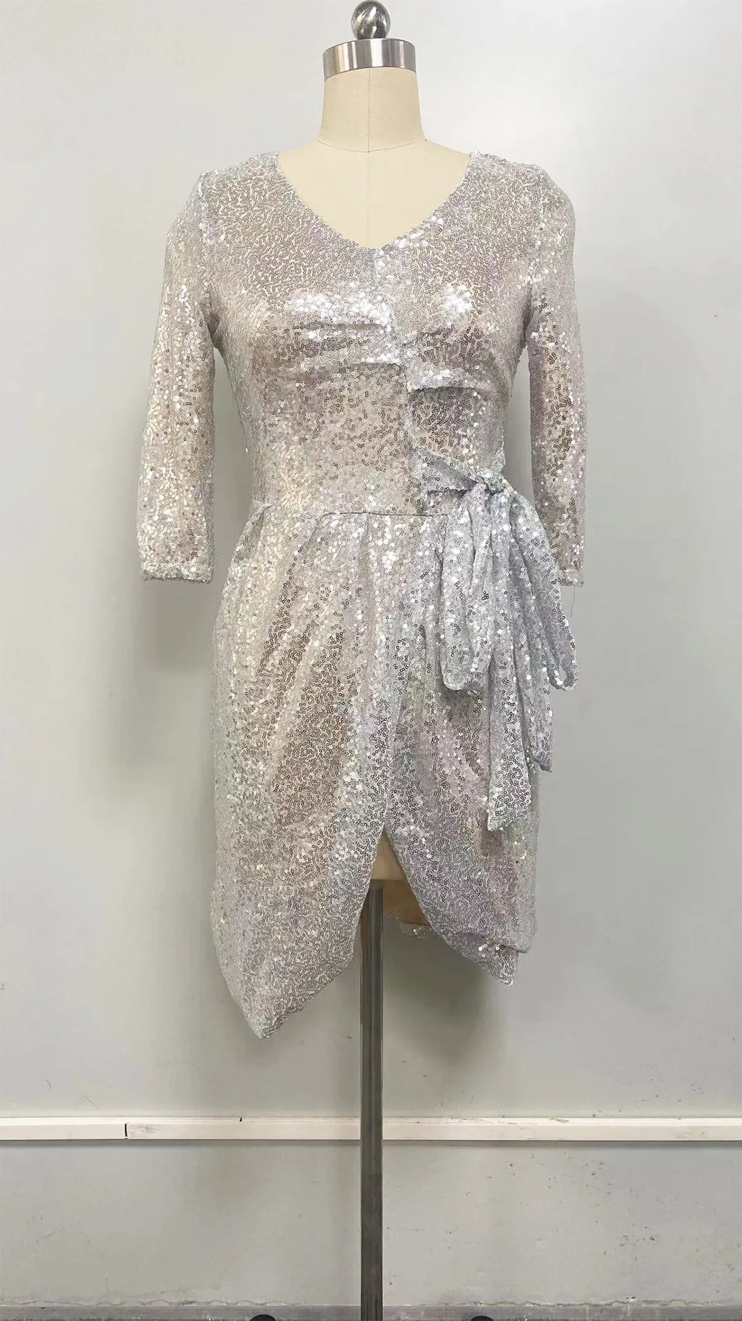 2023 Foreign Trade Cross-border New Women's Sexy Long Sleeve 3 Color Beads V-neck Lace Elegant Skirt