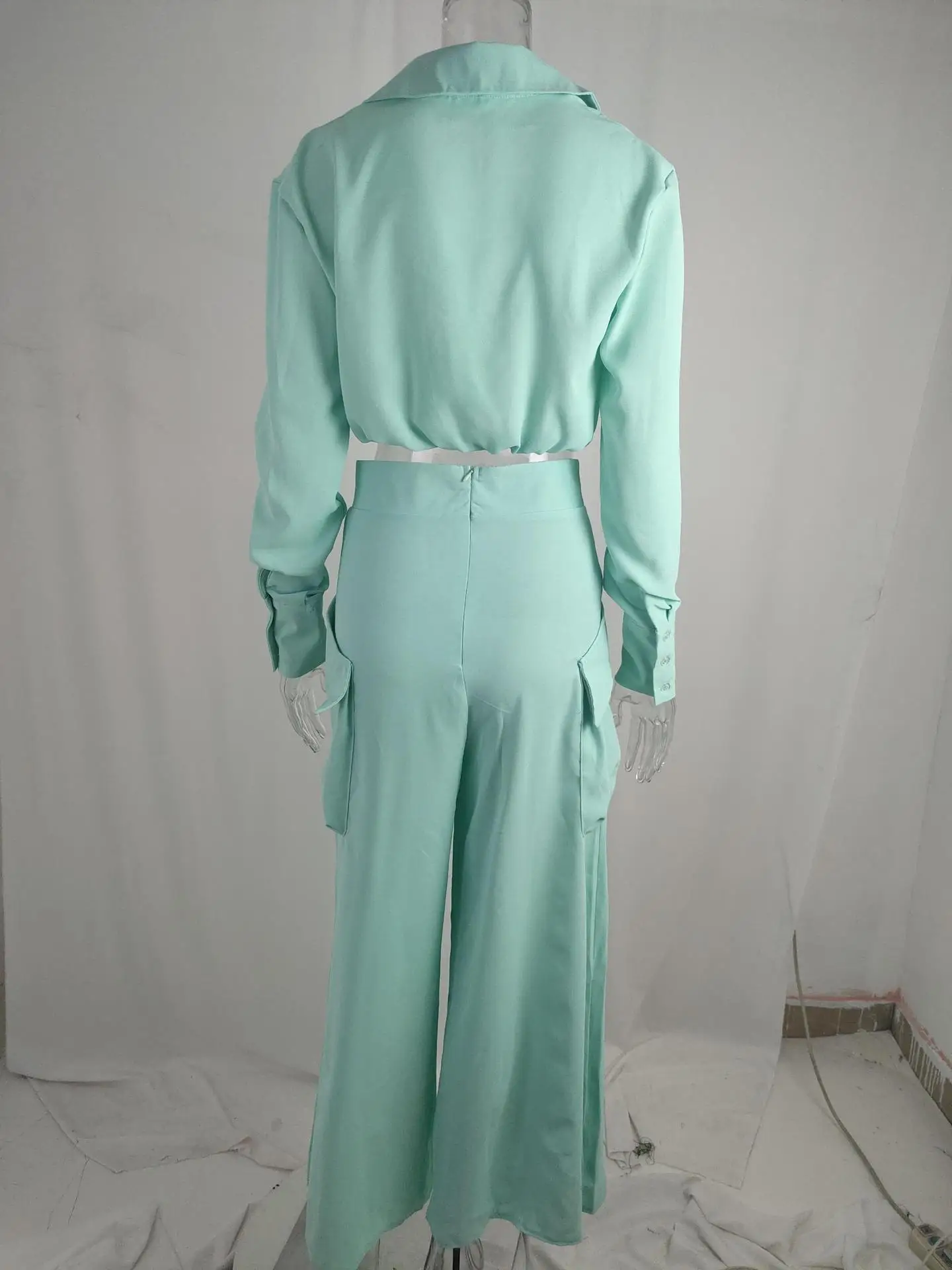 2023 Foreign Trade Women's Solid Color Temperament Commute Loose Pocket Fashion Leisure Suit