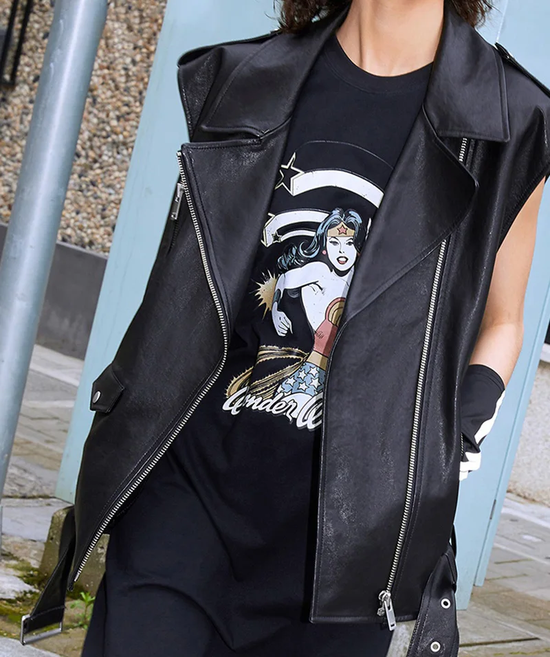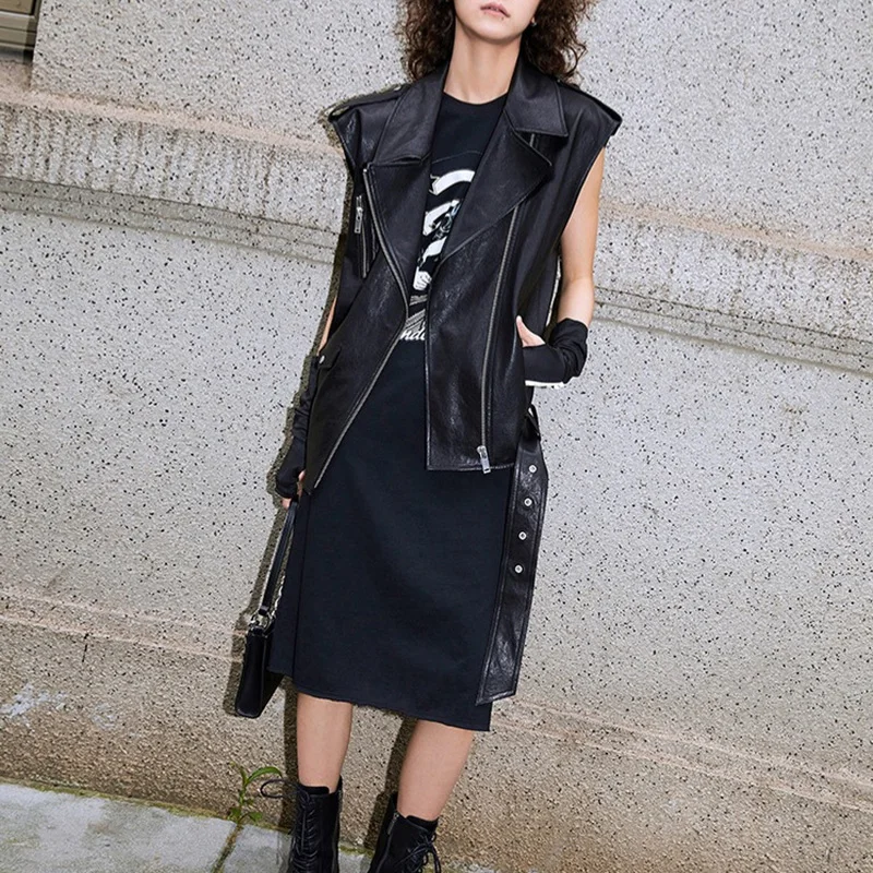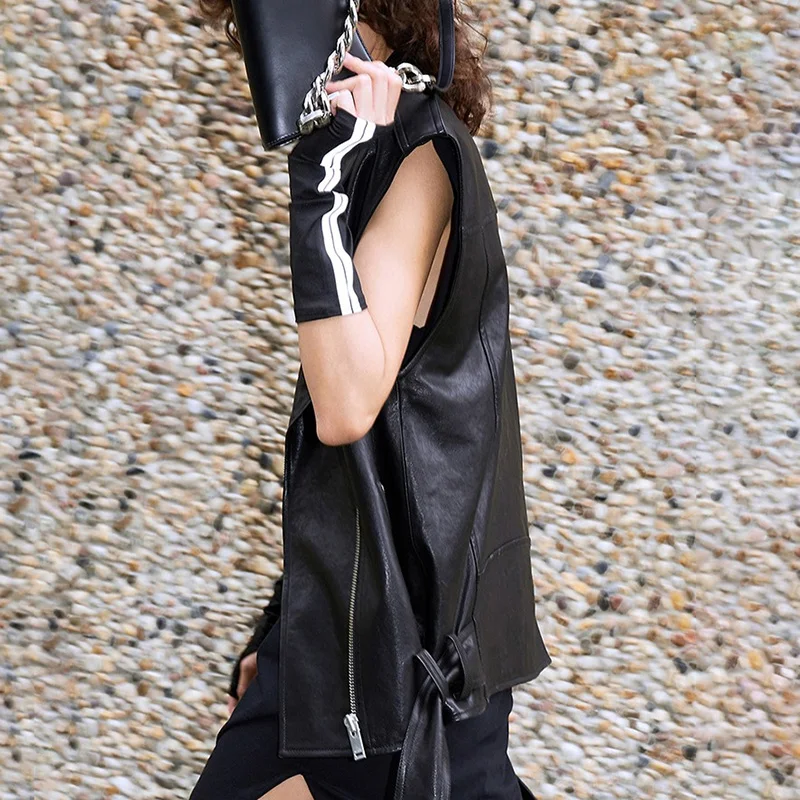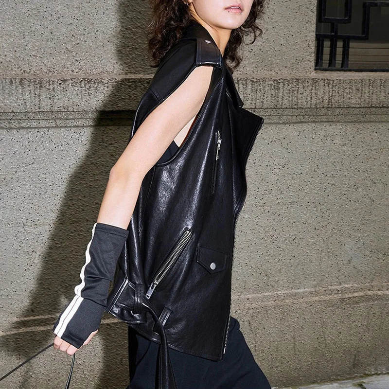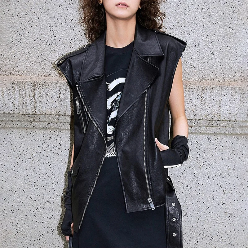 2023 Funky Vegetable Tanned Leather Vest Women Motorcycles Style Genuine Leather Vest