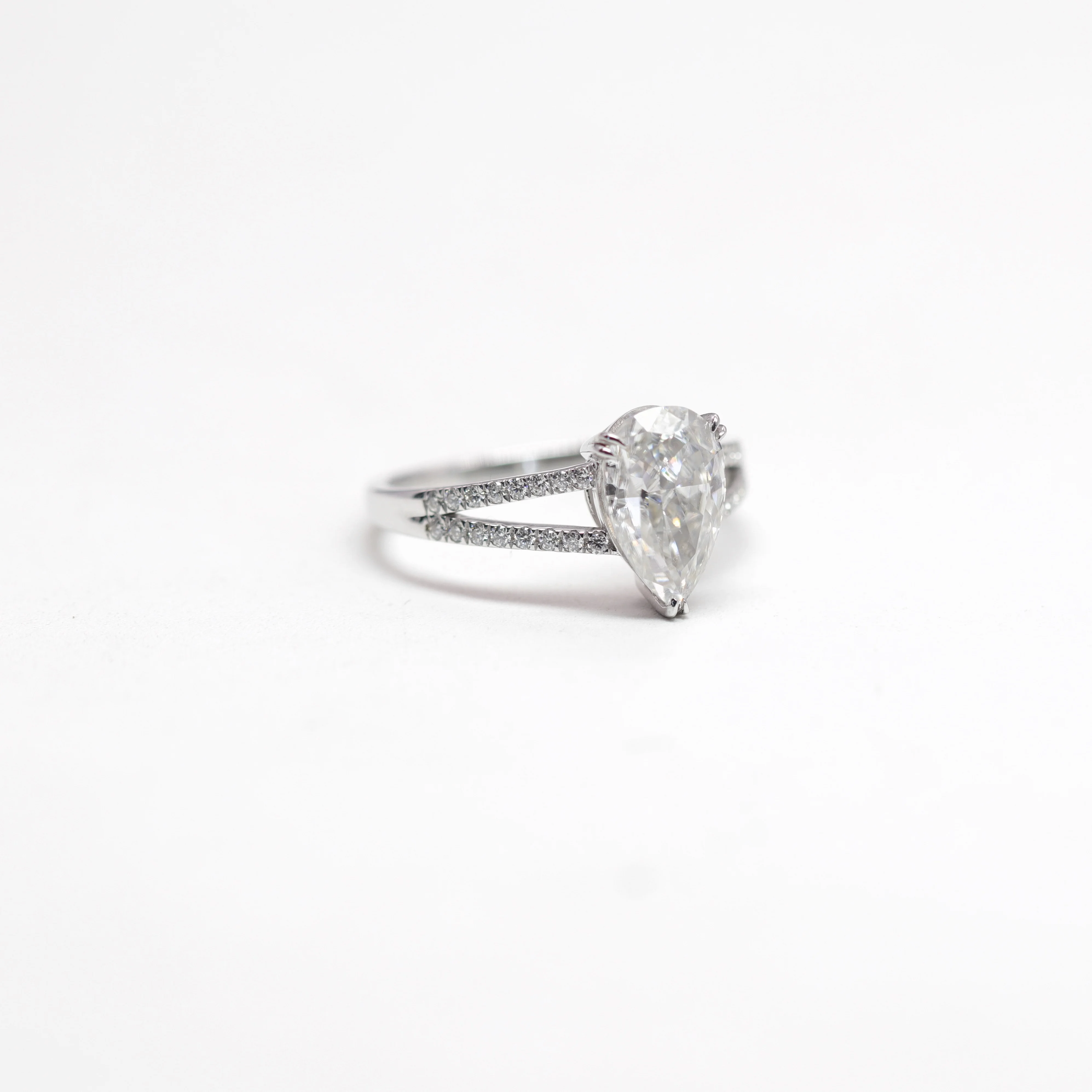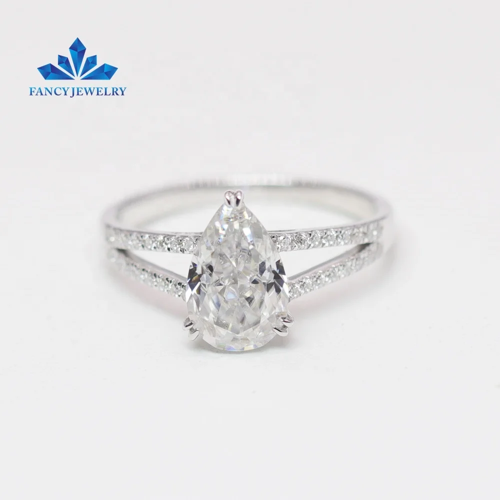 2023 Hot Selling 3CT 7x11MM Pear Cut Moissanite Double Band Ring 18K Solid White Gold Moissanite Engagement Ring