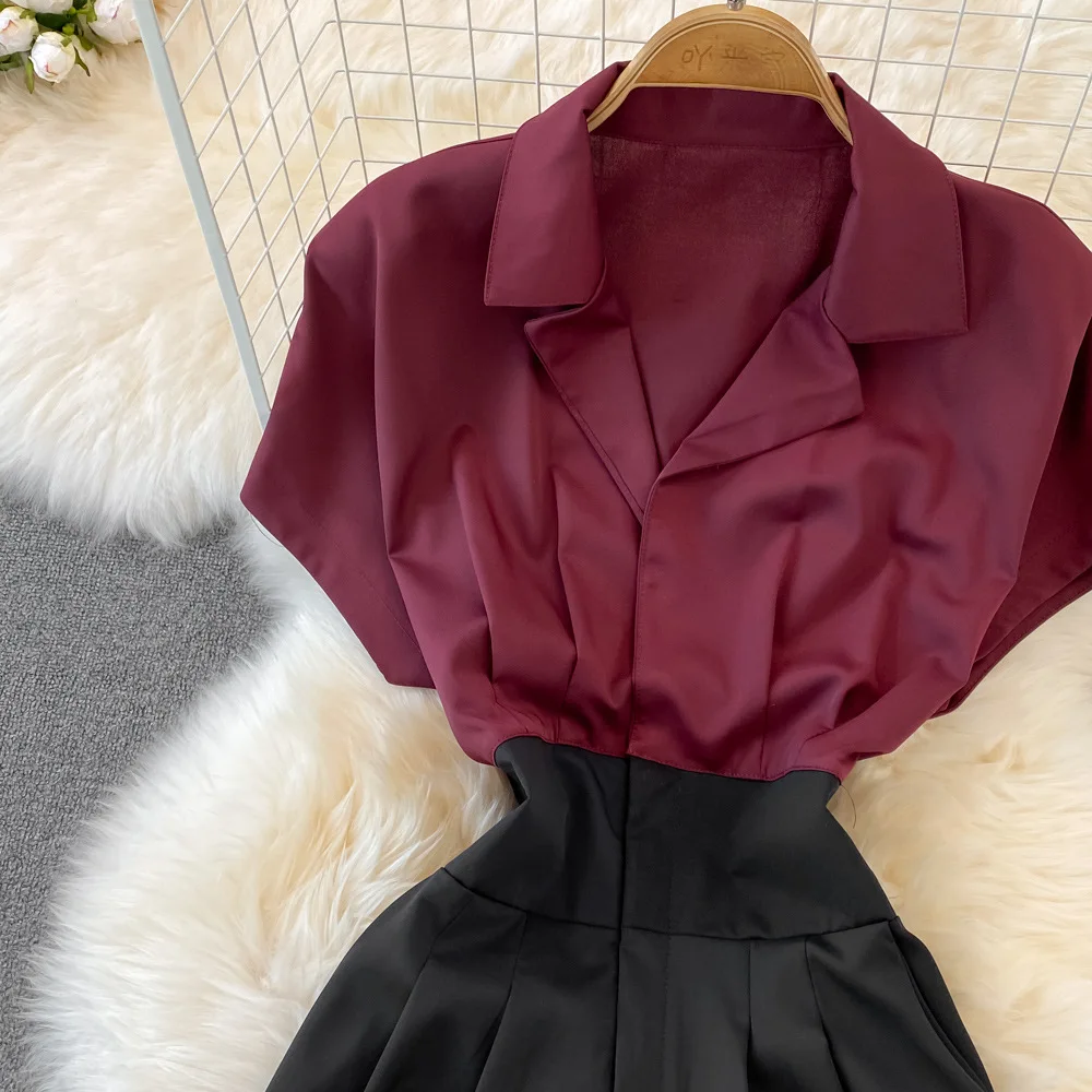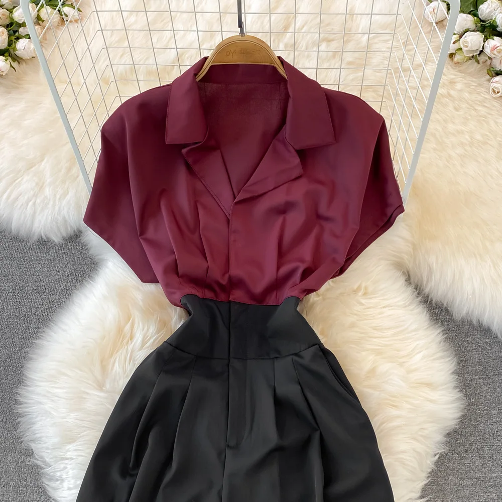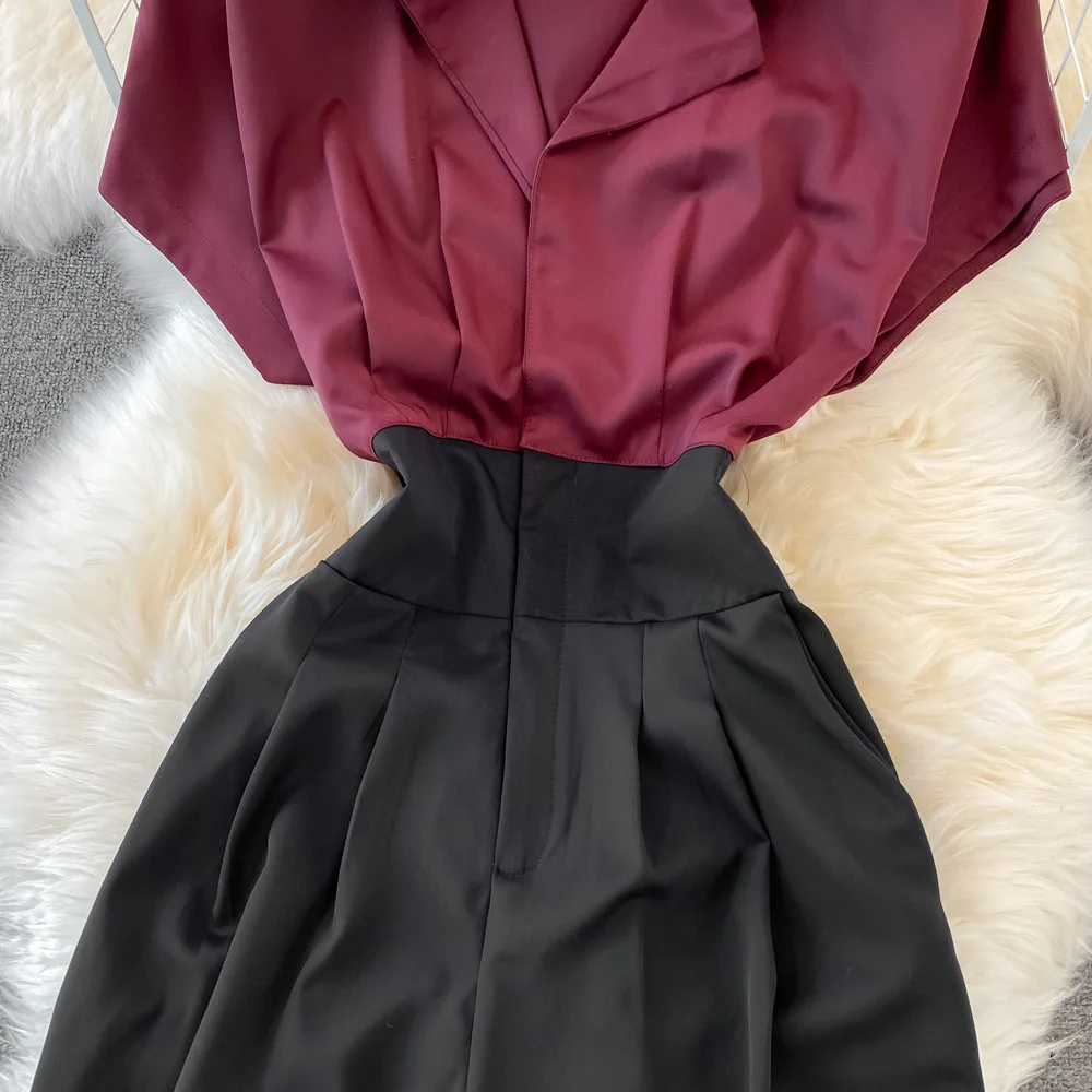 2023 Latest Women Turn-down High Waist Jumpsuit