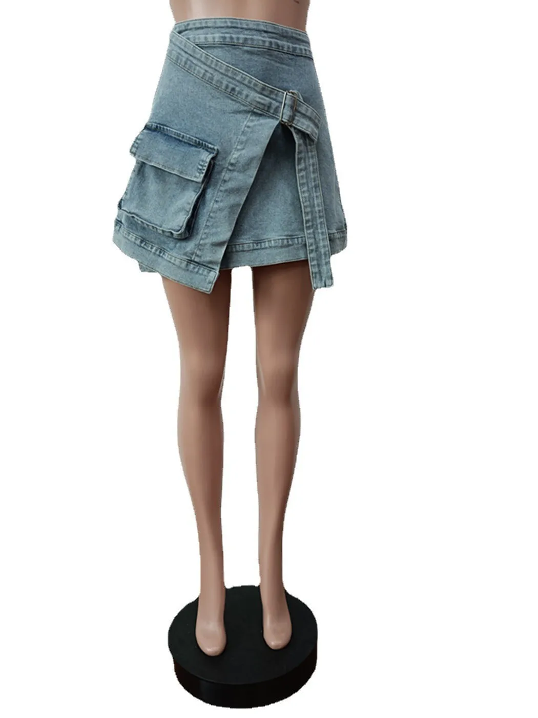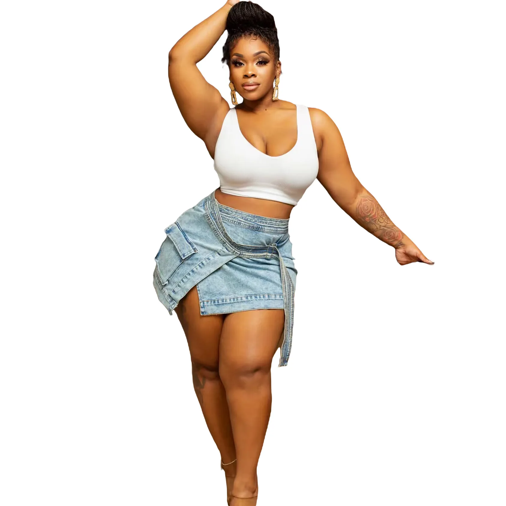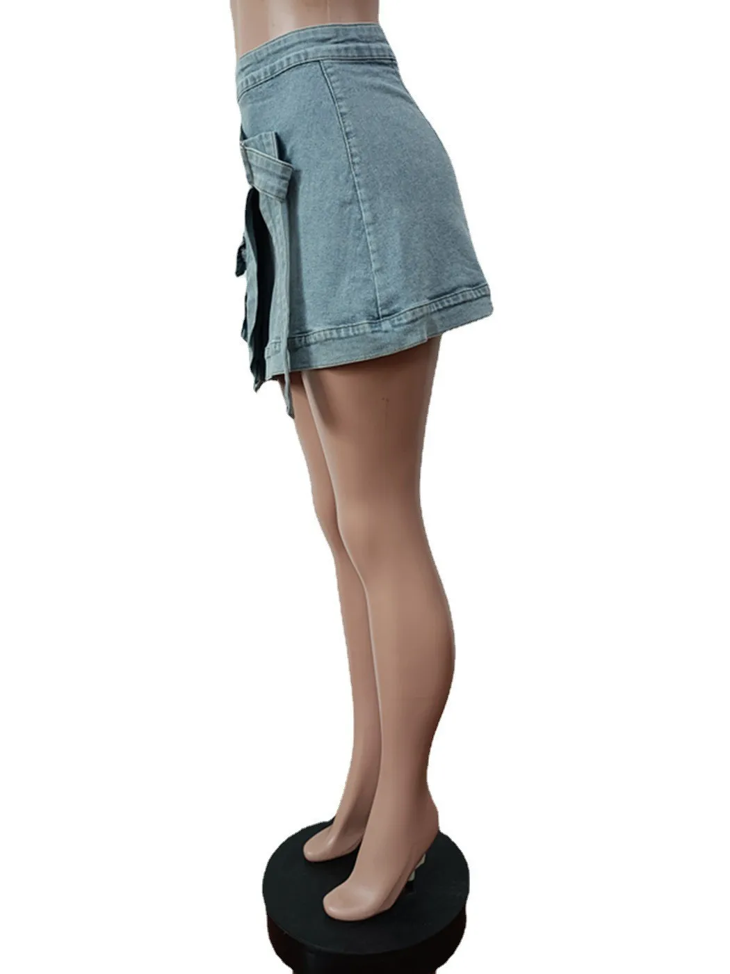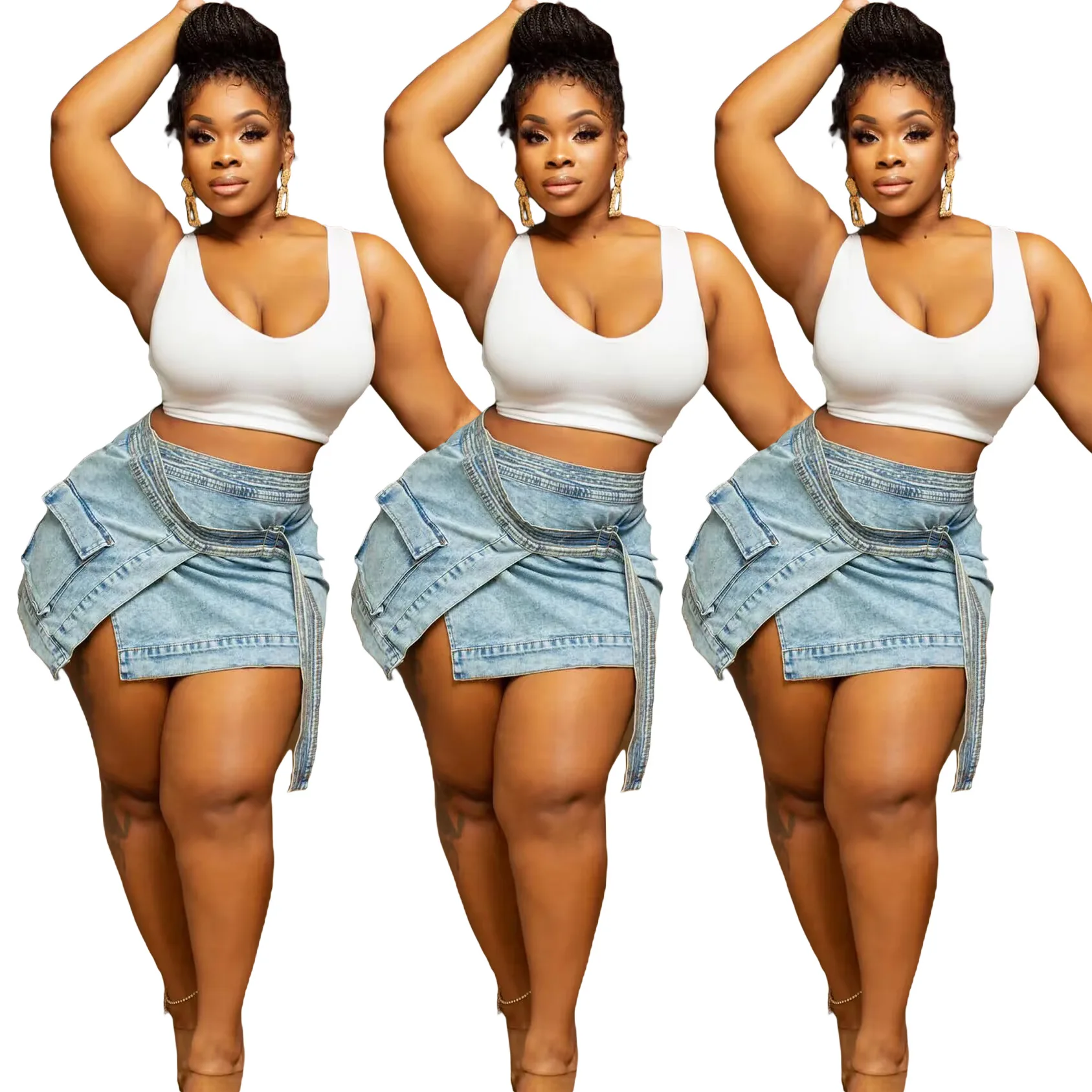 2023 New 3D pocket denim skirt summer sexy denim mini skirts hot sale lace up denim skirt