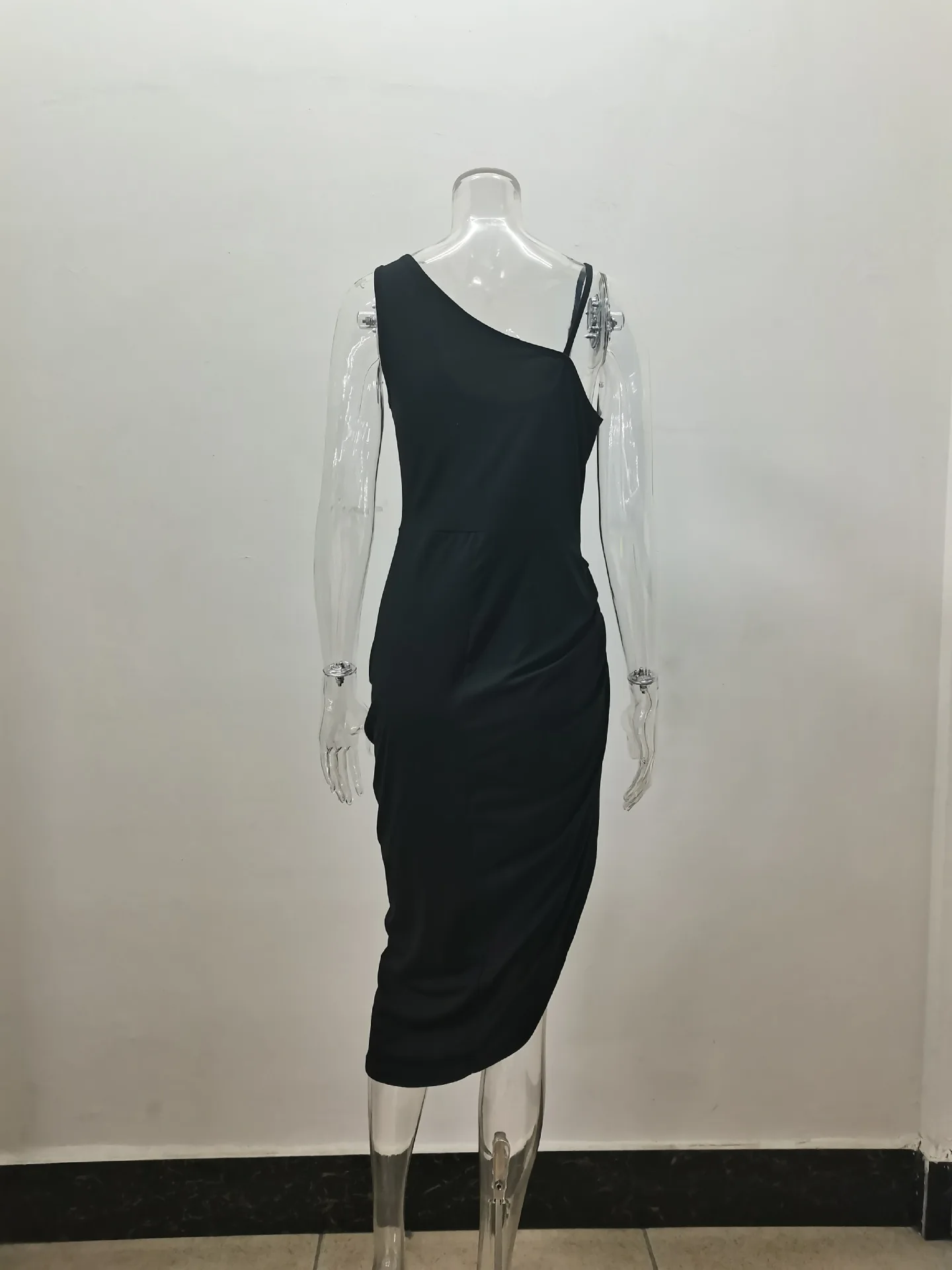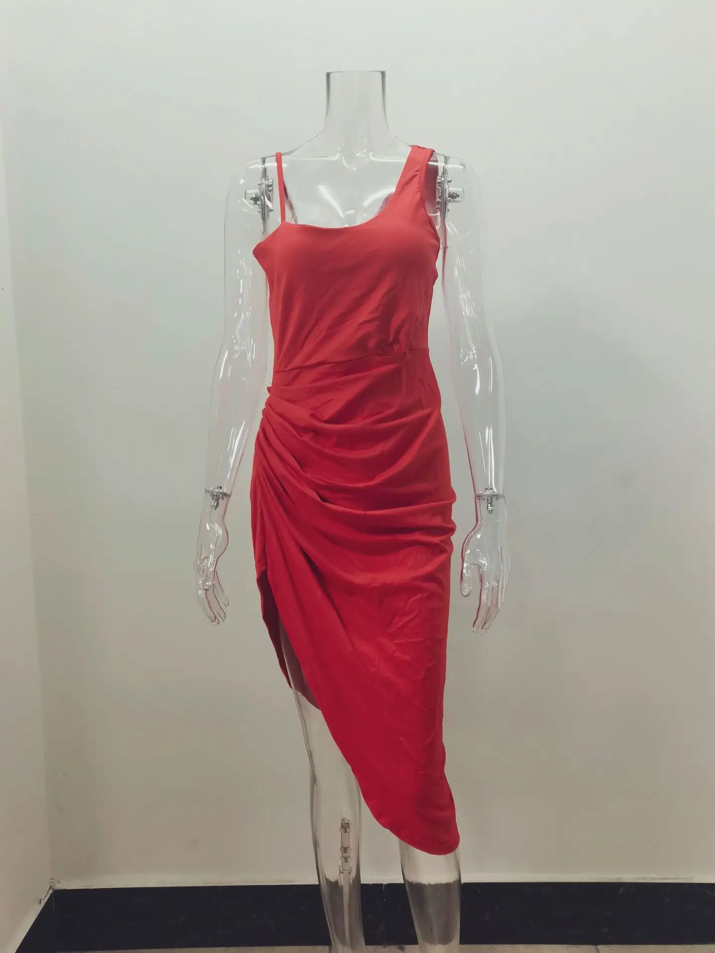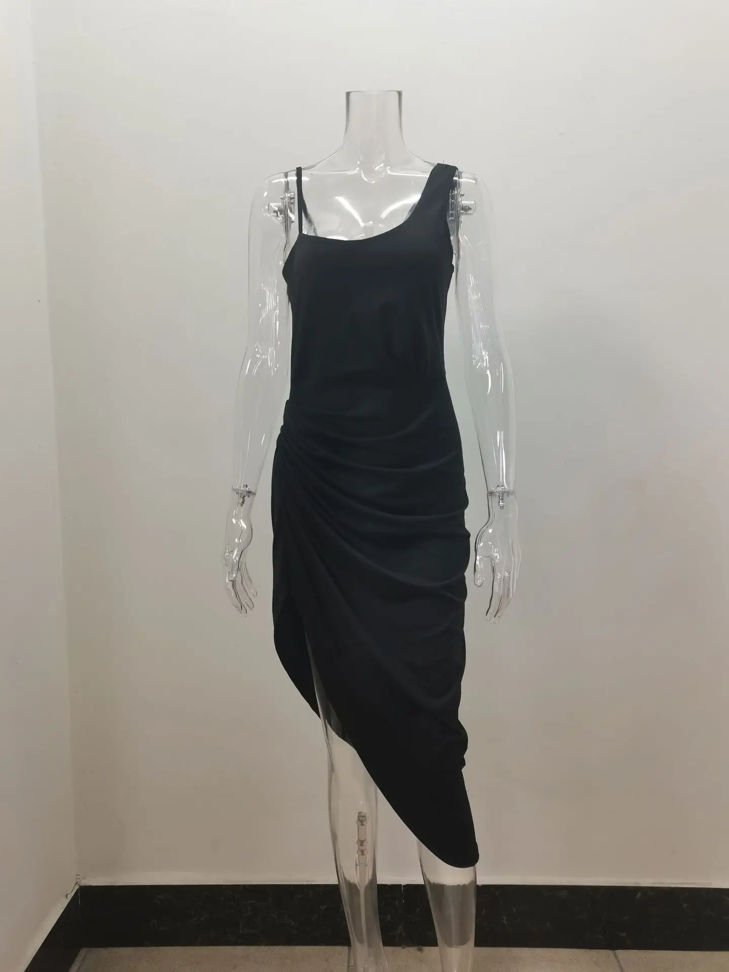 2023 New Arrival Fashion Women' Sexy Slit Irregular Dresses Pleated Off-Shoulder Evening Women's Dresses