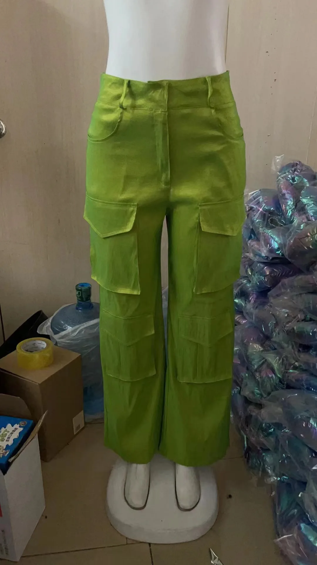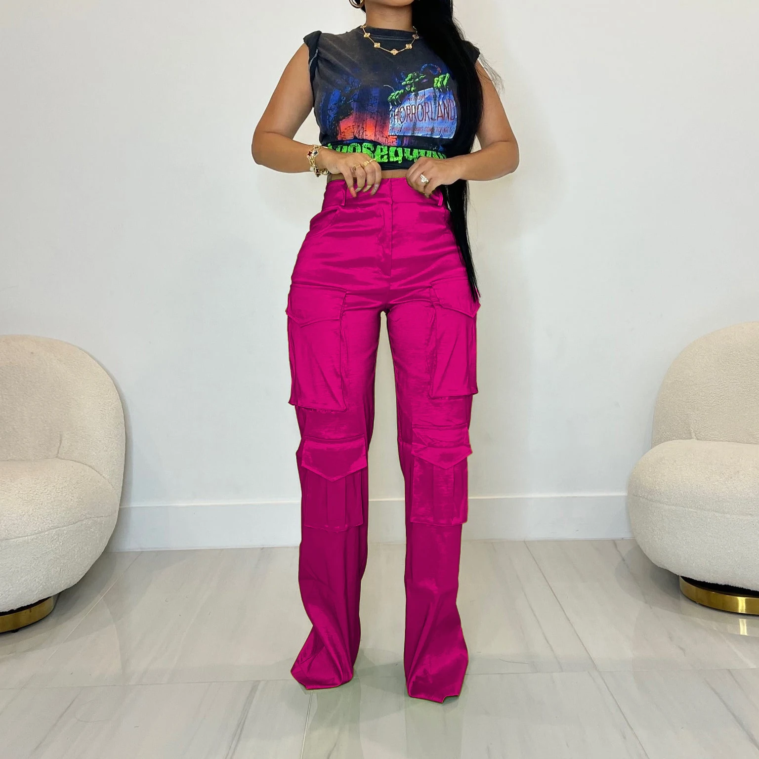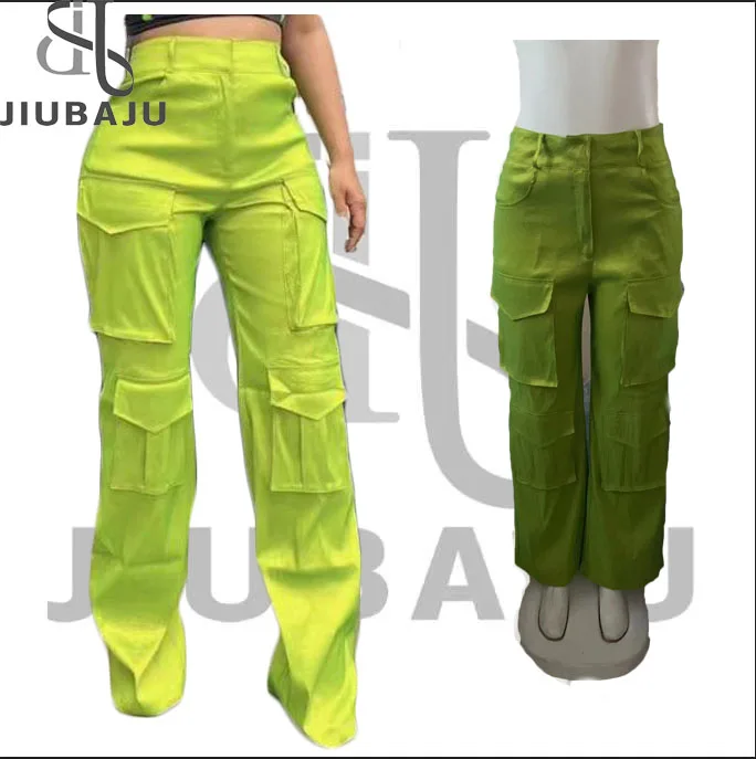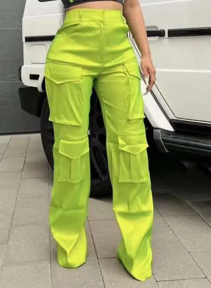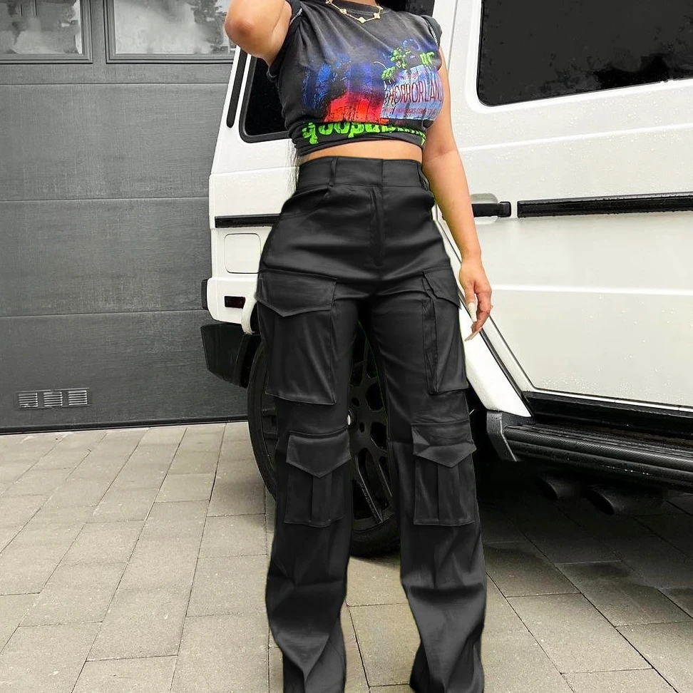 2023 New Arrival Solid Trousers With Big Pocket High Waist Lady Cargo Style Vintage Casual Women Pants