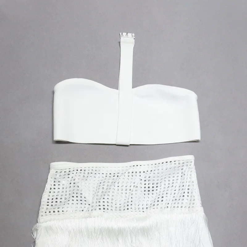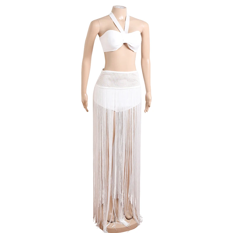 2023 New Arrival Summer Ladies Two Piece Outfits Fringe Skirt White Beach Wear