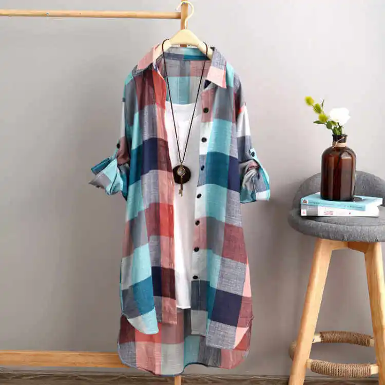 2023 New Arrival Summer Loose Fashion Plaid Women'S Clothes Plus Size Blouses & Shirts