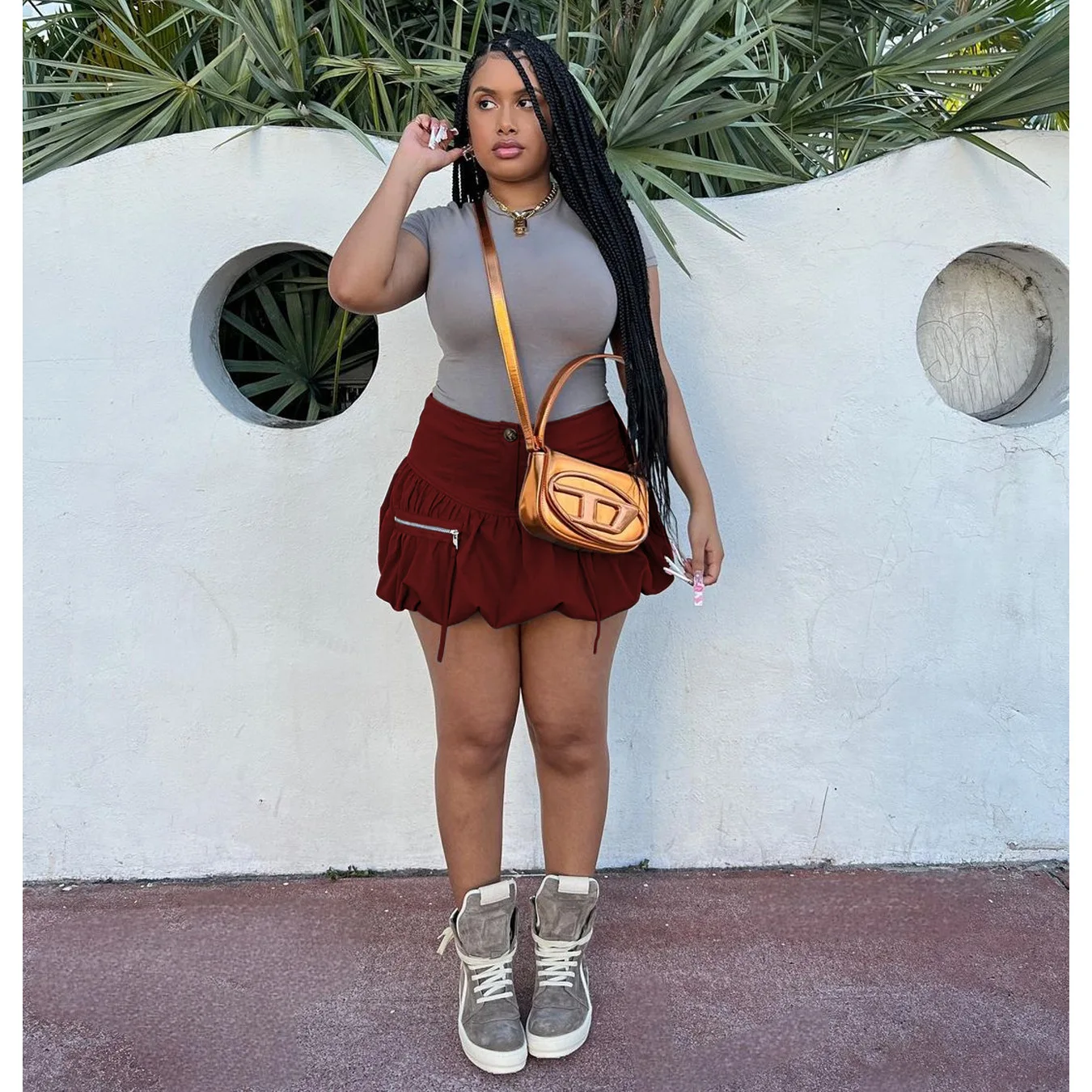 2023 New arrival Summer Pockets Cargo Mini Skirts For Women Zip Up High Waist Brown Short Skirts Female Casual Booty Skirts