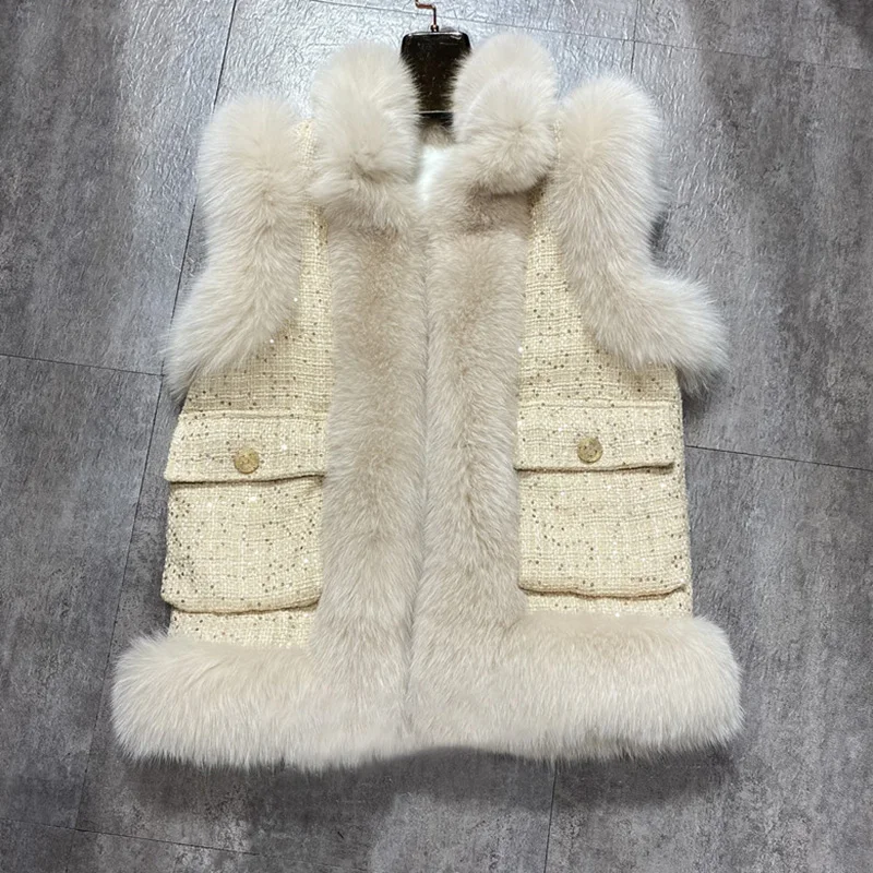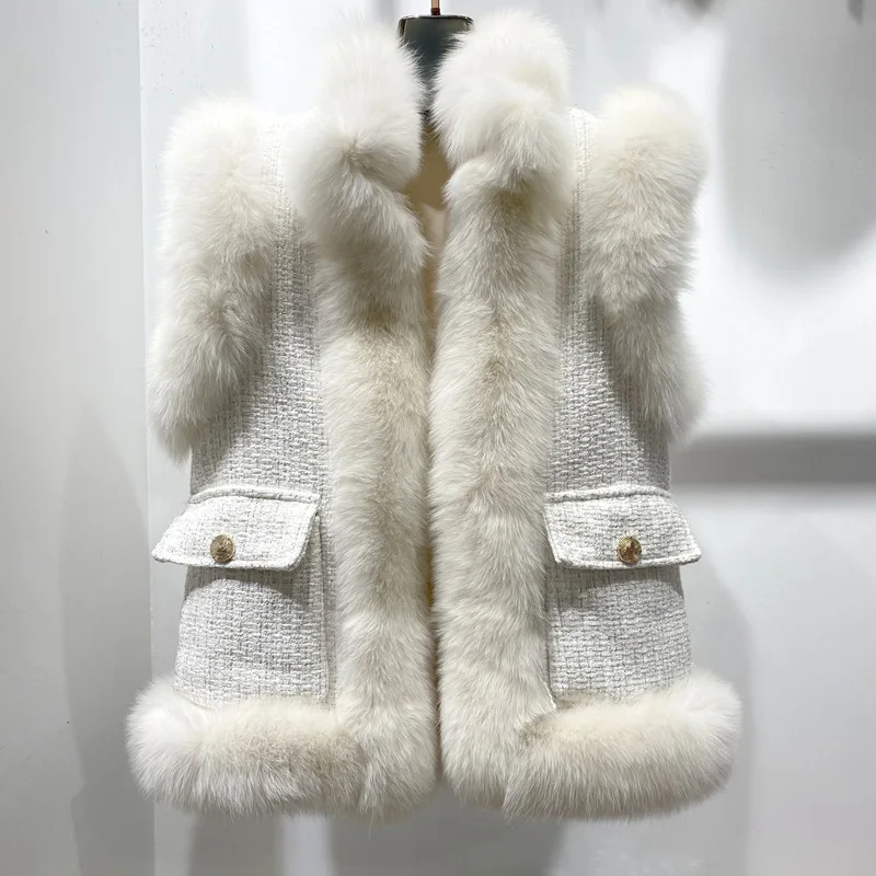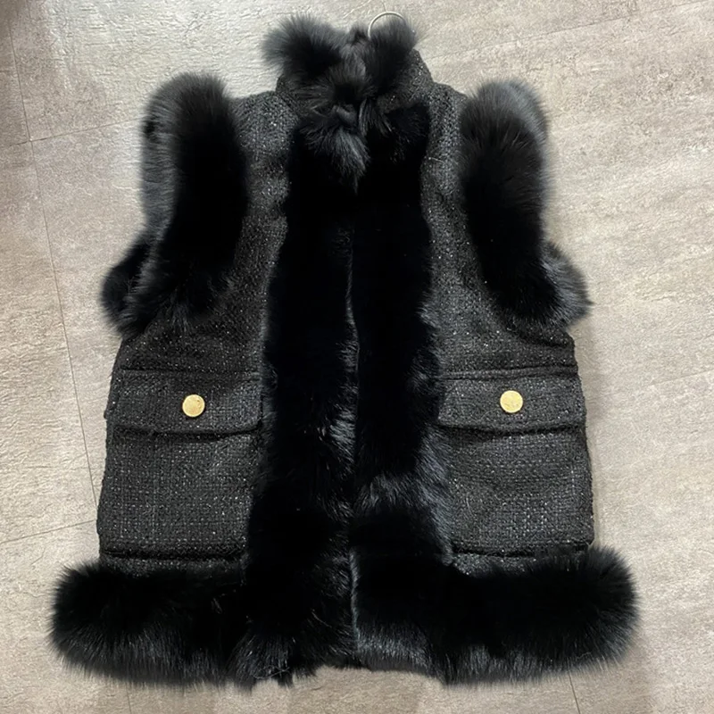 2022 New Arrival Wool Gilets Coats For Ladies Fashion Vest Cashmere Real Fur Coat