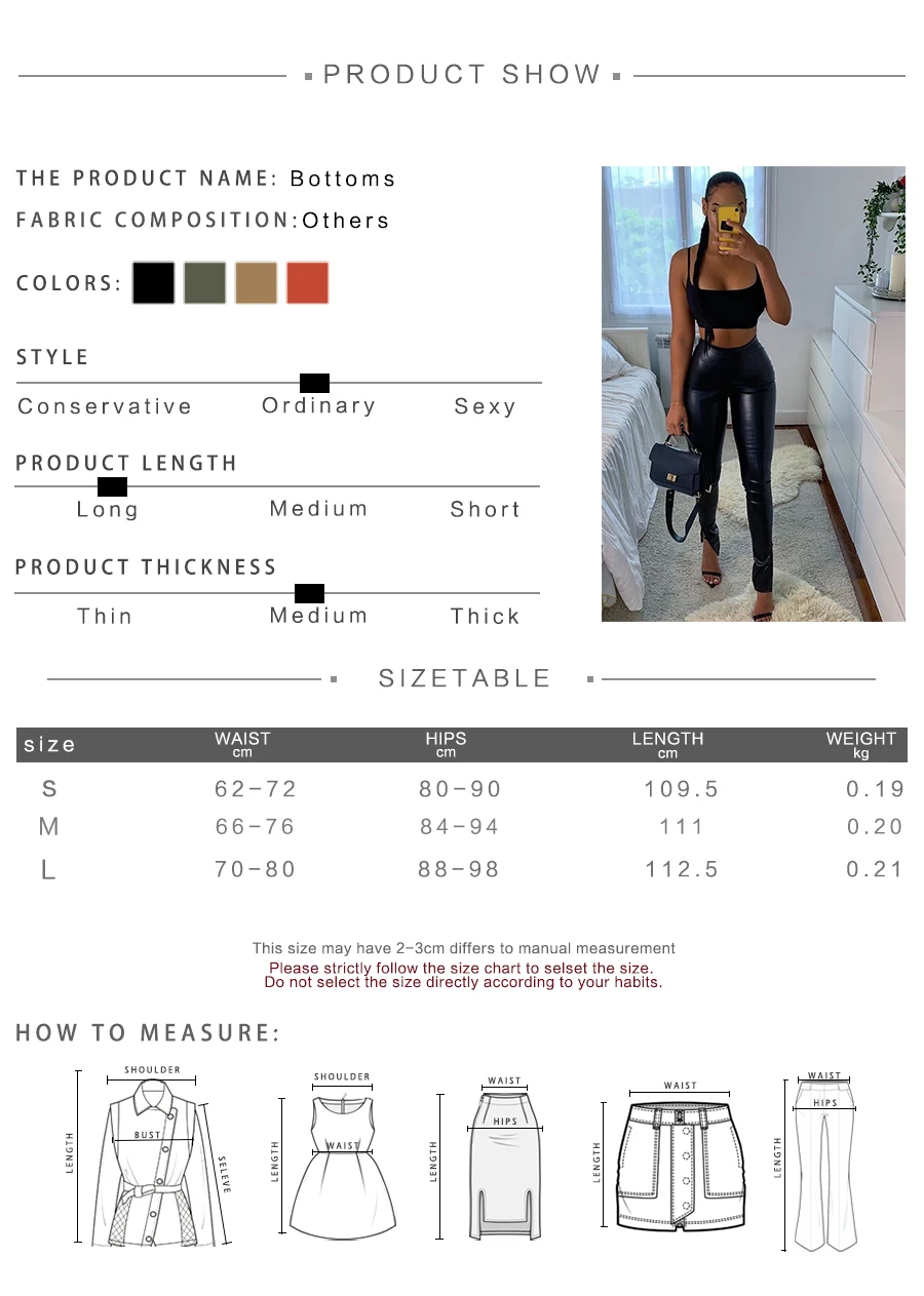 | Title | 2021 New Arrivals Autumn Solid Ankle Leather PU Pants Skinny Women's Trousers | |||