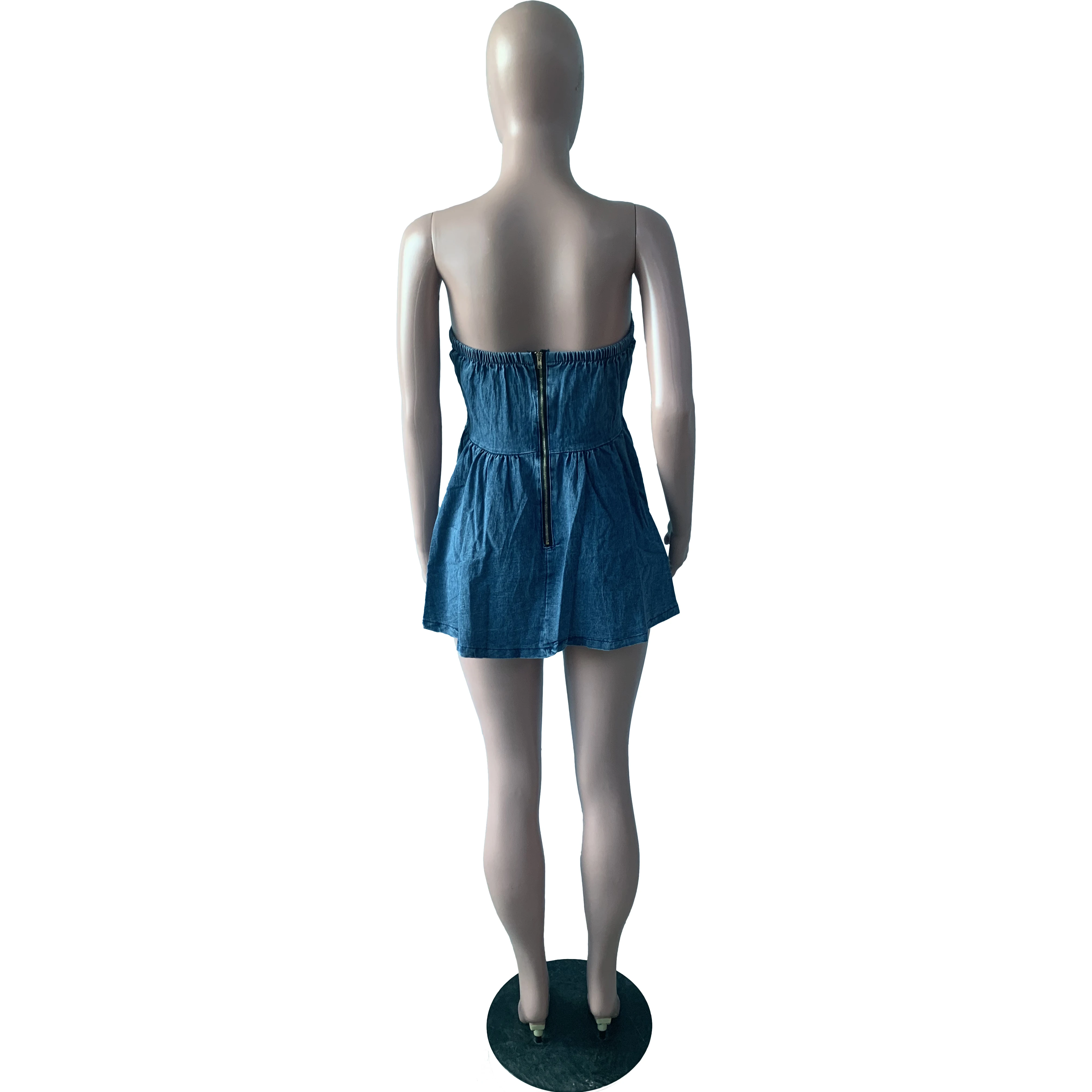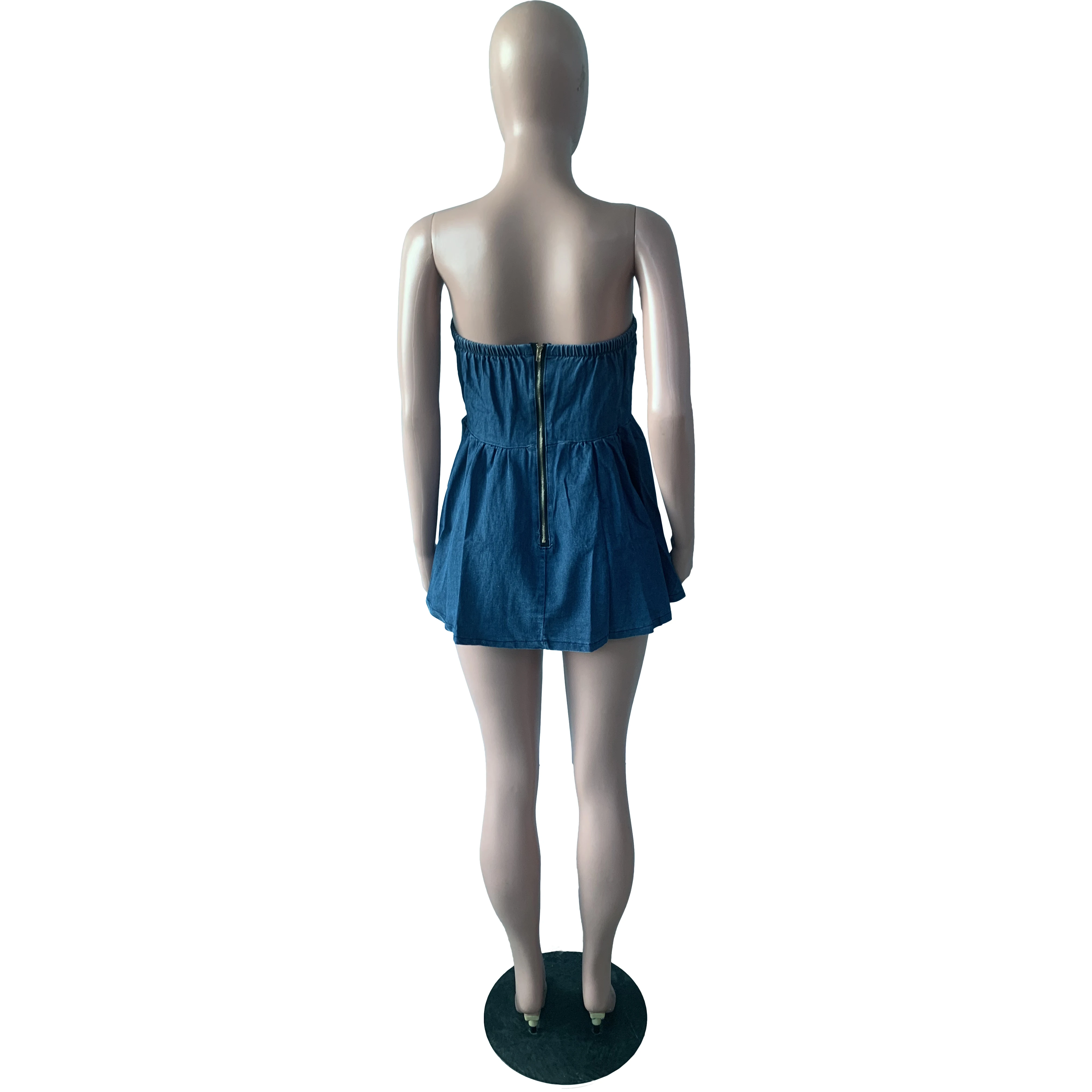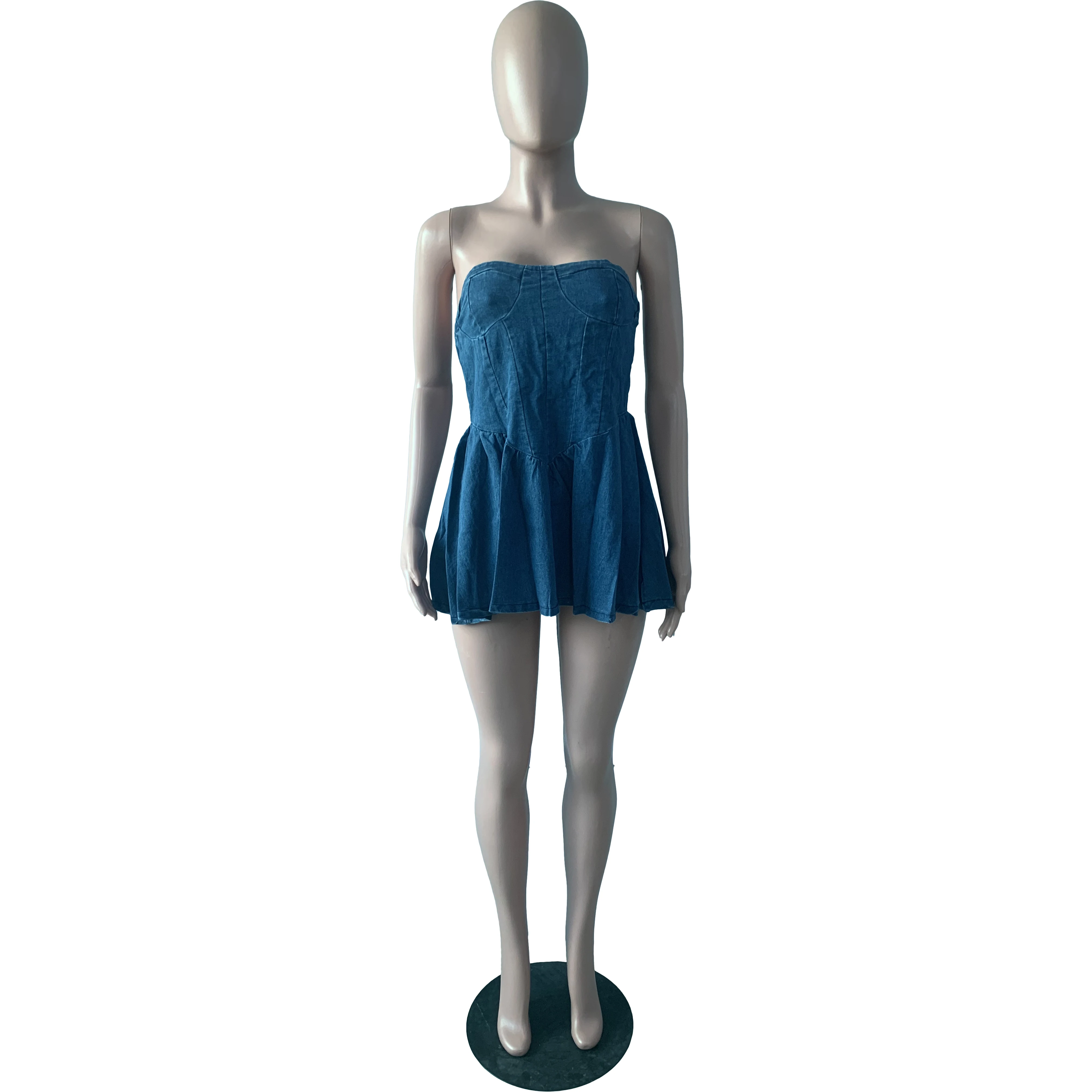 2023 New Arrivals Clothing Stretchable Fashion Sexy Corset Dress Pleated Backless Denim Dress Women