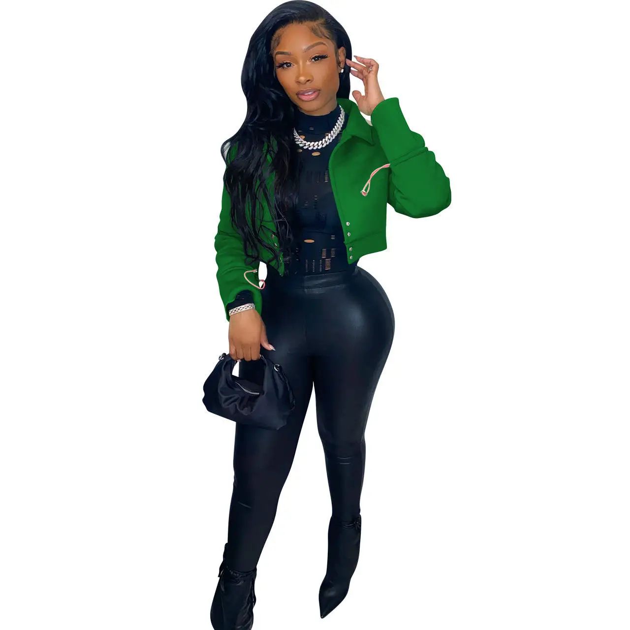2023 New Arrivals Fashion Long Sleeve Buttons Patchwork Stretchy Wholesale Custom Blank Cropped Jackets Women