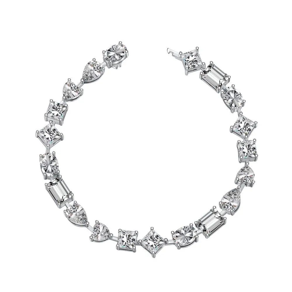 2023 new arrivals jewelry 3-6mm Color Geometric Cubic Zirconia Tennis Bracelets 925 Sterling Silver Jewelry