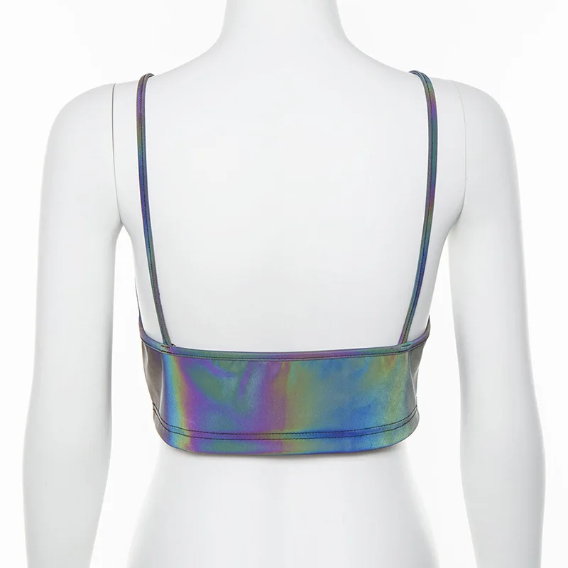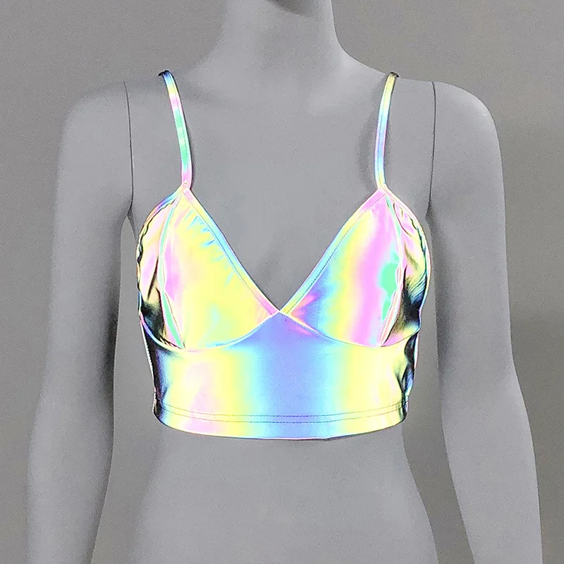 2023 New Arrivals Laser Reflection Women Tank Tops Summer Sling Crop Top V Neck Fashion Tank Top Women Halter