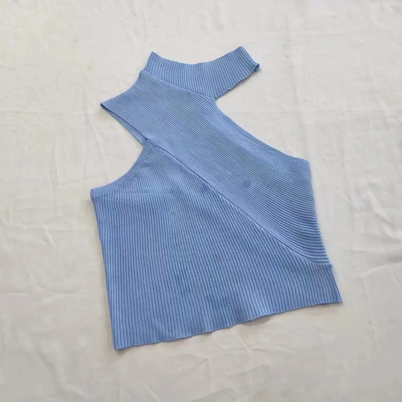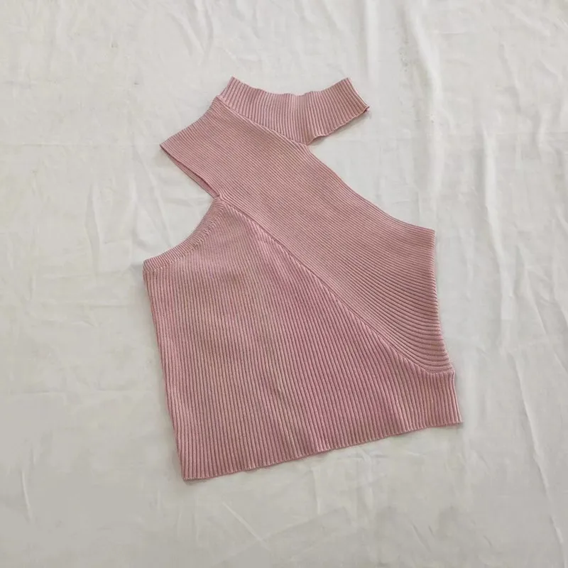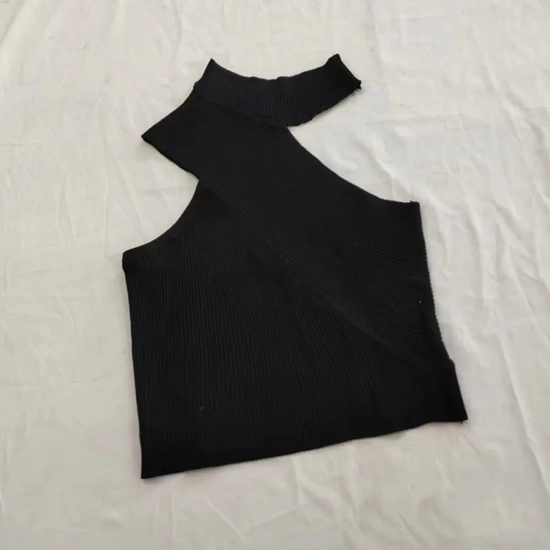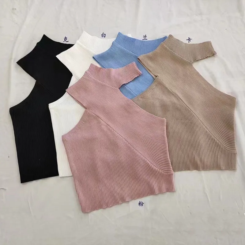 2023 New Arrivals Solid Knitted Bevel One Shoulder Women's Tank Tops New Design Sexy Women Sweater