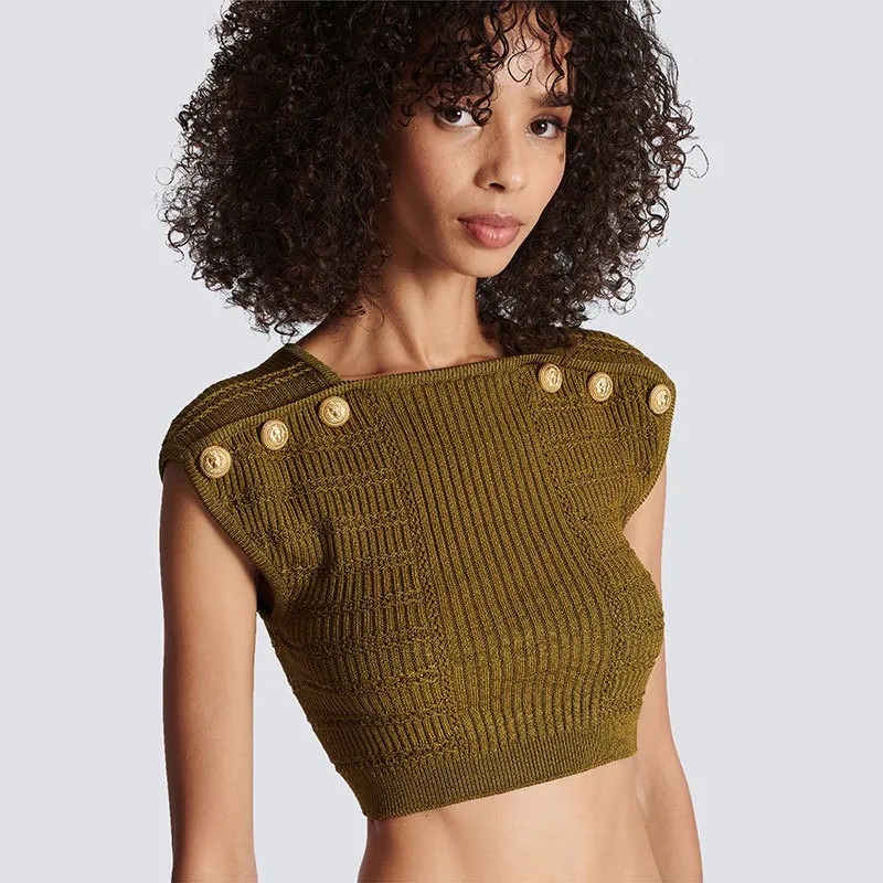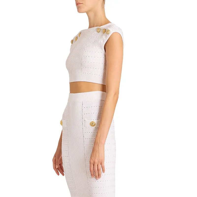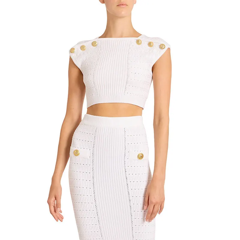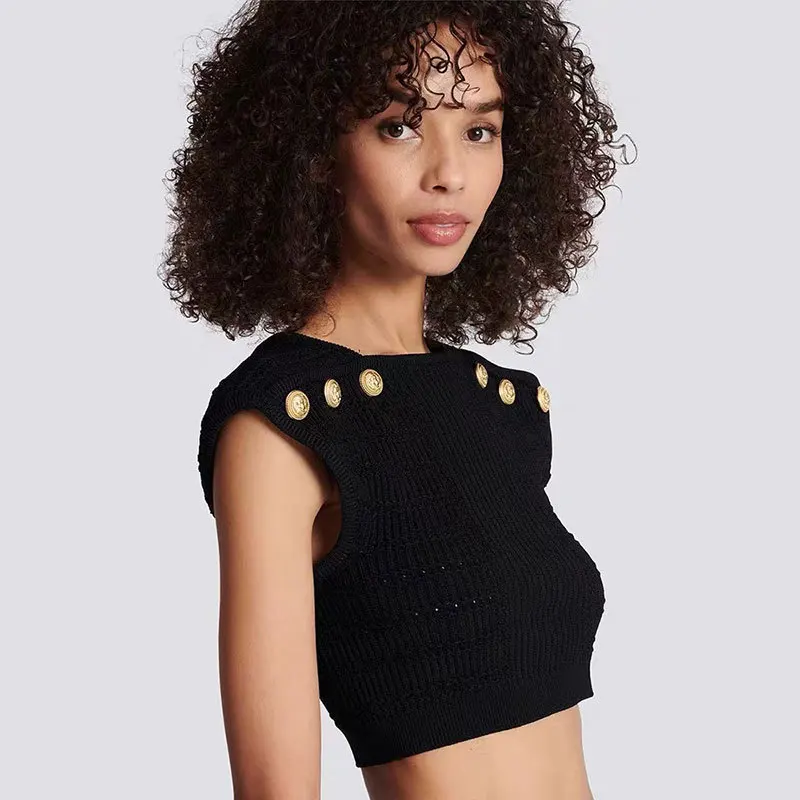 2023 new arrivals summer collection bandage knitted women fashion sexy round neck tank top