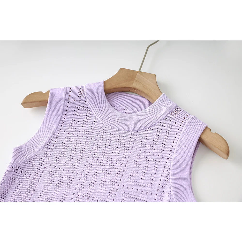 2023 new arrivals summer collection bandage knitted women fashion sexy round neck tank top