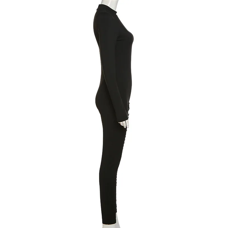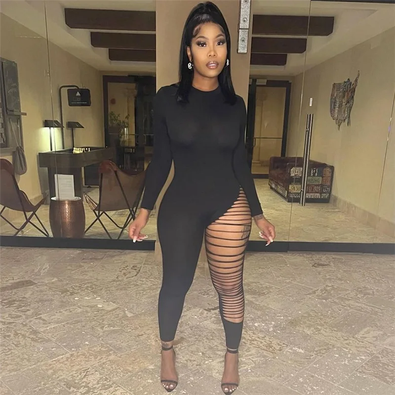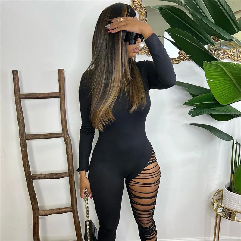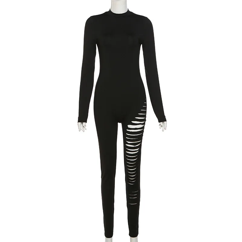 2023 new arrivals Women's Solid Long Sleeve Slim High Waist Hollow out Sports Jumpsuit v neck black sexy one piece romper