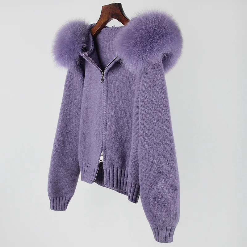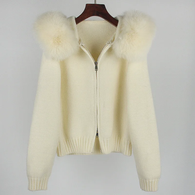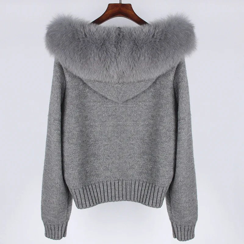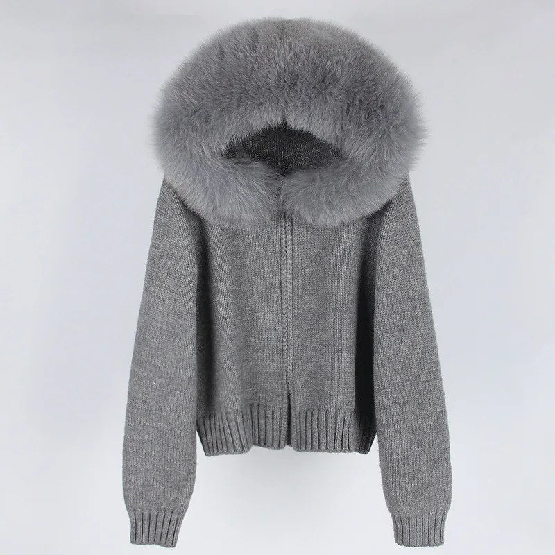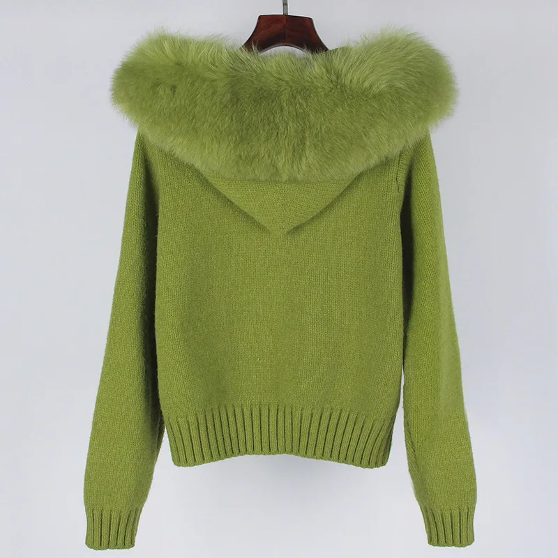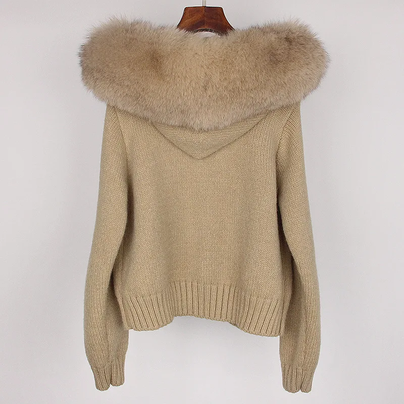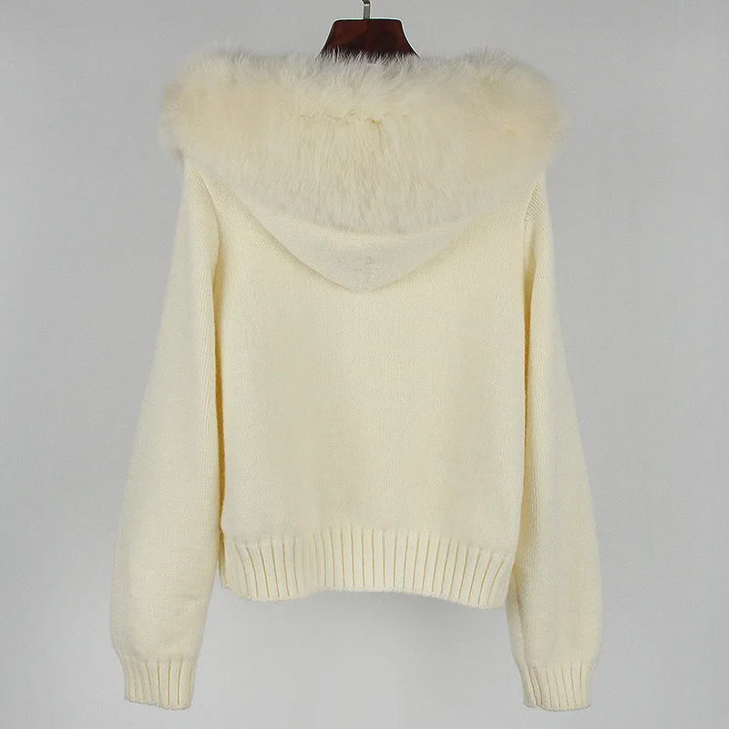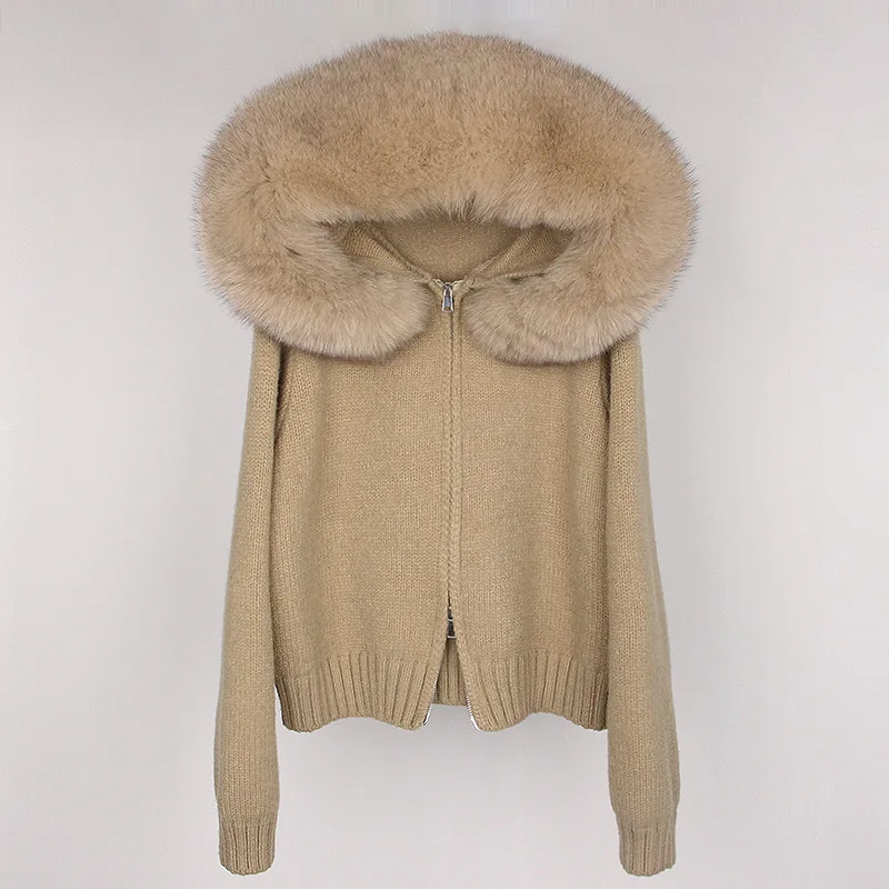 2023 New Autumn And Winter Leisure Hooded Real Fox Fur Collar Fashion All-Match Sweater Outer Fur Coat For Women