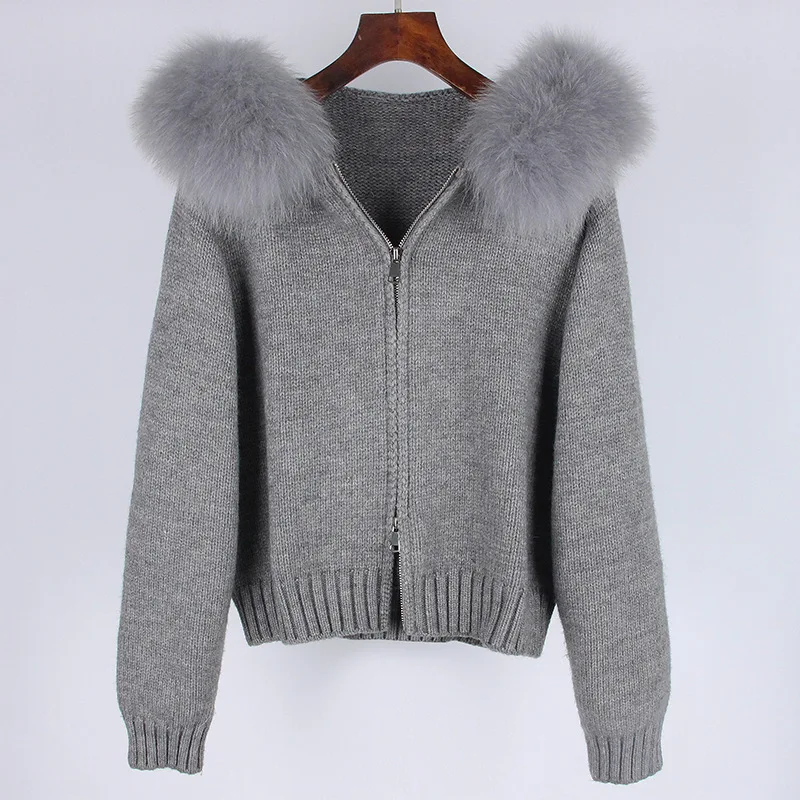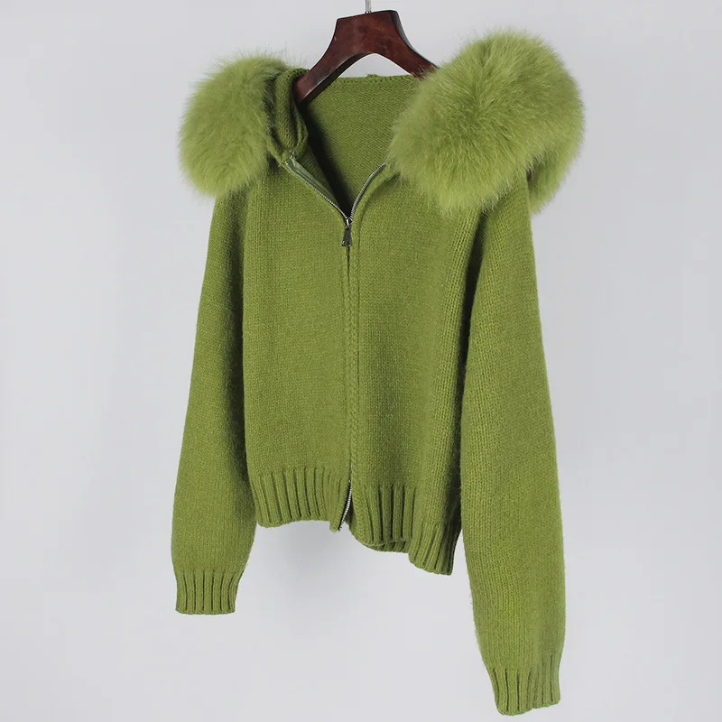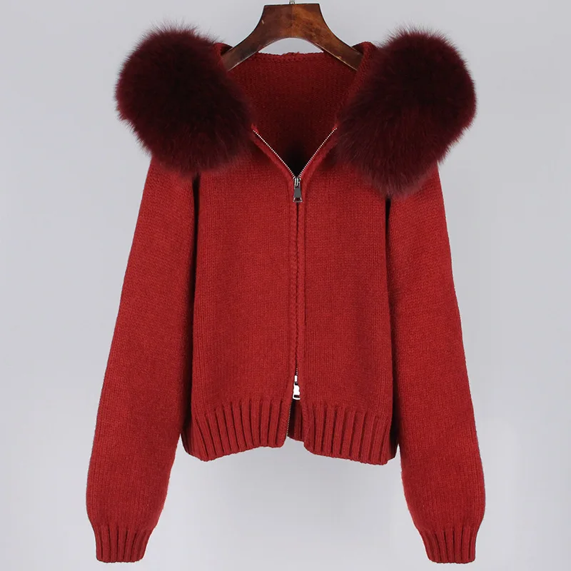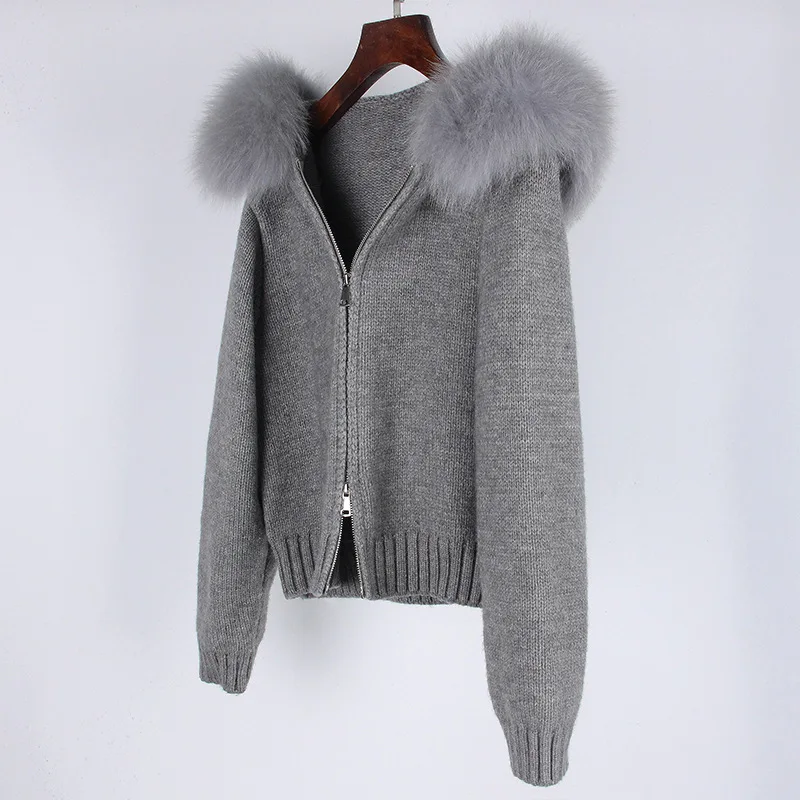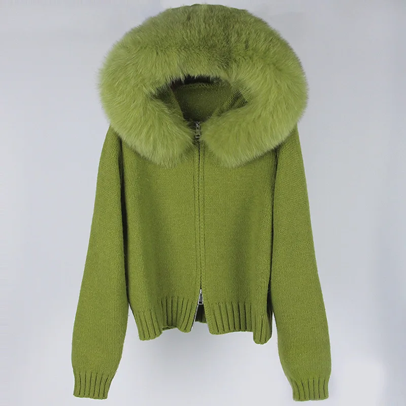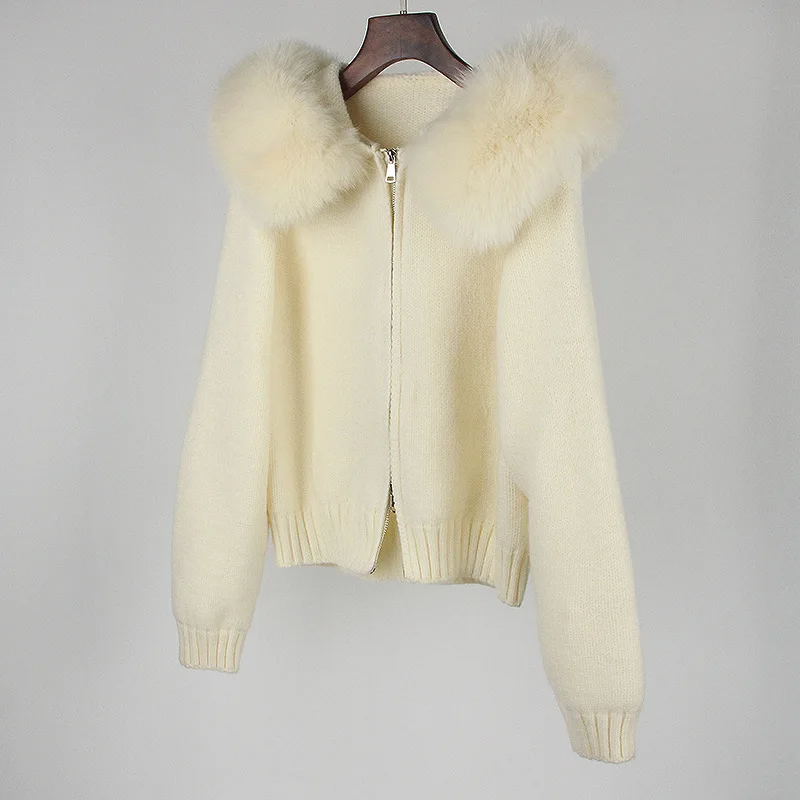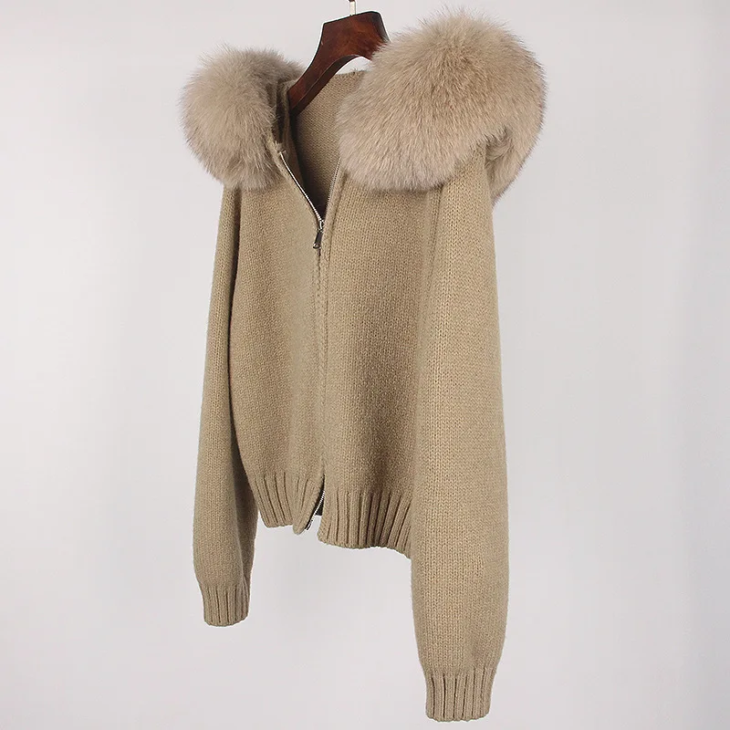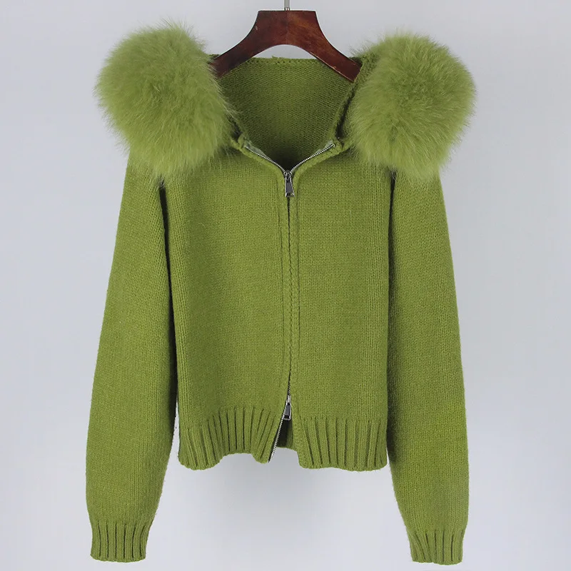 2023 New Autumn And Winter Leisure Hooded Real Fox Fur Collar Fashion All-Match Sweater Outer Fur Coat For Women