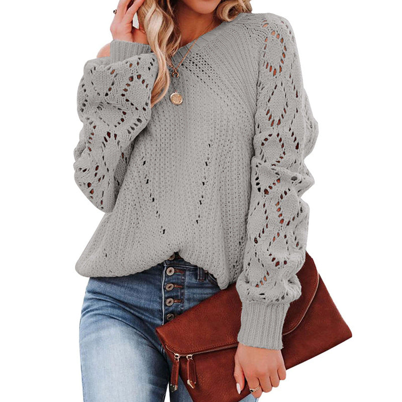 2023 New Autumn Women Fall Long Solid Color Puff Hollow Out Sleeve Pullover Sweaters Plus Size Chenille Tapestry Sweaters Tops