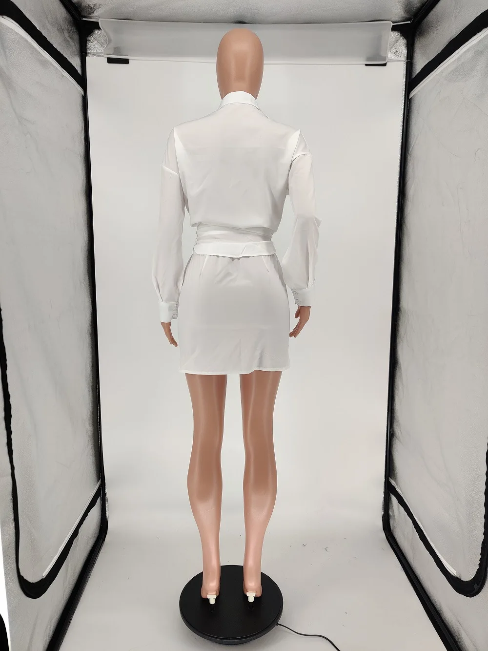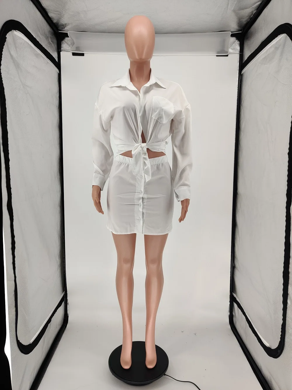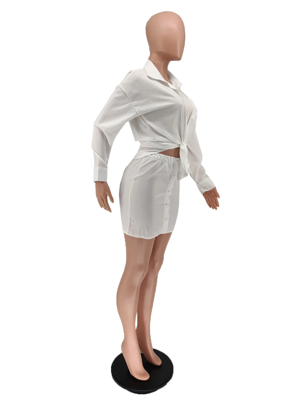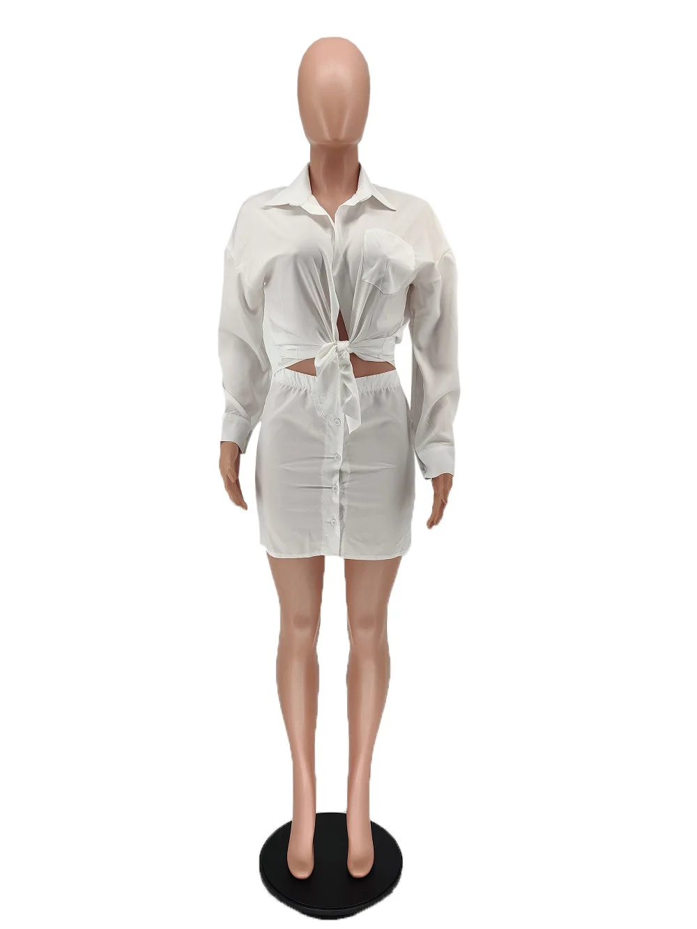 2023 New Custom Wholesale Women's casual solid color shirt button skirt two-piece set