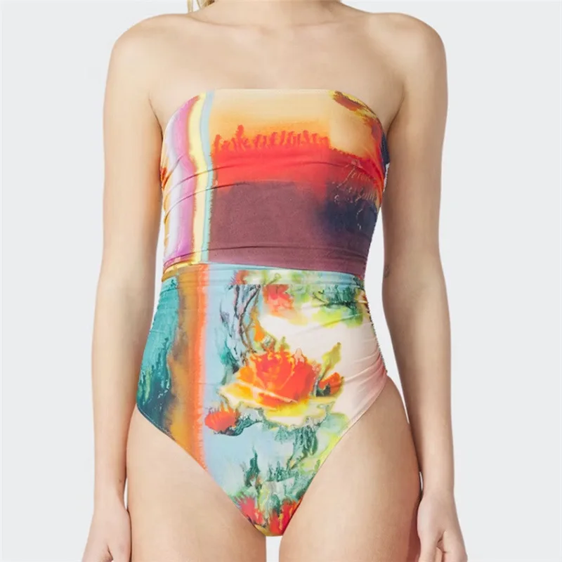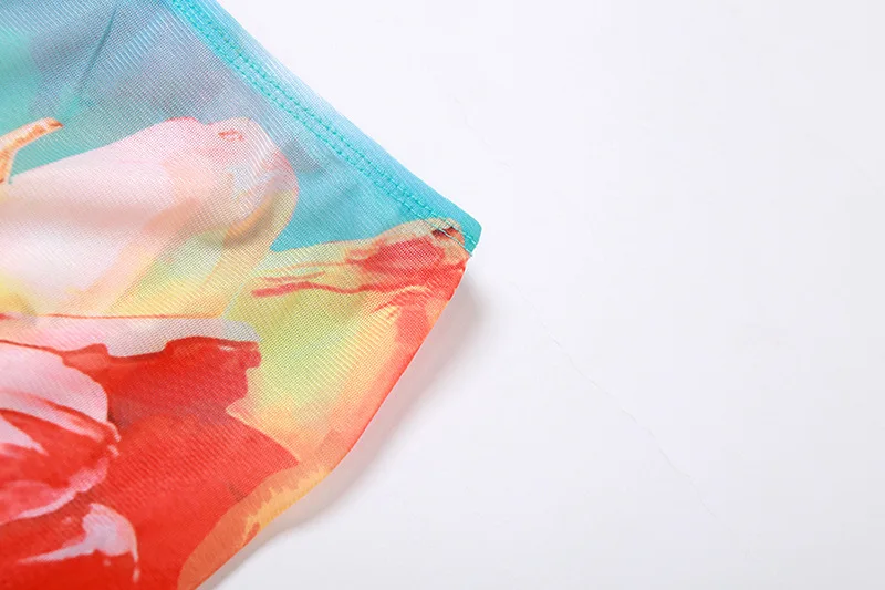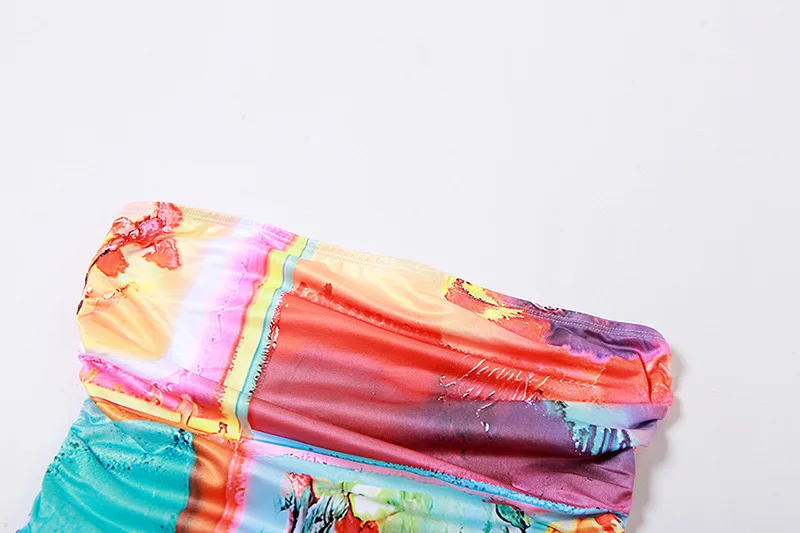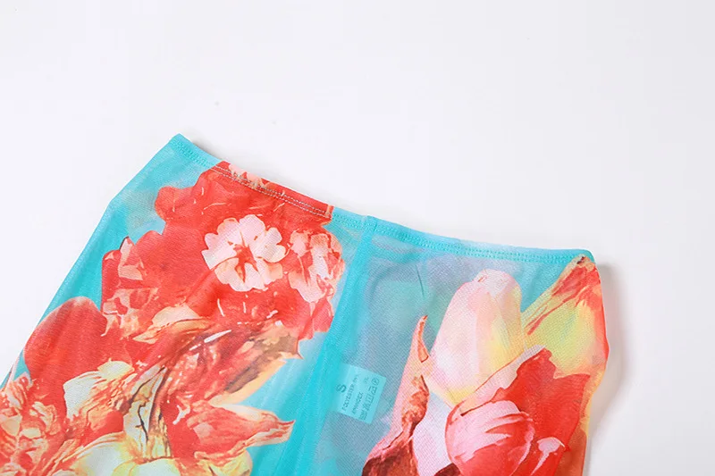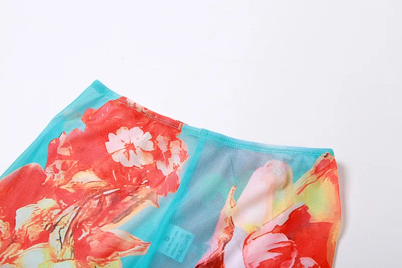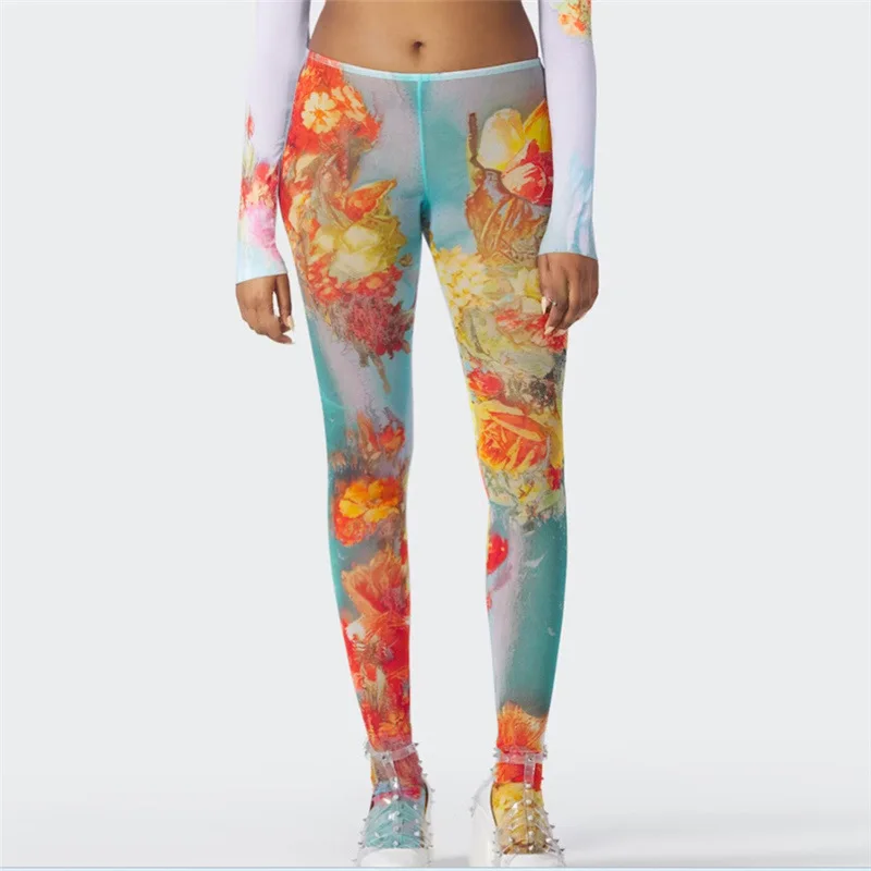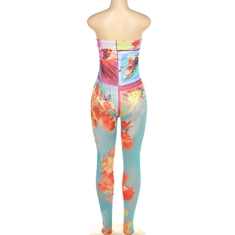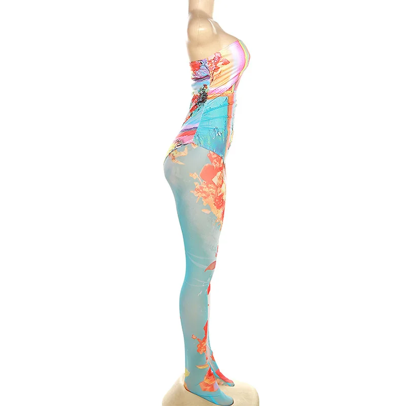 2023 New Design Printed Tube Top Jumpsuits Match High Waist Long Pantyhose Women Fashion Lounge Wear Two Piece Mesh Set