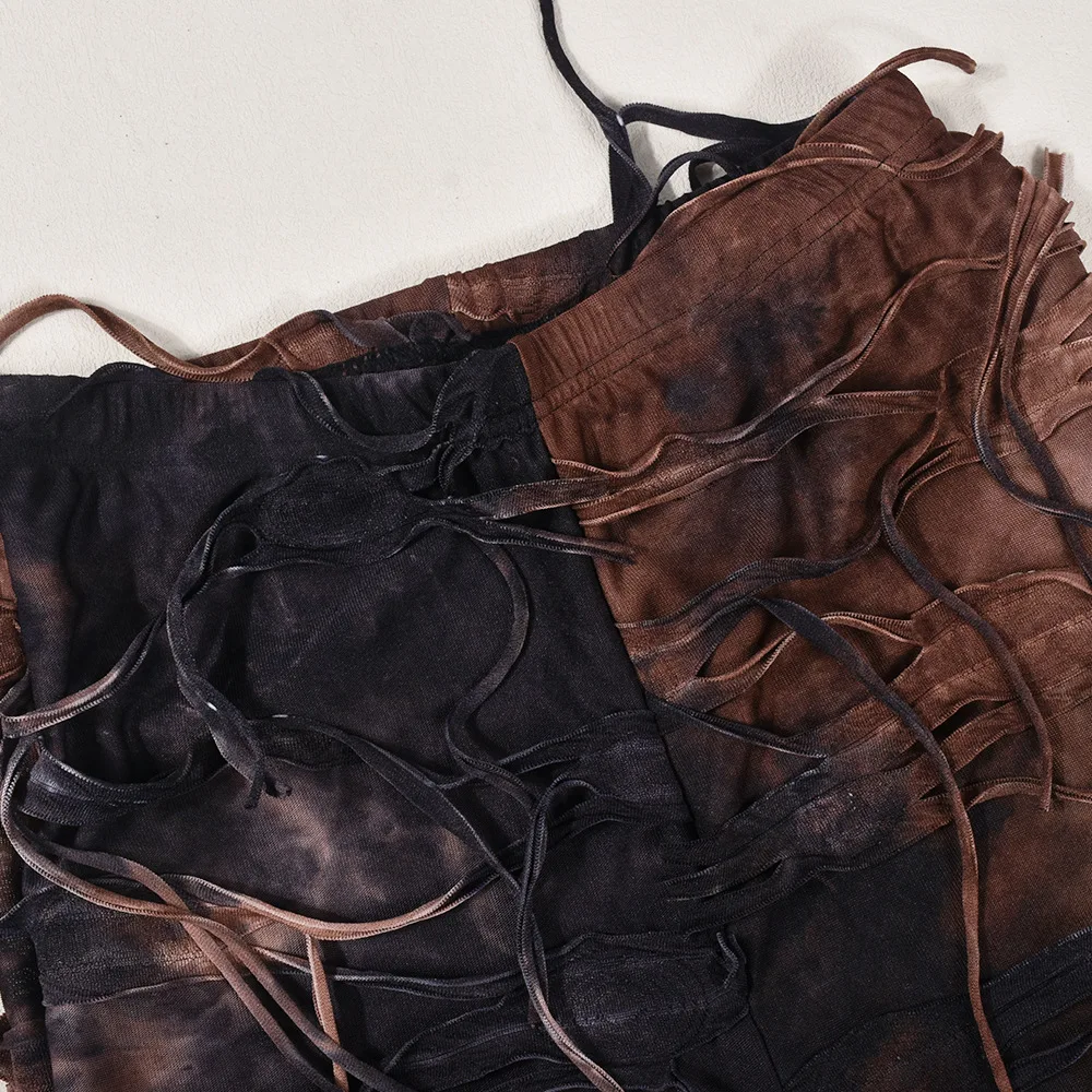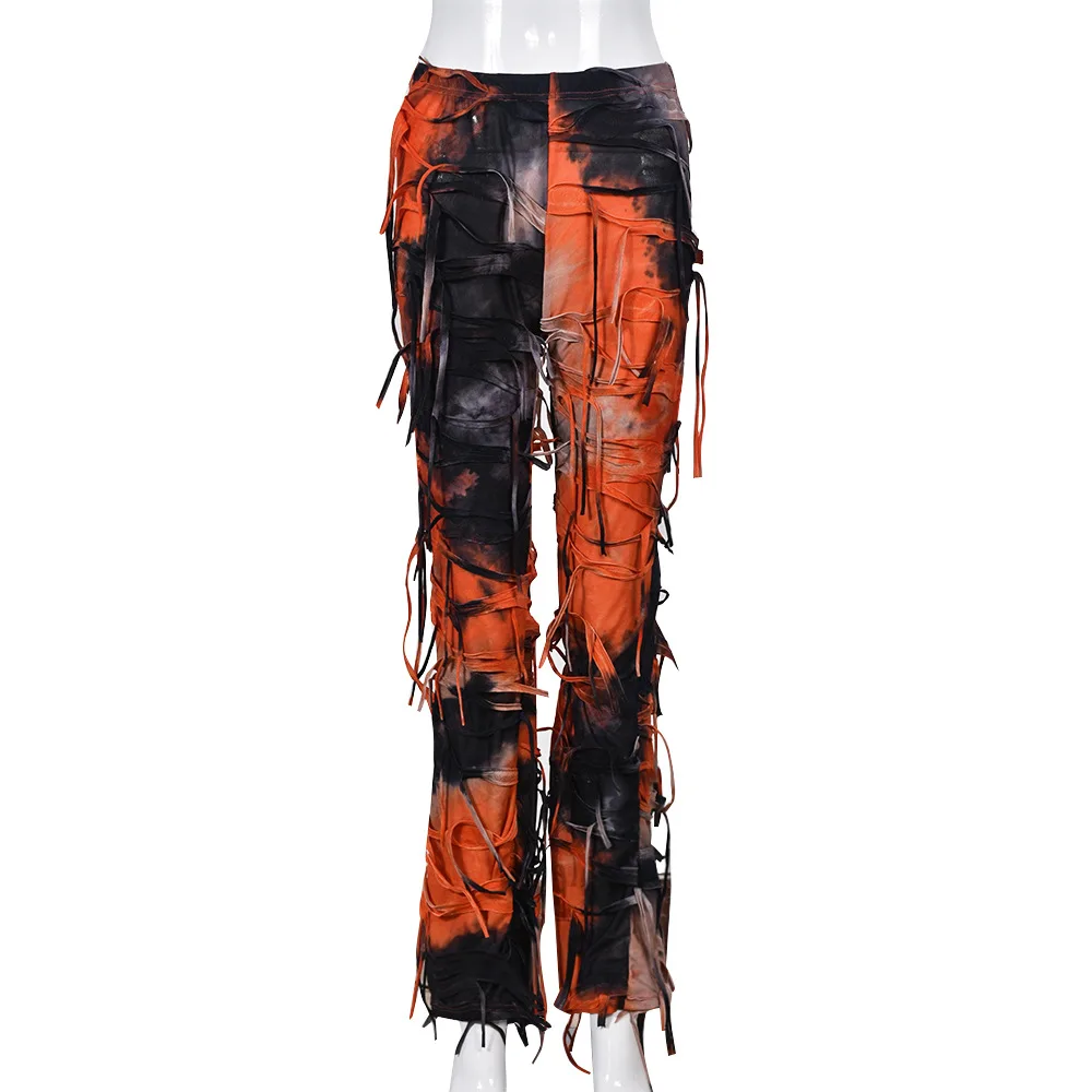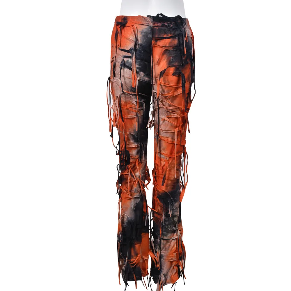 2023 New Design Tie Dye Tassel Trousers Fashion Women High Waist Bodycon Long Pants