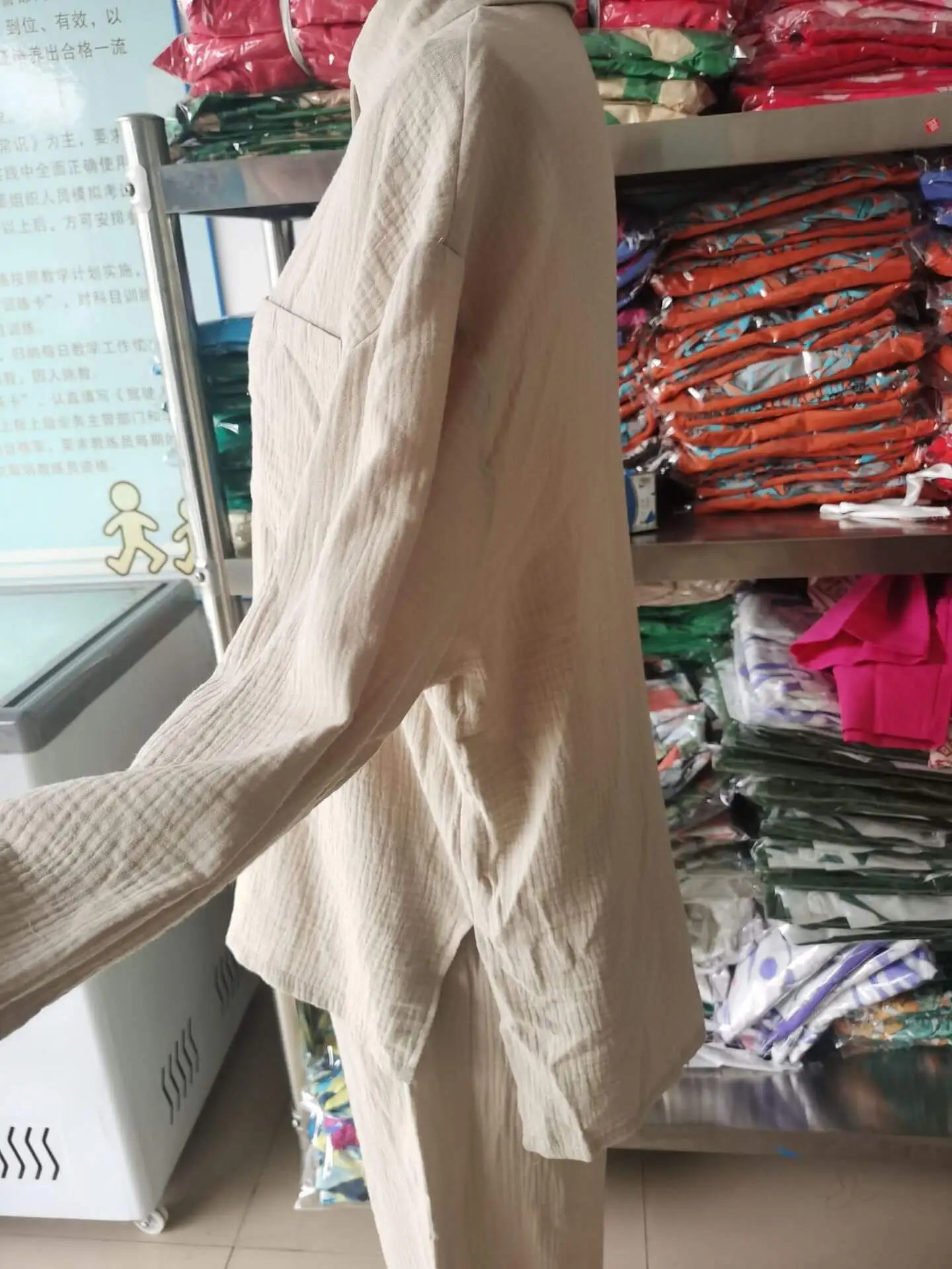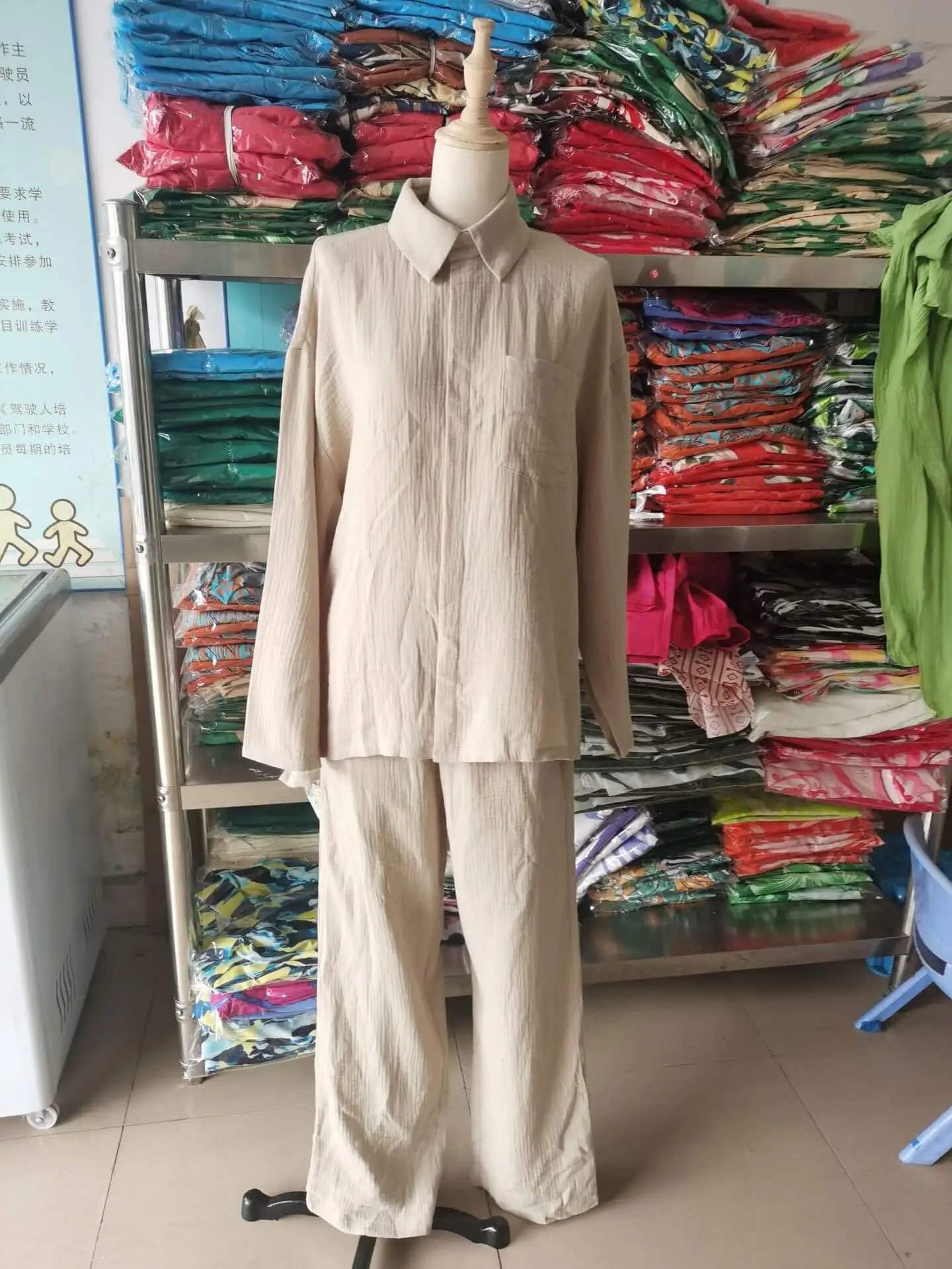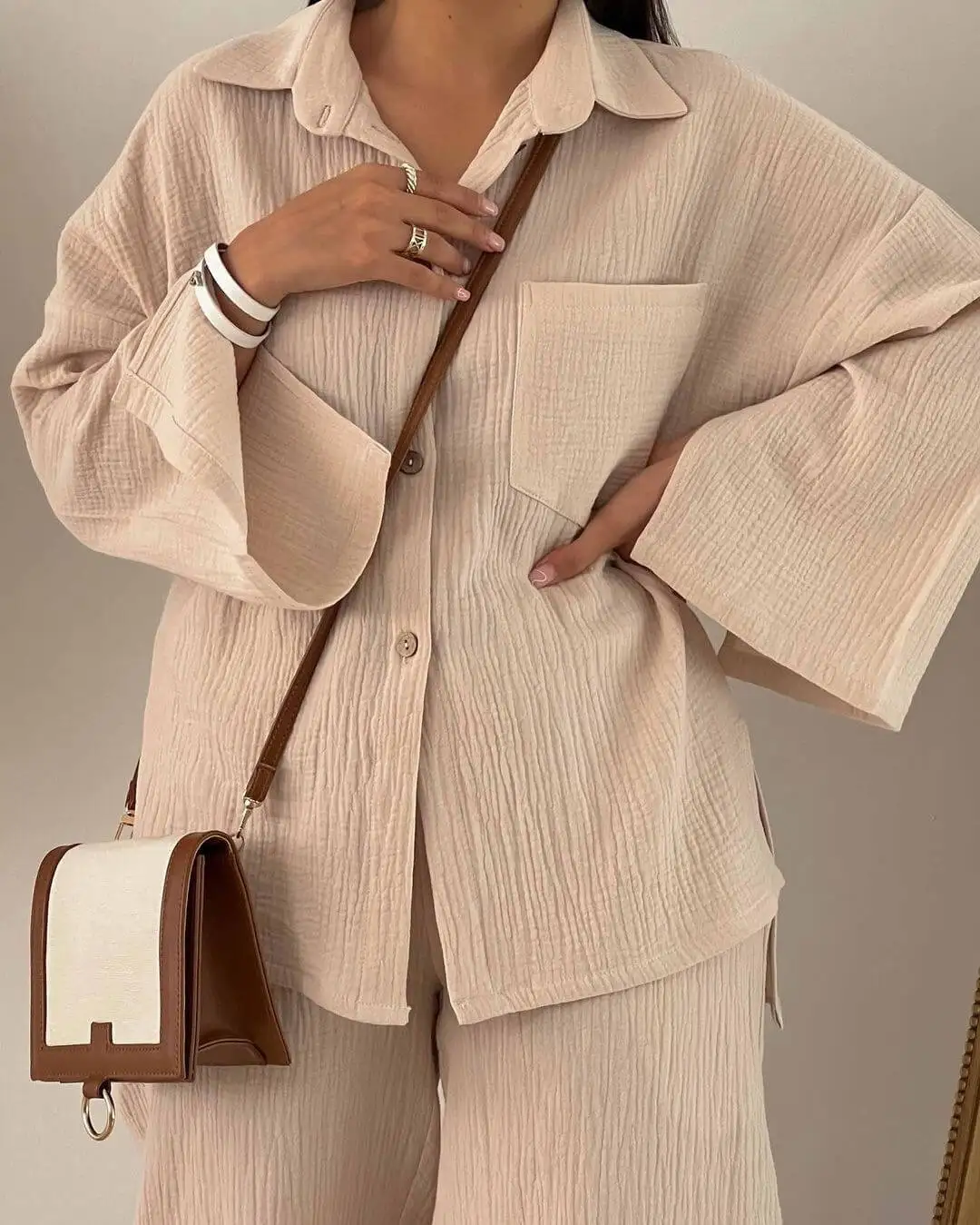2023 New European and American Women's Fashion Wrinkle Large Size Long Sleeve Shirt High Waist Wide Leg Trouser Set