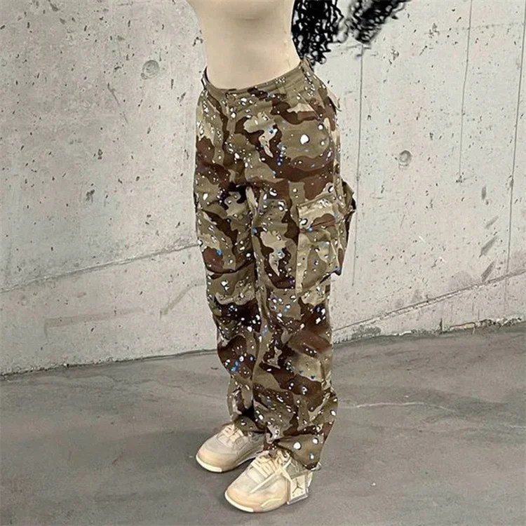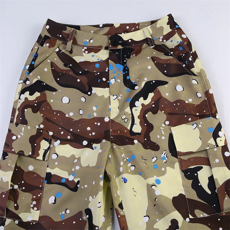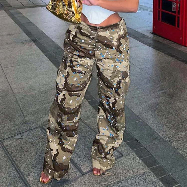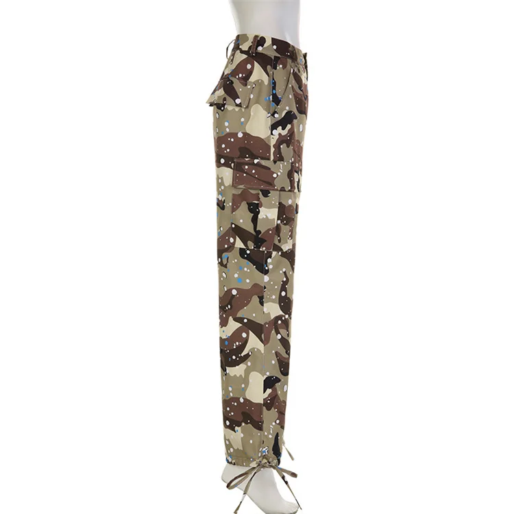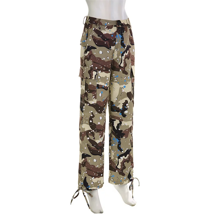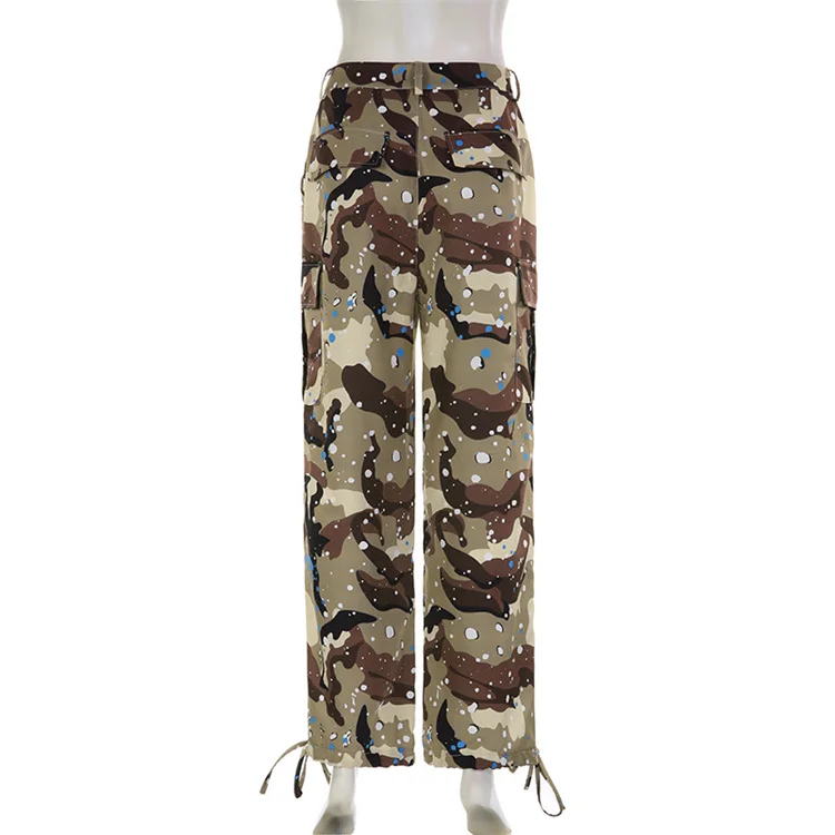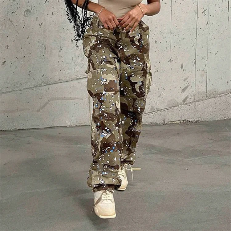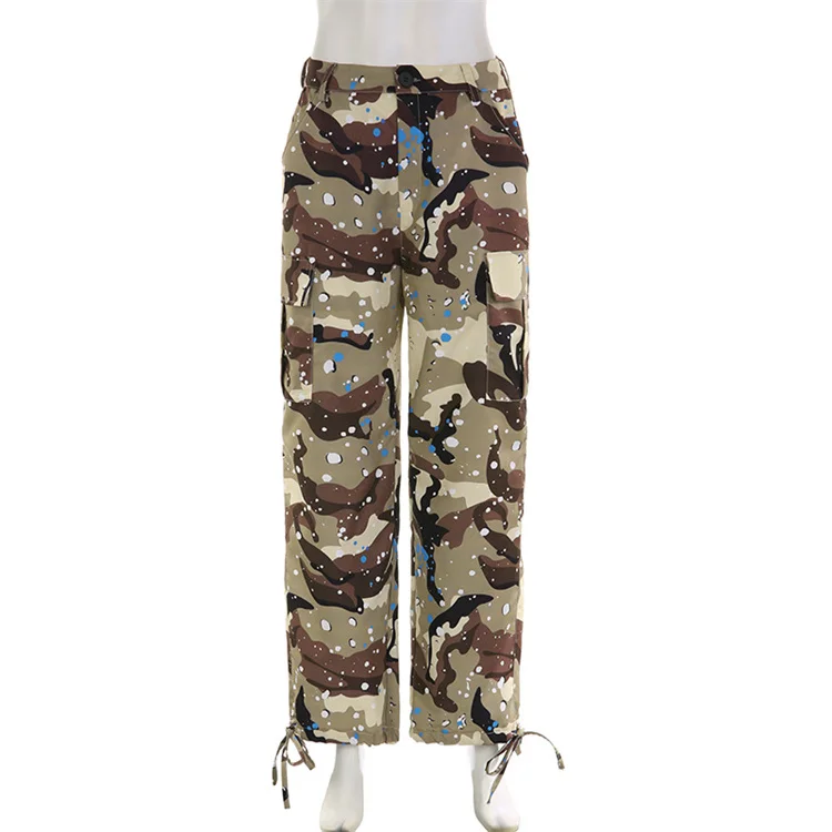 2023 New Fashion Contrast Color Loose Casual Sports Camouflage Pants Women Waist Pants