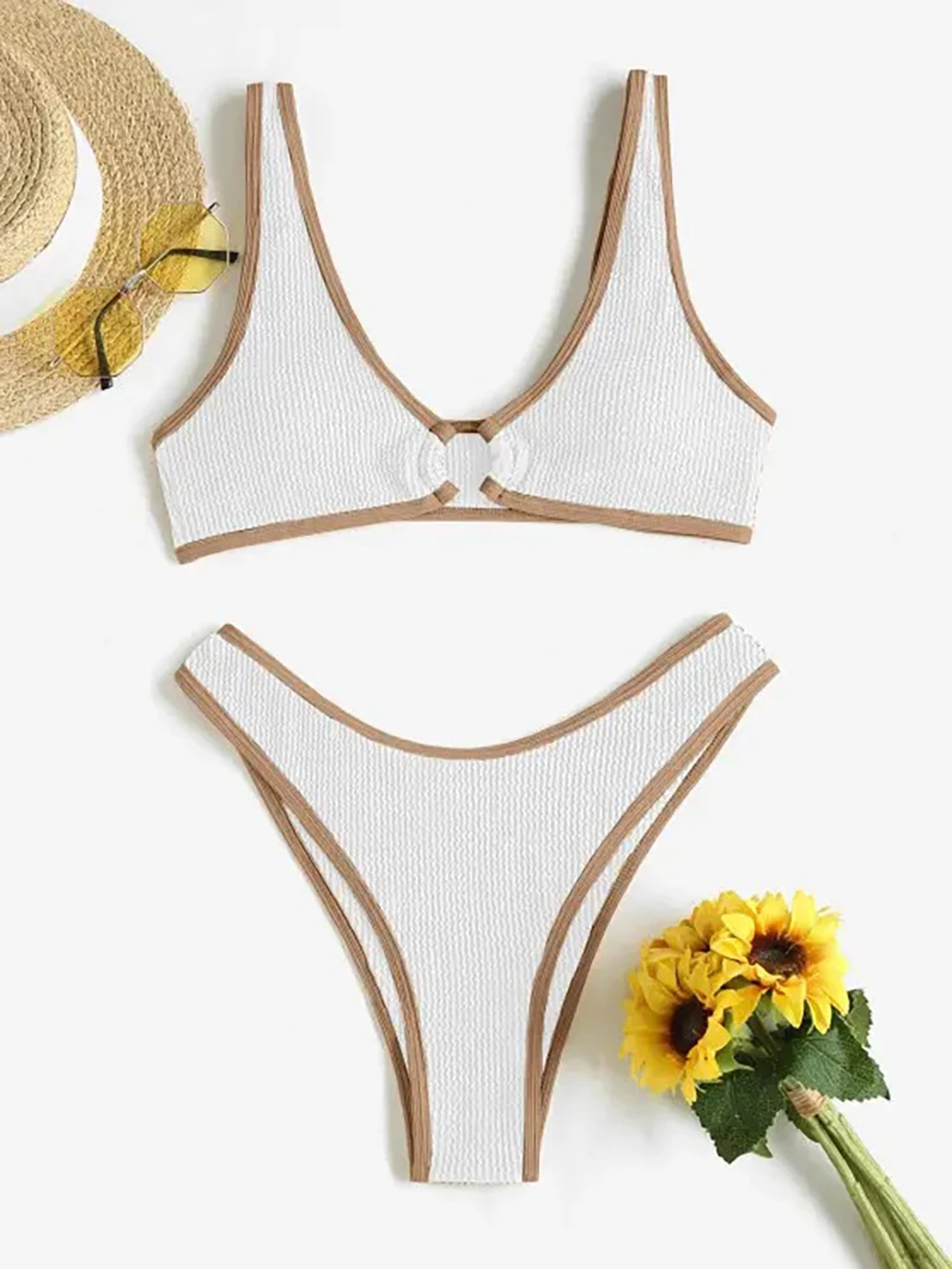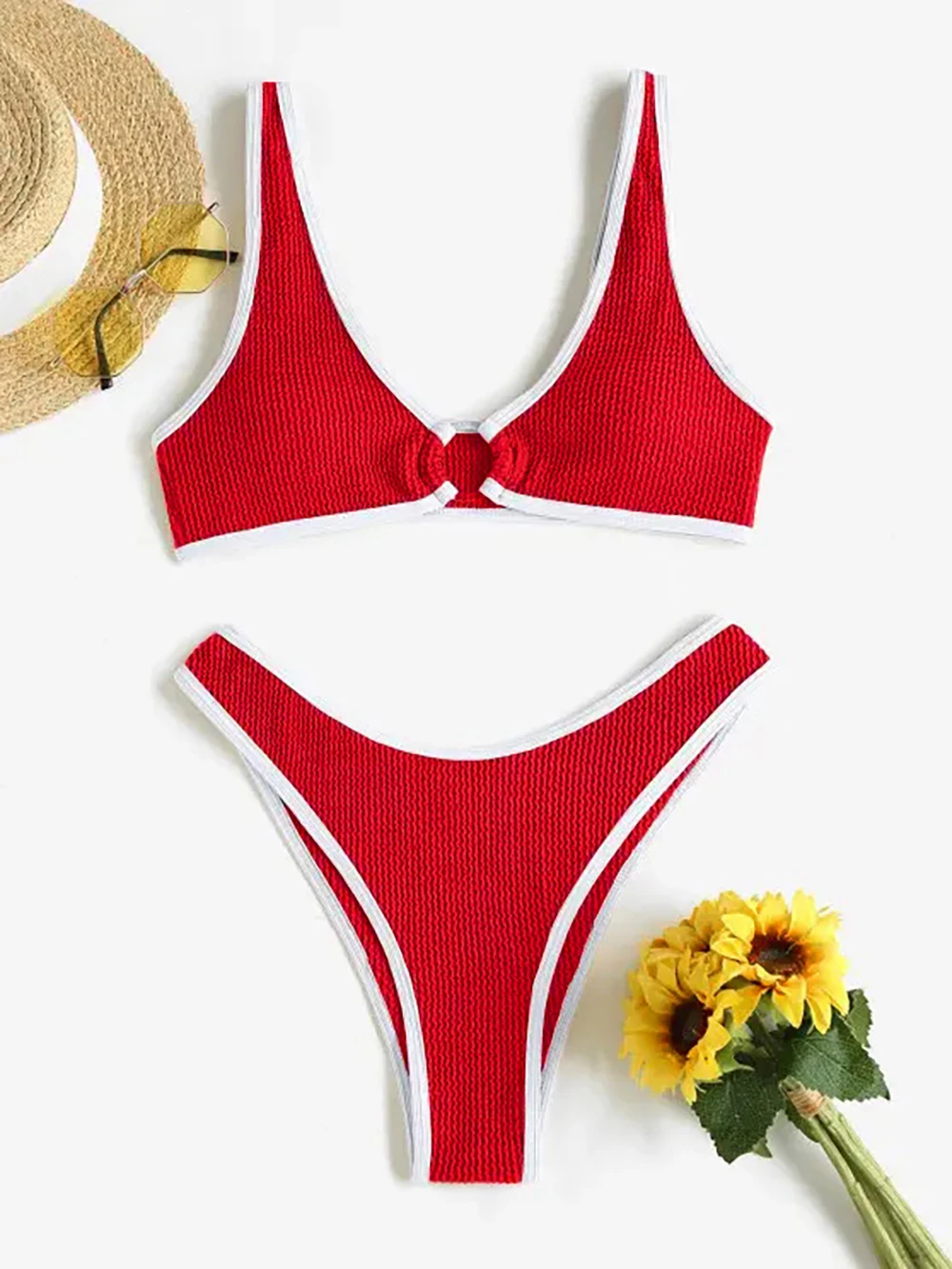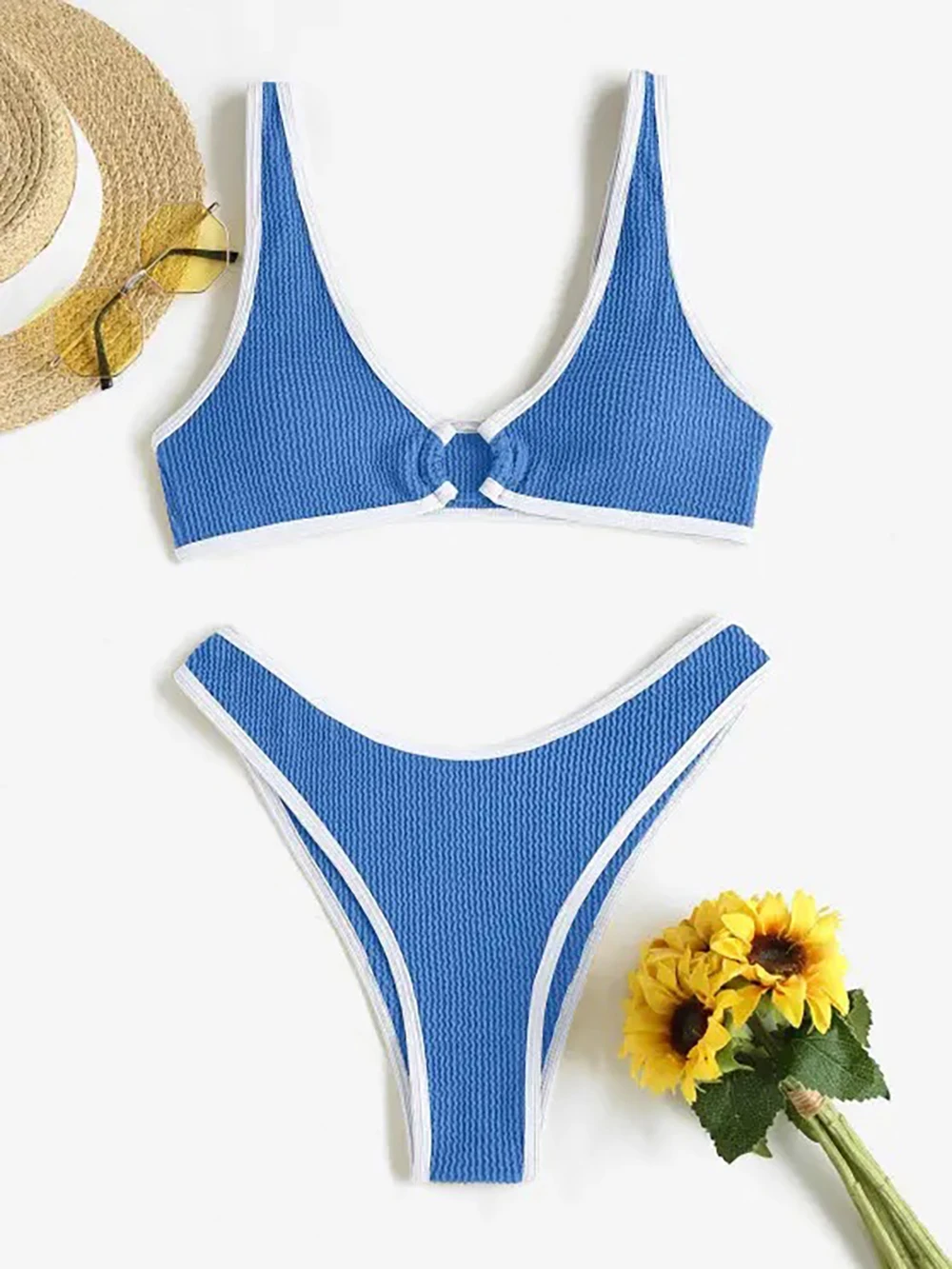 2023 New Fashion Ring Bikini Ribbed Swimwear Women Solid Bikini Set High Cut Swimsuit Push Up Bathing Suits Brazilian Biquinis