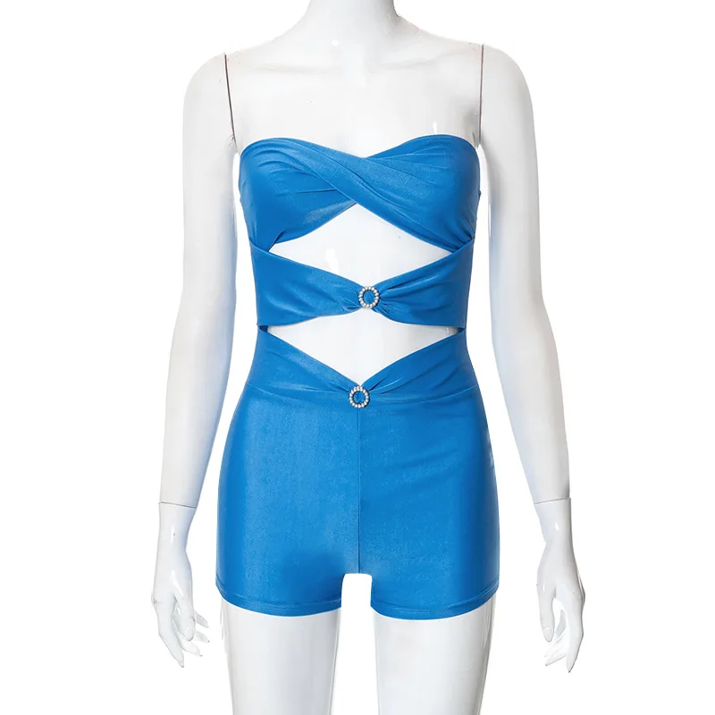 2023 New fashion Summer Women's clothing Solid color jumpsuit hollow-out buttocks one-piece jumpsuit shorts for women