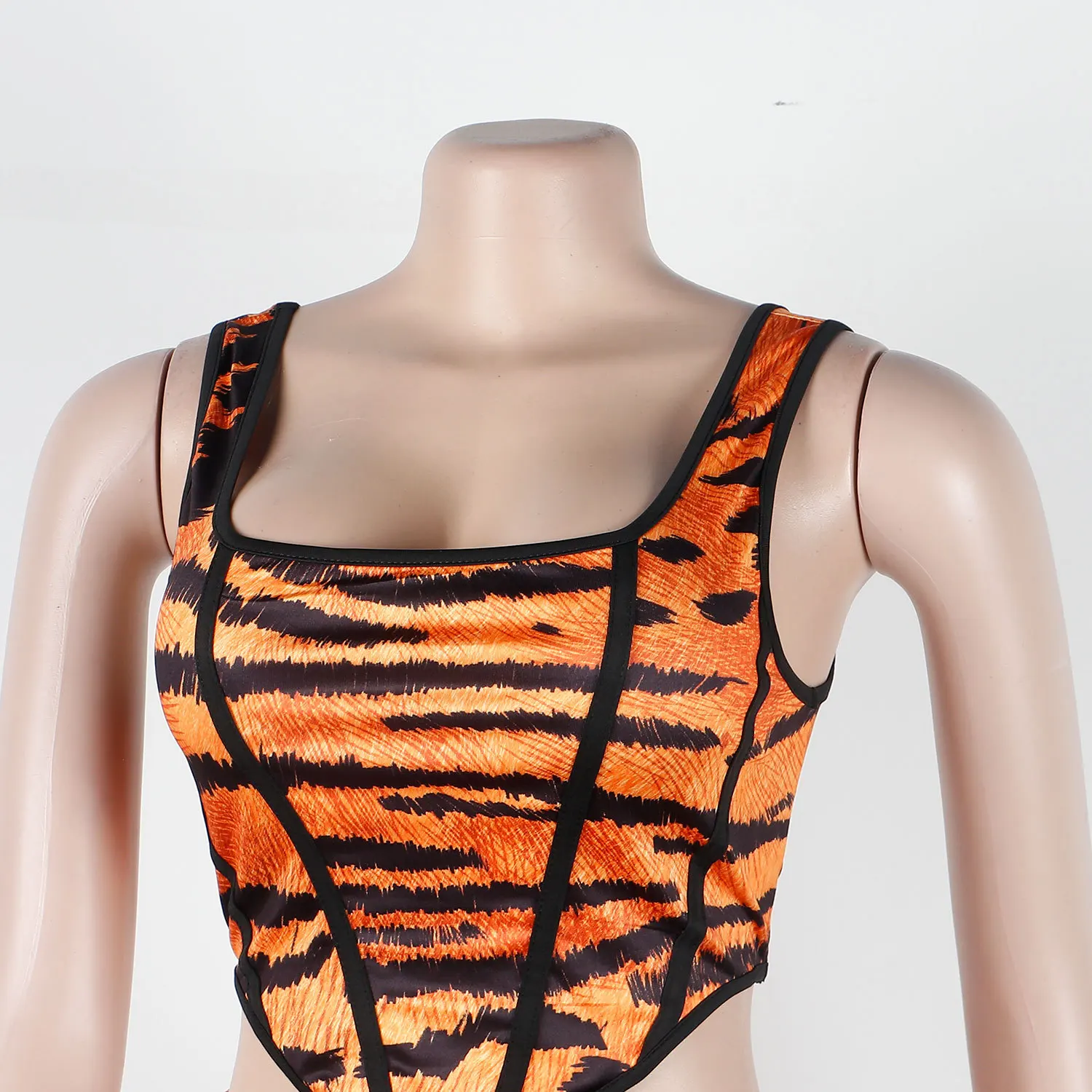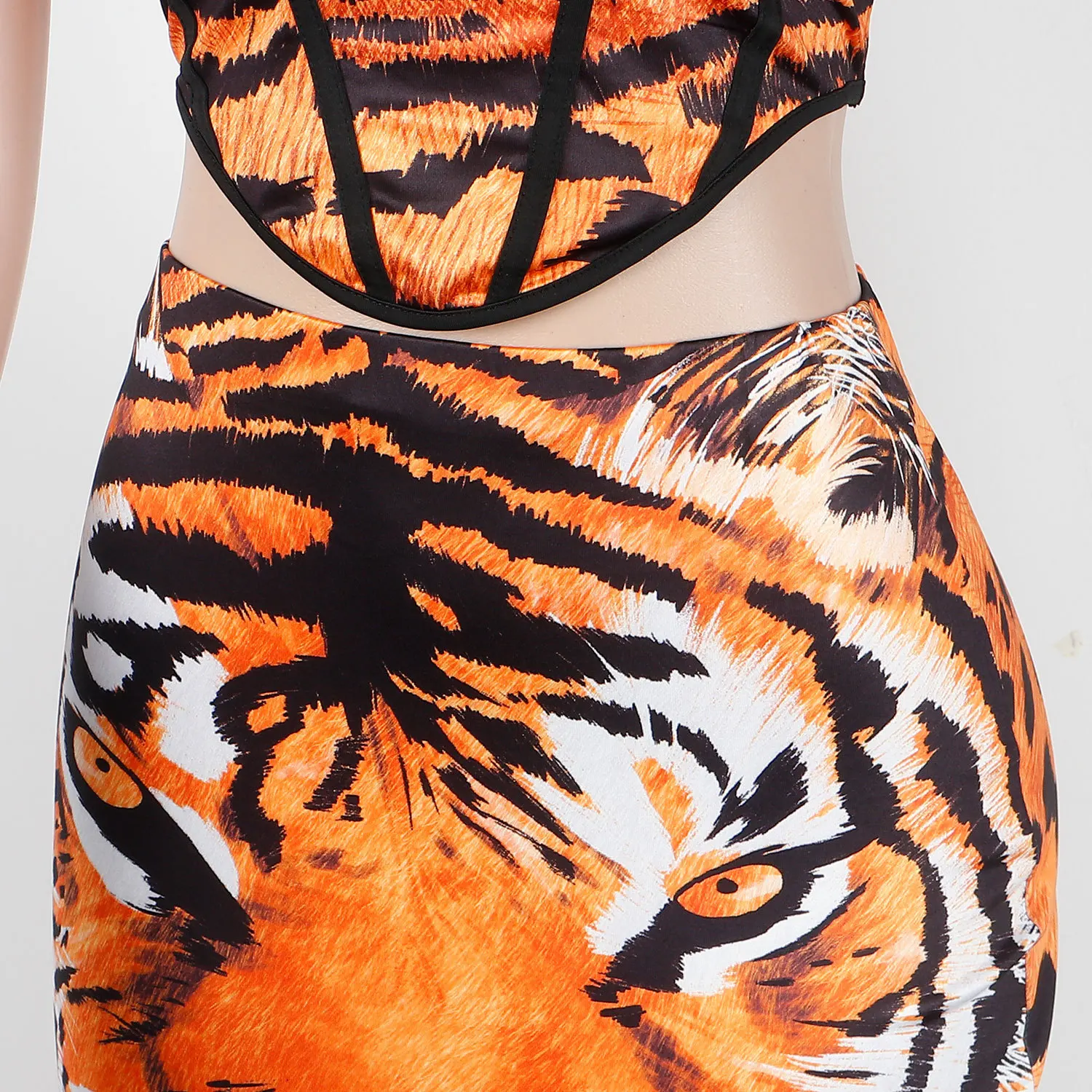 2023 New Fashion Tiger Print Skirt and Crop Top Women Two Piece Set