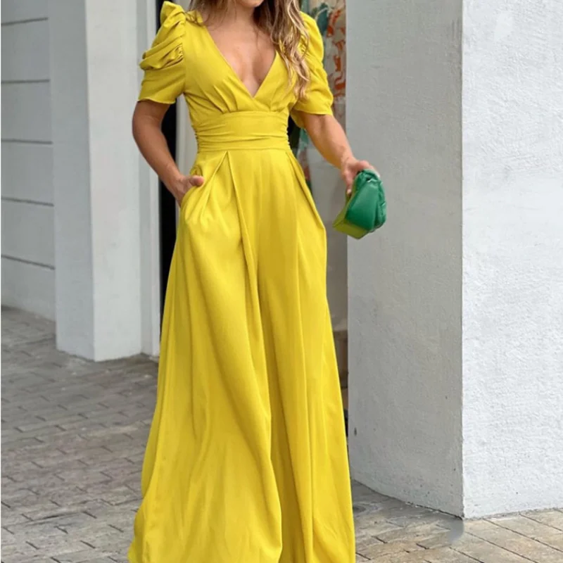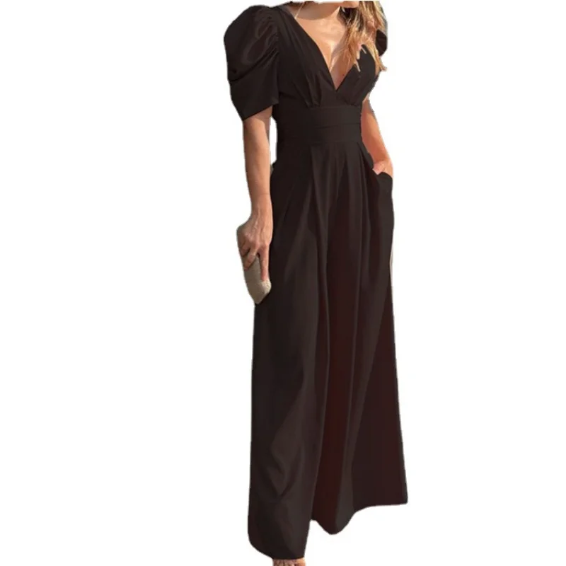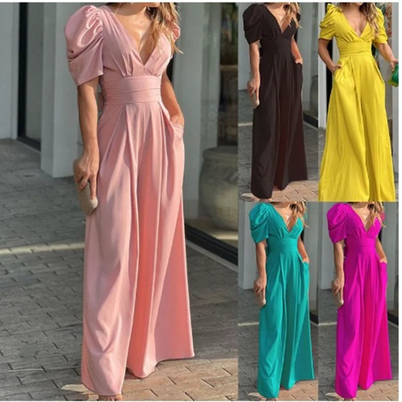 2023 New Fashion Women's Elegant Casual Loose Wide Leg Solid Color Jumpsuit