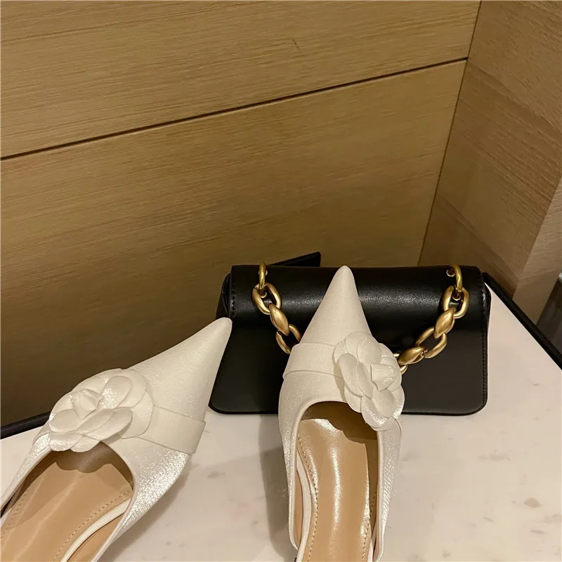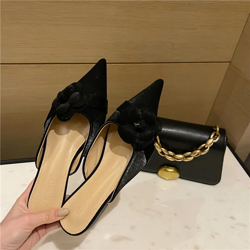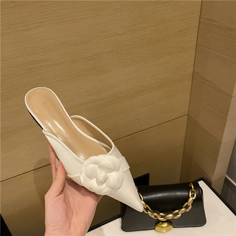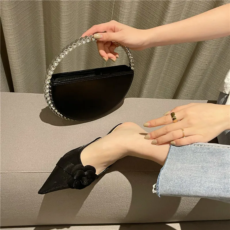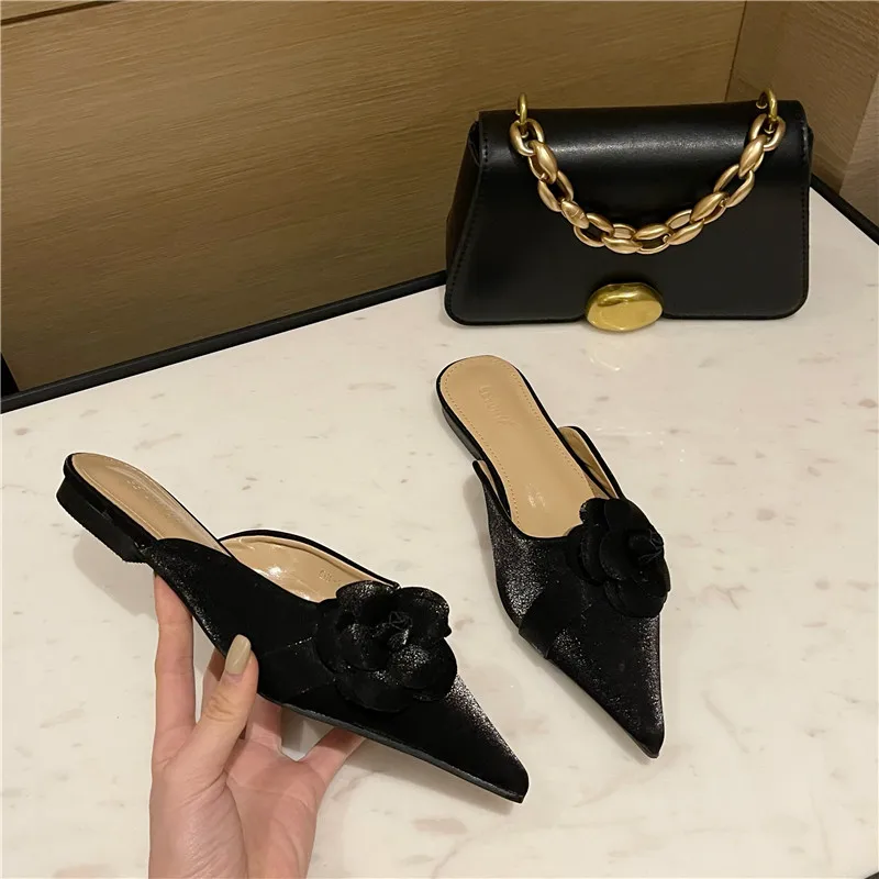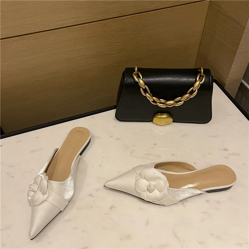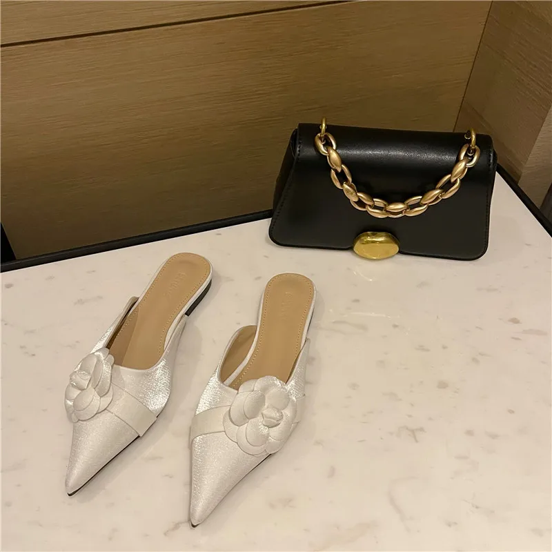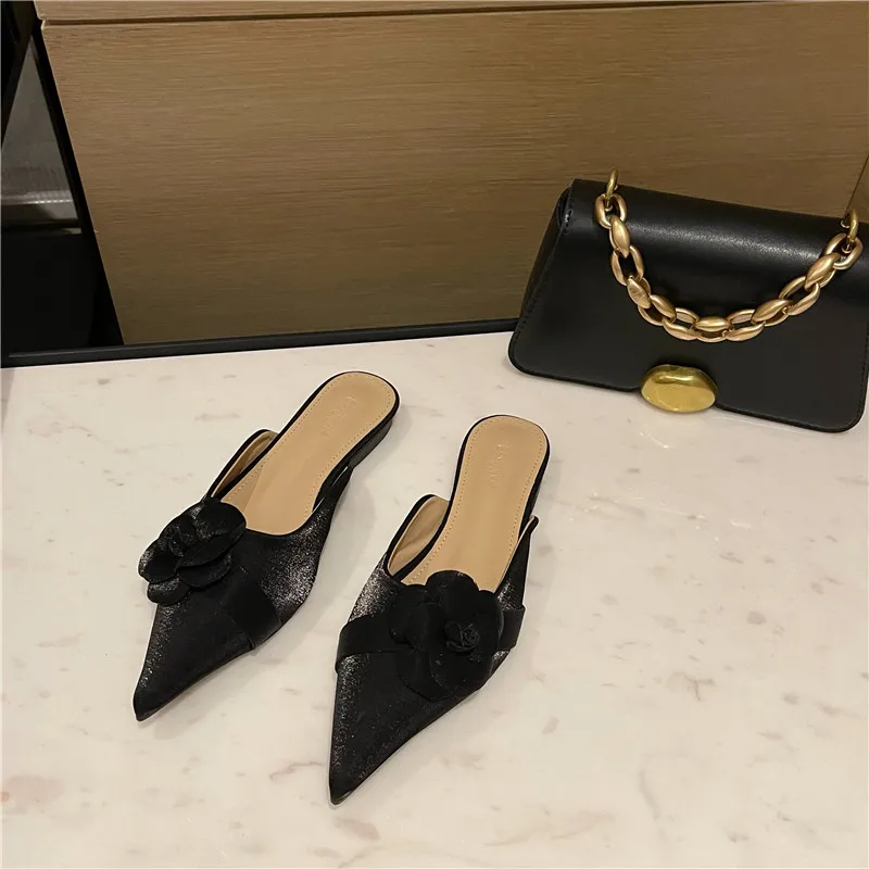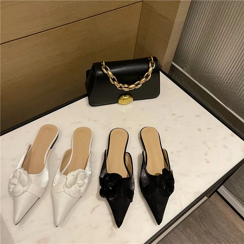 2023 new flat-bottomed heels three-dimensional rhinestone buckle women's shoes Baotou flat shoes women