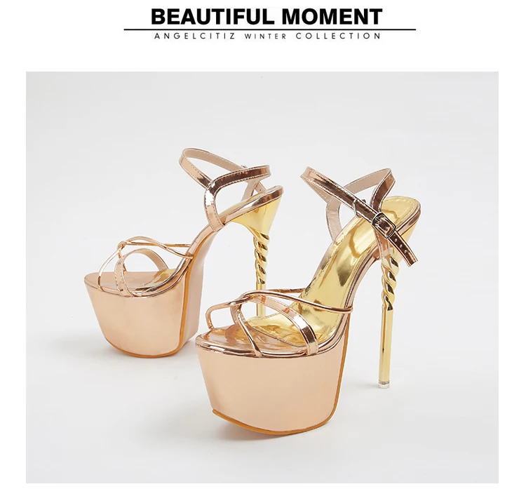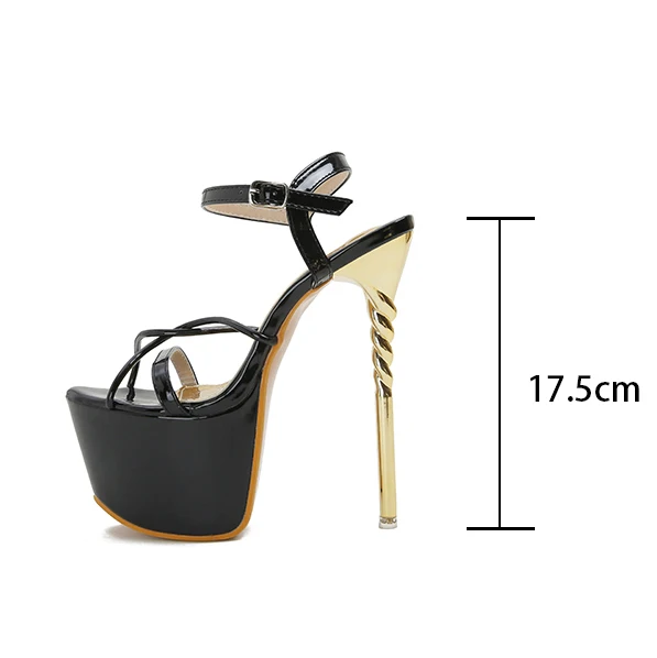 Our product size standard size 35 = US size 4 = feet lenght 22 . 5CM size 36 = US size 5 = feet lenght 23CM size 37 = US size 6 = feet lenght 23 . 5CM size 38 = US size 7 = feet lenght 24CM size 39 = US size 8 = feet lenght 24 . 5CM size 40 = US size 9 = feet lenght 25CM size 41 = US size 10 = feet lenght 25 . 5CM size 42 = US size 11 = feet lenght 26 CM Heels height : 17.5cm Platform height : 7 cm