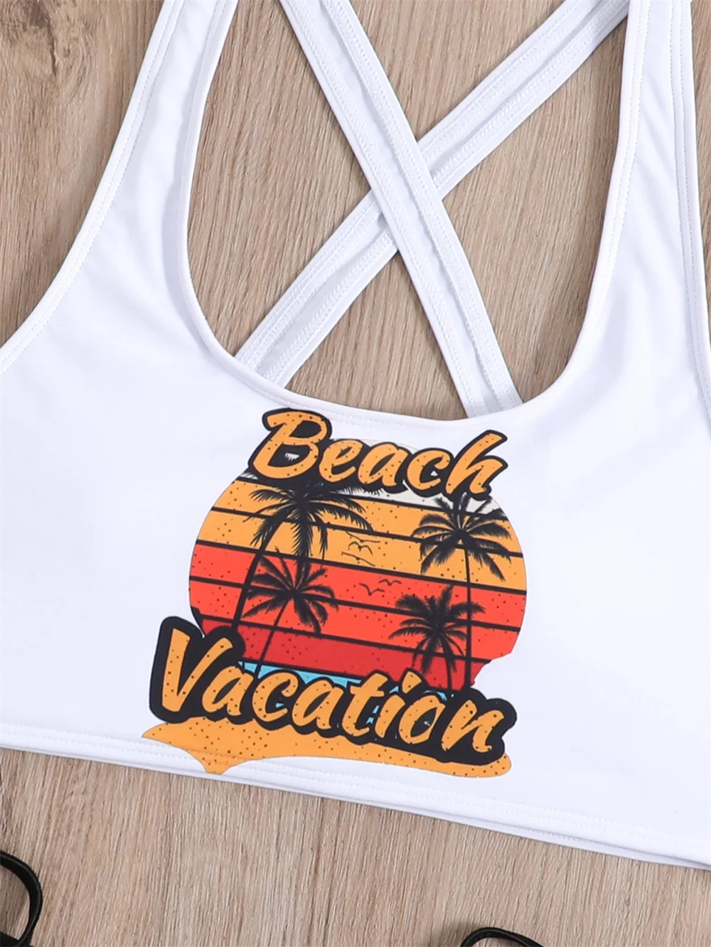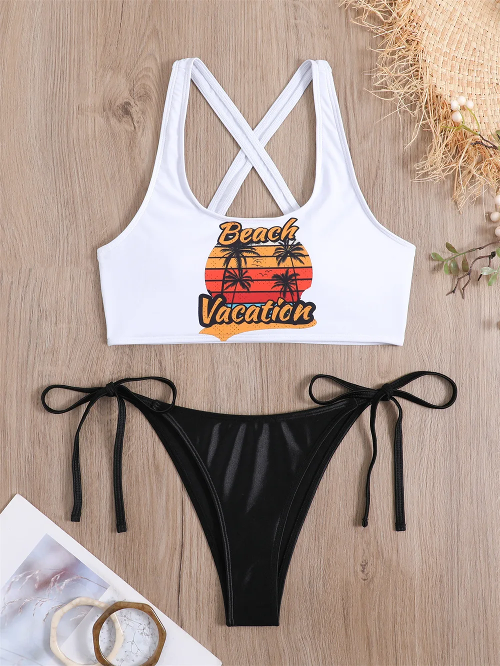 2023 New Letter Print High Waist Swimwear Vest Style Women Beach Bikini Beachwear Biquini Bandeau Bathing Suit