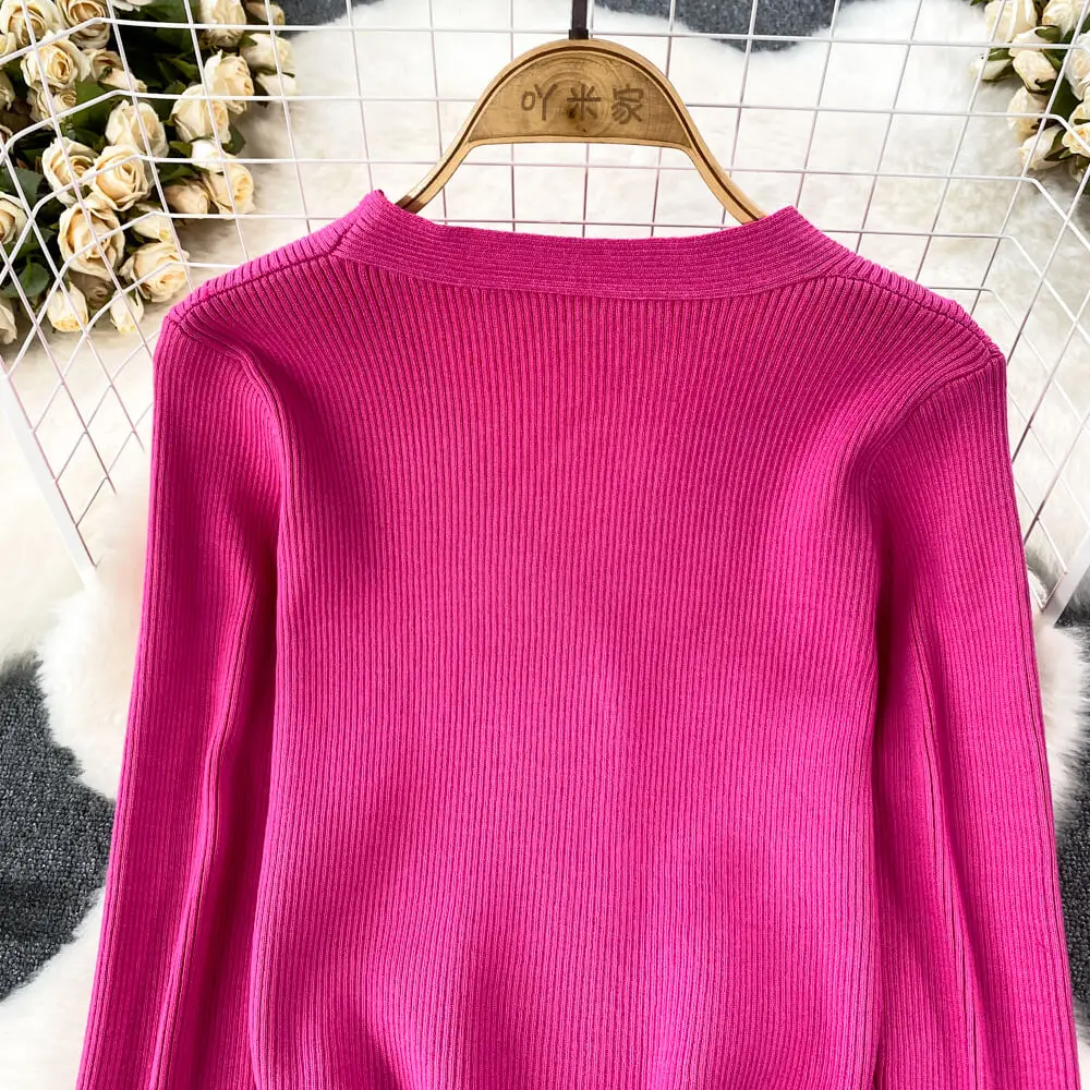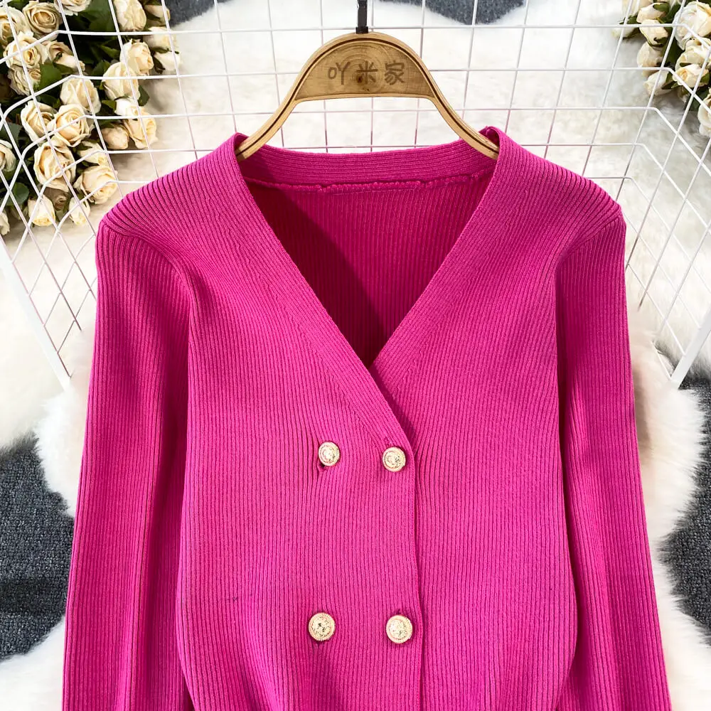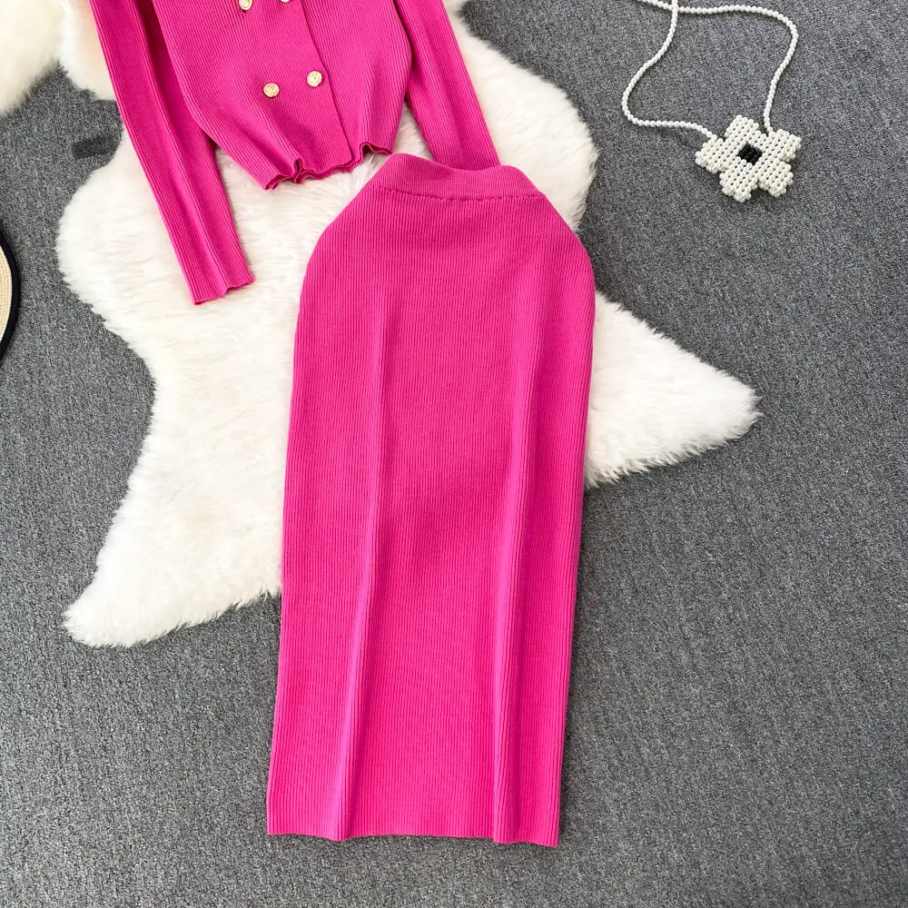 2023 New Long-Sleeved V-Neck Single-Breasted Knit Cardigan Jacket Two-Piece High Fanny Pack Hip Skirt