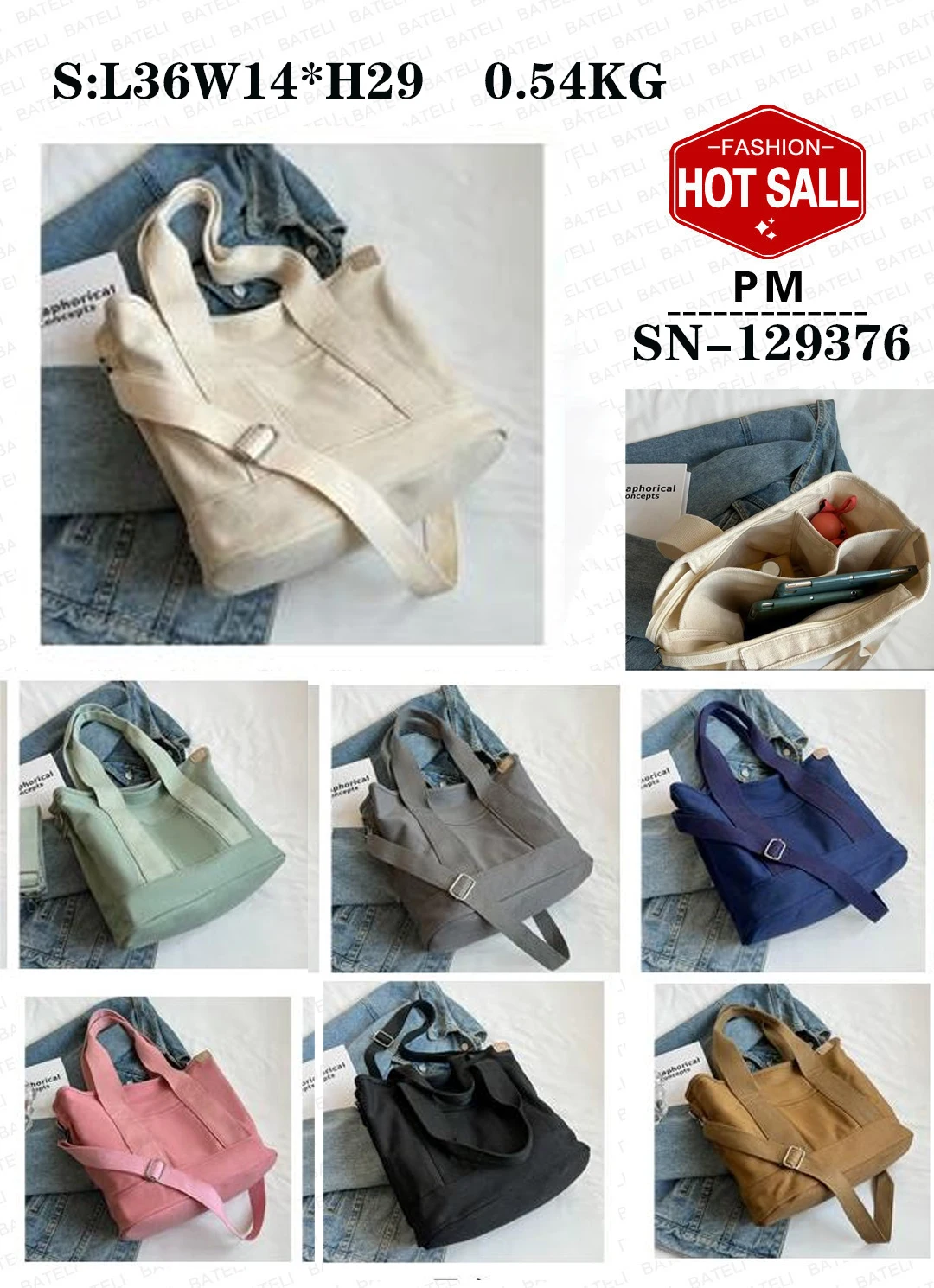 2023 new march soild style large capacity bag high quality canvas bag fabric shopping bag fashion