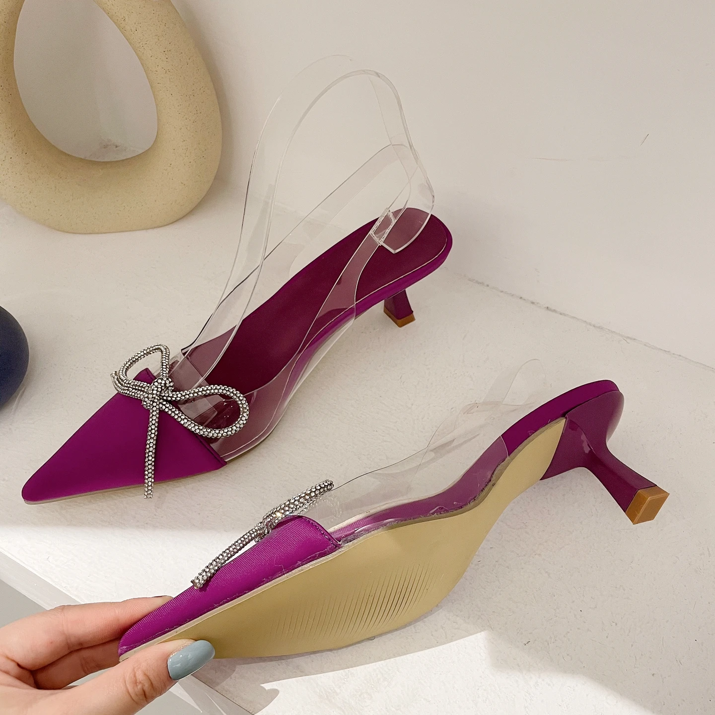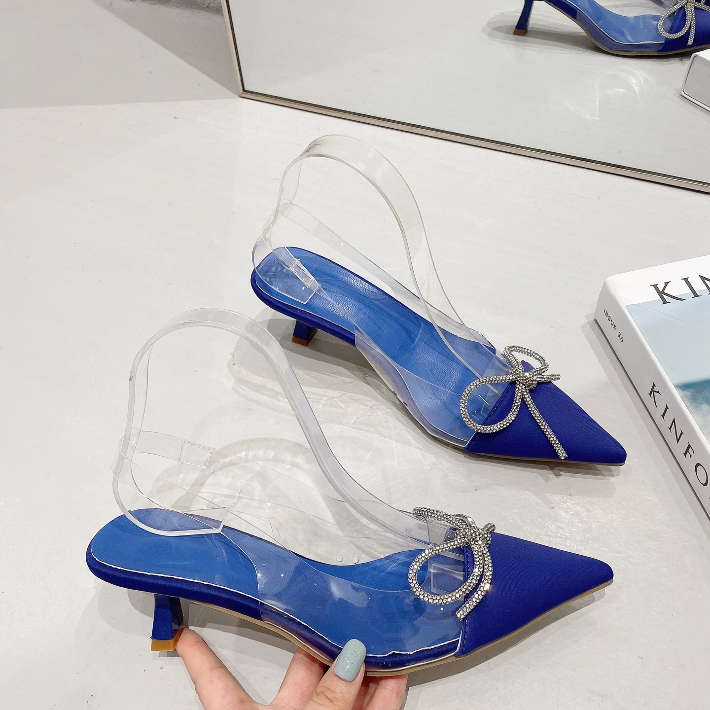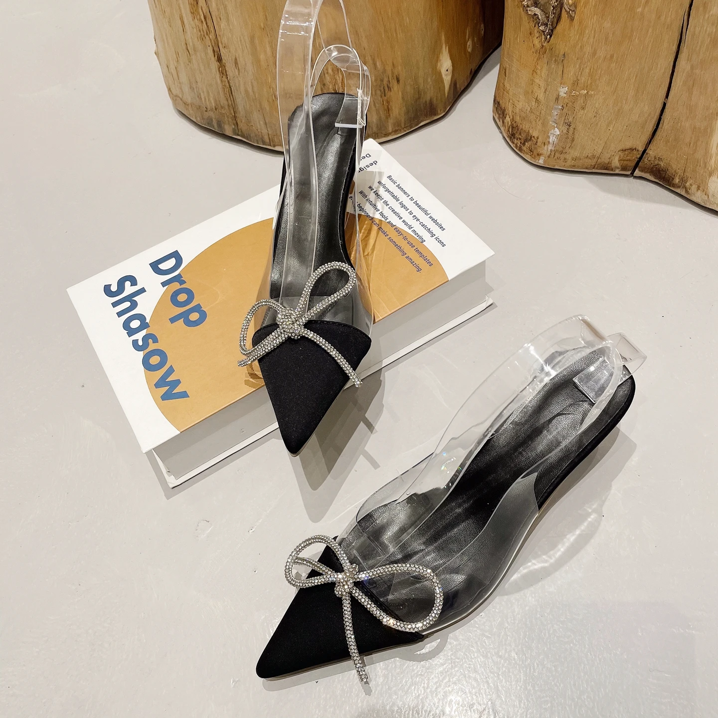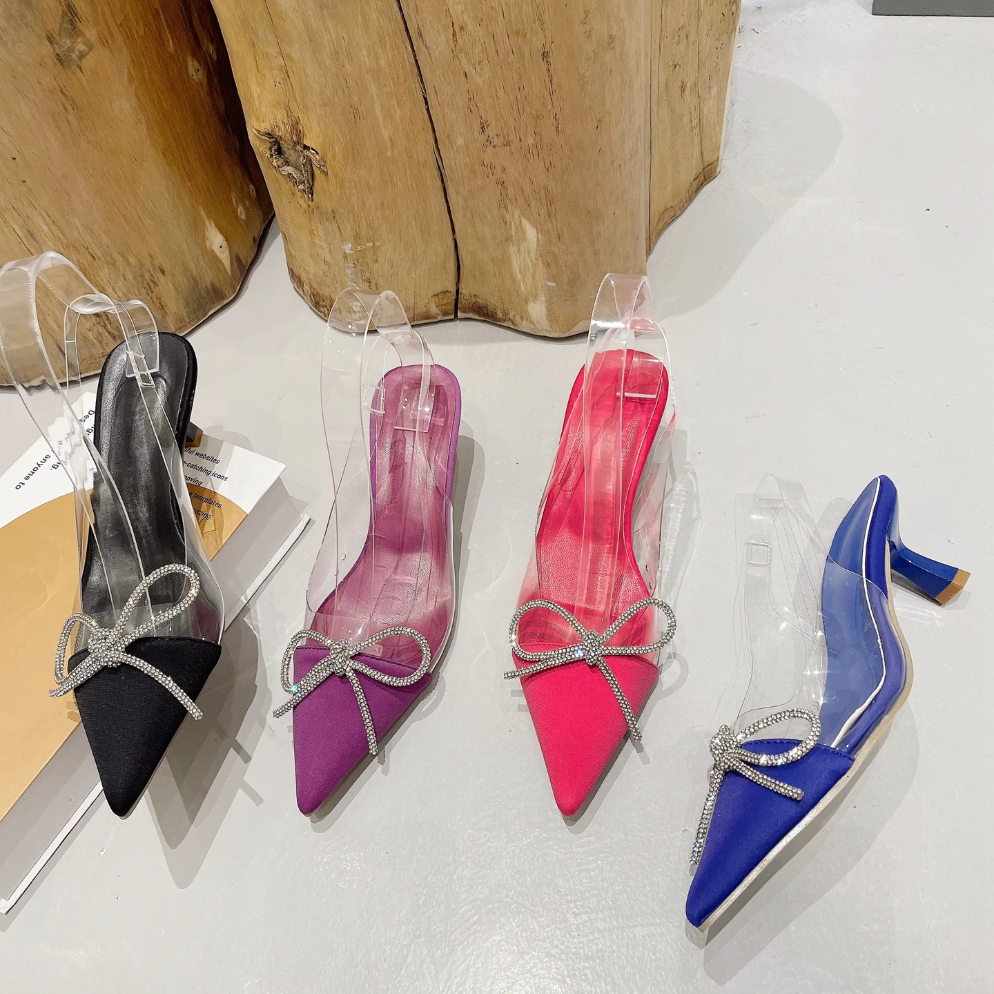 2023 new sexy transparent word with pointed toe stiletto back empty sandals Baotou high-heeled women's single shoes