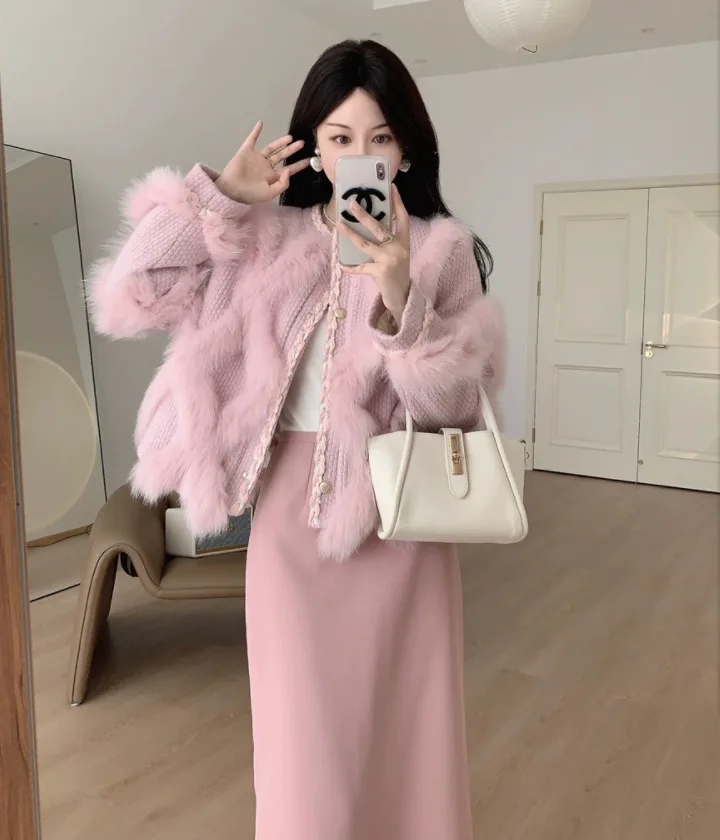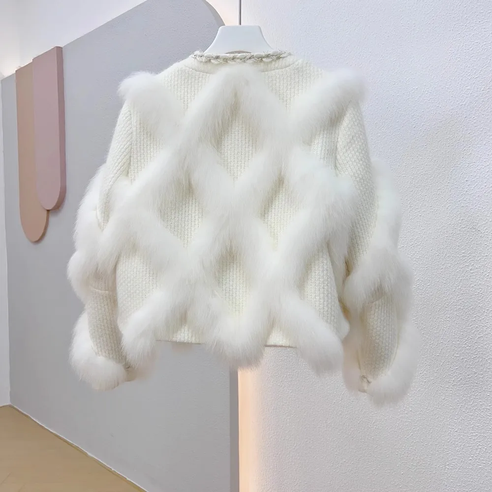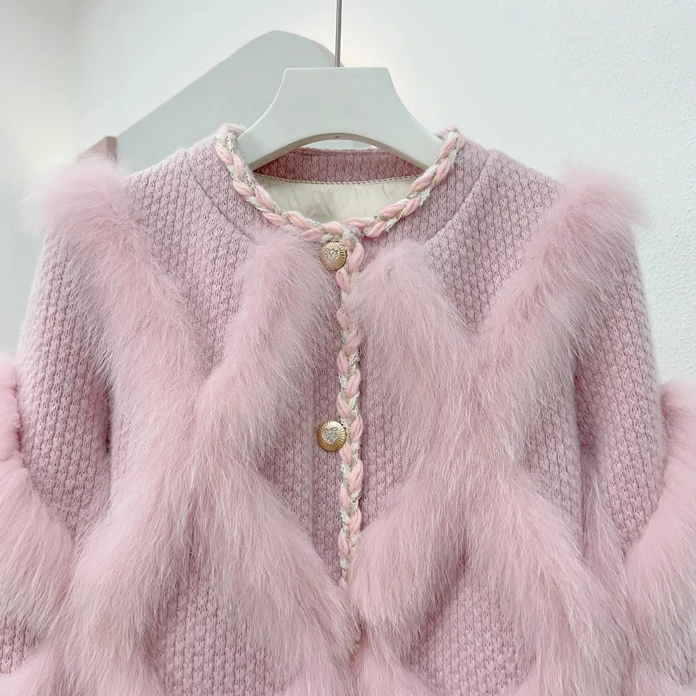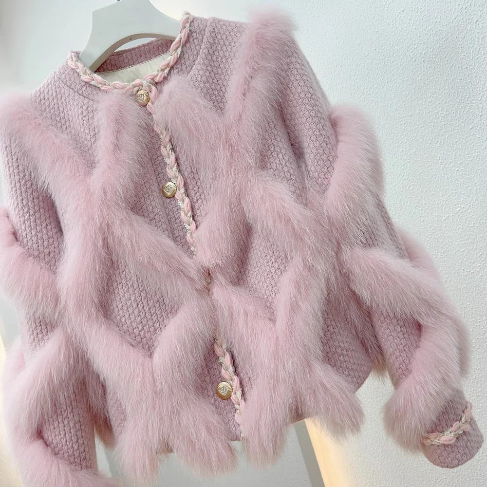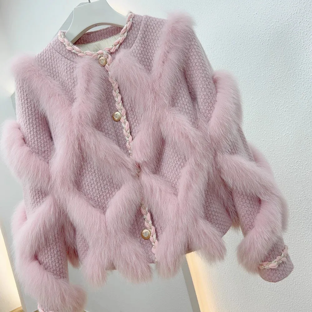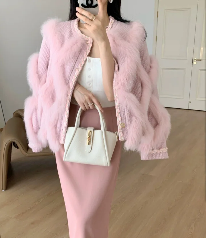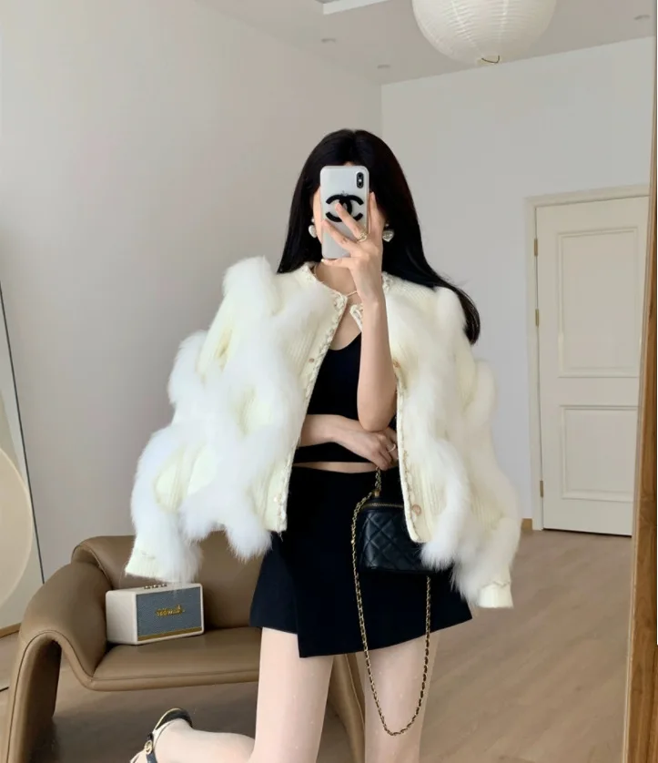 2023 New Short Chic Tweed XIAOXIANGFENG Fox Fur Coat Women's Small Sweet Style Slimming
